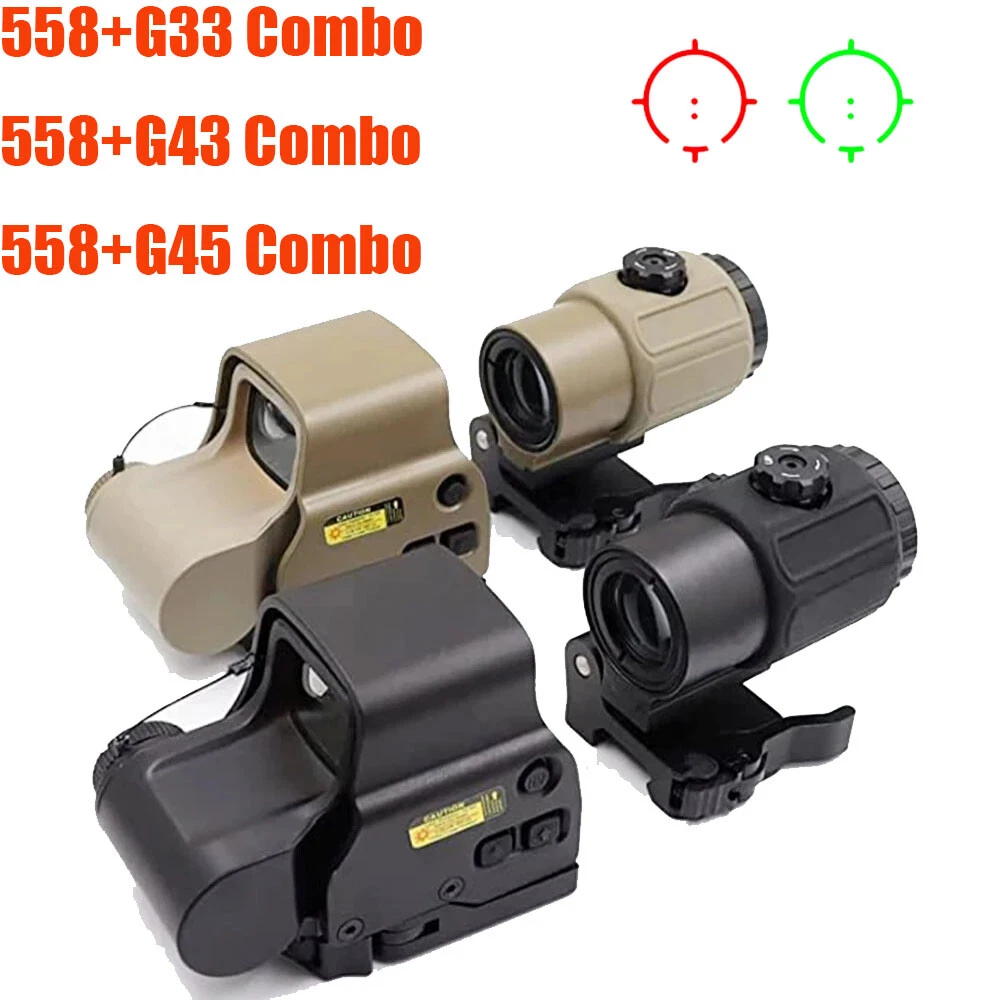 G43 558 QD TST G33 G45 Holographic Red Green Dot Sight Scope 3/5X Magnifier HHS