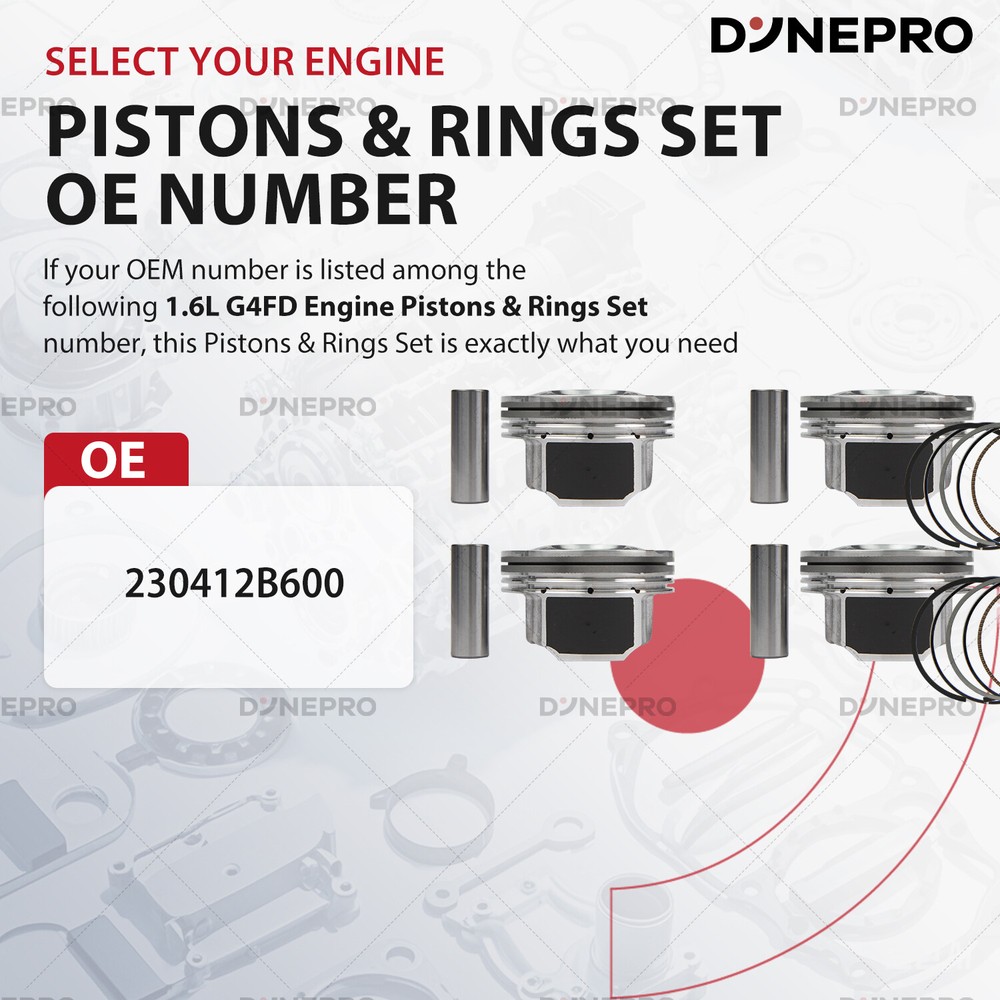 Engine Parts Installation Guide About Us Contact Us Feedback Dynepro® Pro Series Master Engine Rebuild Kit For Hyundai OEM Spec Certified Engine Repair Kit Precision Engineered · Factory Reliability ⭕Aluminum Piston Set Hypereutectic Al-Si18 Alloy : Low thermal expansion, 20% lighter than cast iron. Molybdenum-coated skirts : Reduces cylinder wear by 35% in stop-and-go city driving. Integrated cooling channels : Optimized for turbocharged Gamma/Theta II engines,lifespan by 2x. ⭕ Built For Hyundai Owners: ✔️ Oil sludge cleanup (Theta II/Lambda engine rebuilds) ✔️ Timing chain rattle fixes (Nu/Gamma engines, includes tensioner tool) ✔️ Turbo failure prevention (1.6T/2.0T models, full gasket/seal refresh) ✔️ 200,000km+ overhauls (full bolt kit with factory torque specs) ⭕ For Hyundai TechTrust : ✔️ Restore factory power. Drive with Korean precision. ✔️Order Now – Free OEM Repair Manual Included! Support: Email us (Master Techs on call) ⭕ Why Genuine? ⚠️ Cheap parts fail: Non-genuine pistons crack under GDI’s 150-bar fuel pressure. Knockoff chains stretch, causing valve-piston interference. ✅ for Hyundai spec Certified : 100% material compliance with Hyundai MS-350 durability standards. Direct from OEM Plant spec suppliers. 5-year unlimited-mileage warranty. Vehicle Application Compatible with: G4FD 1.6L engines. for Hyundai Accent 2012-2018 1.6L GAS Naturally Aspirated; for Hyundai Veloster 2012-2017 1.6L GAS Naturally Aspirated; for Hyundai Veloster 2013-2017 1.6L GAS Turbocharged; for Kia Rio 2013-2017 1.6L GAS Naturally Aspirated; for Kia Soul 2011-2018 1.6L GAS Naturally Aspirated; for Kia Soul 2017-2018 1.6L GAS Turbocharged Note: VIN confirmation required. What's included in this complete bundle set -Pistons -Piston Rings -Connecting Rods Shop Now >> Instant Fitment Email your Hyundai model (e.g., Elantra, Tucson, Santa Fe) and year → Get a repair kit tailored to your VIN. Restore factory power, drive like new. Tech Support: Email us (Provide VIN for tailored parts list) Learn More Learn More Learn More PAYMENT We accept eBay managed payments for all orders. If you have any questions, please contact us. SHIPPING Ordering this kit requires additional information: the vehicle engine model as well as the VIN (17 digits), and also requires you to verify a match to your vehicle using the vehicle application data on Ebay. Be sure to provide this information when placing your order or via a separate message. Product will be shipped within 1-3 business days after full payment is received and verified. Delivery Time is about 3-7 business days to most of countries. We ship the package to your shipping address in eBay instead of the one in PayPal. Please tell us your shipping address if it is different from the one in eBay. RETURNS We offer eBay's best return policy. If you utilized Ebay's fitment and the parts you received do not fit your vehicle, we will pay to have them returned. Should you desire to return this kit for any other reason, Includes kits that are incorrect because you did not provide the VIN in the order notes, you will be responsible for return shipping. These kits are heavier and cost more to ship, so we ask that you provide vehicle information and verify suitability before ordering.Unfortunately, we cannot accept returns from international customers at this time. ★★★★★ So far the engine overhaul kit has performed well. I love the performance with this kit installed. On my 2004 F150. Installation was easy. Everything is perfect. Considering this kit is cheap, it doesn't get any better than this. ----James ★★★★★ This was a great price. lt was made in the USA. After 10,000 miles it is running great. ----Liam ★★★★★ As of the time of this review this is well worth the money and it fits as it should. ----Noah ★★★★★ This set was installed perfect fit. lt has been installed on a truck that has been used very much every day. Working perfect and so much cheaper than the auto stores. ----Ethan ★★★★★ Seemed to be a perfect replacement part and it works. ----Oliver ★★★★★ Everything fit how it was supposed to and have been driving it for a week with no problems. ----Benjamin ★★★★★ The seller was very nice and provided me with professional advice on the installation, which was a breeze and is still going strong after 10,000 miles. ----Michael