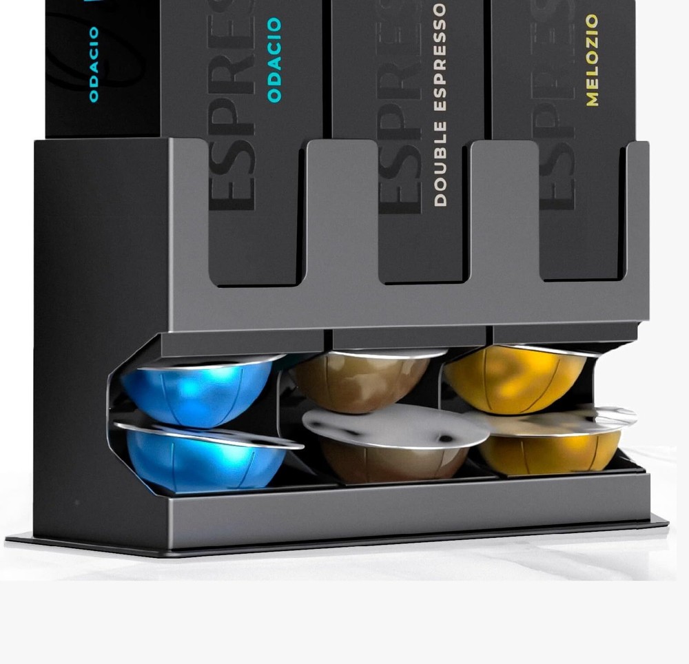 GALVANOX Pod Dispenser Designed for Nespresso Vertuo Capsules (3 Box Sleeve Holder) Freestanding Countertop Organizer Stand, Non-Slip Steel Base, Dispenses 3 Coffee Flavors (30 Vertuoline Pods) The 3-Sleeve Dispenser for Vertuo pods offers the perfect convenient solution for organizing and dispensing your Vertuo coffee pods directly from the original box. (Capacity: 3 boxes / 30 pods) Made of heavy duty metal, this coffee pod holder is built to last and adds a modern feel to your kitchen decor. The weighted base and easy reload design make it suitable for office use as well. The dispenser system keeps 3 boxes of your favorite flavors easily accessible, giving you the flexibility to choose the one that suits your mood at any given time. Space saving design can fit snugly against the wall to free up valuable counter space. (Dimensions: 8" x 5.5" x 3.5") Heavy duty 1.30mm gauge steel construction ensures long term durability, with a non-slip base to keep the dispenser securely in place. Shipping We offer FREE shipping on all orders! We ship within Three business days of payment, usually sooner. We use a selection of shipping services such as UPS, FedEx, USPS etc. We only ship to the lower 48 states, no APO/FPO addresses or PO Boxes allowed. Local pickups and combined shipping options are not provided at this time. Return You can return a product for up to 30 days from the date you purchased it ONLY if it's in the original condition. The product cannot be used or open. Any product you return must be in the exact same condition you received it and in the original packaging. Please keep the receipt. Feedback Customer satisfaction is very important to us. If you have any problem with your order, please contact us and we will do our best to make you satisfied. Contact Us If you have any queries, please contact us via ebay. We usually respond within 24 hours on weekdays. Please visit our eBay store to check out other items for sale! Thank you for shopping at our store.