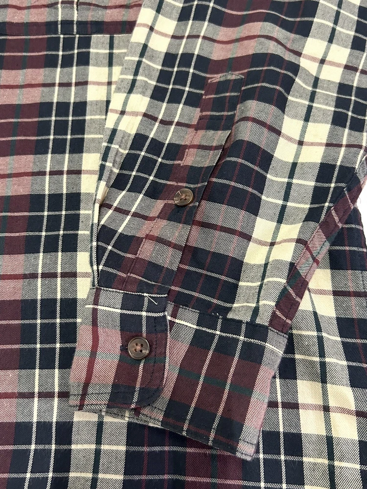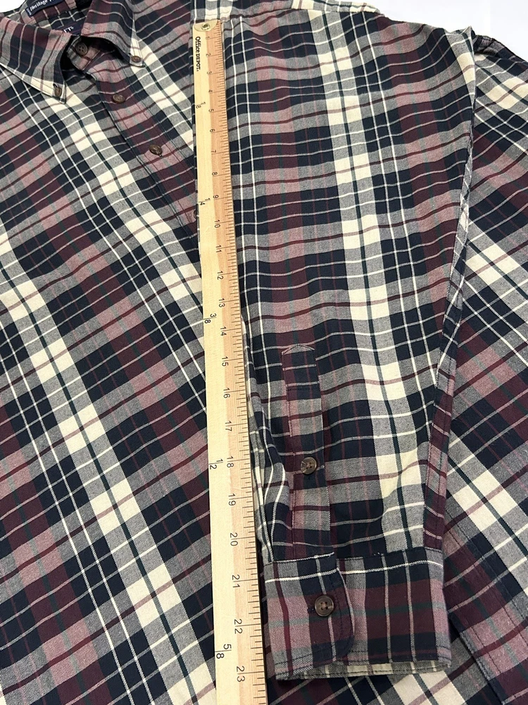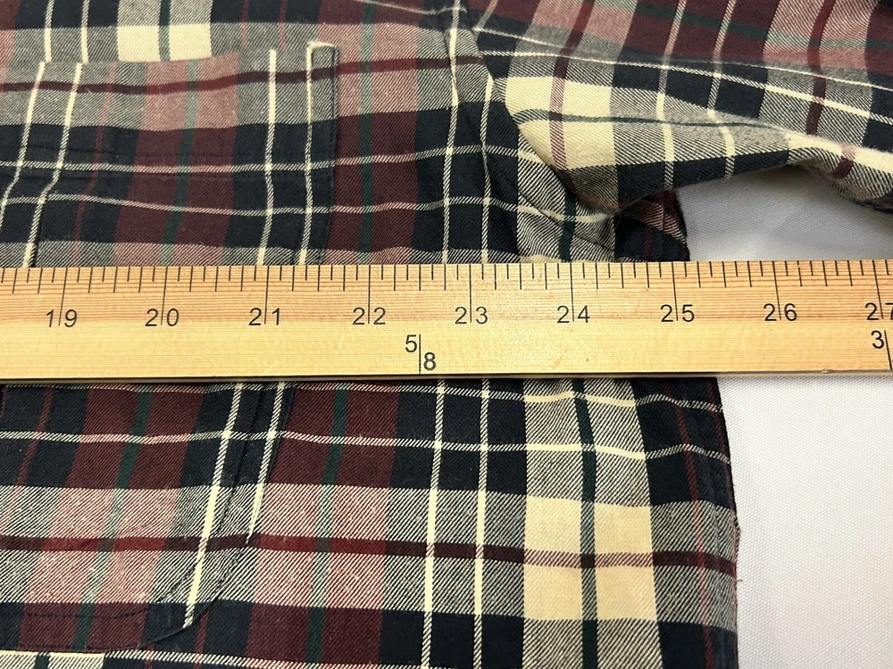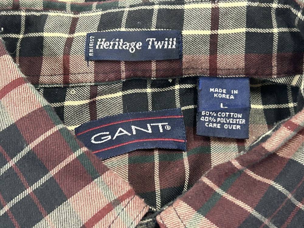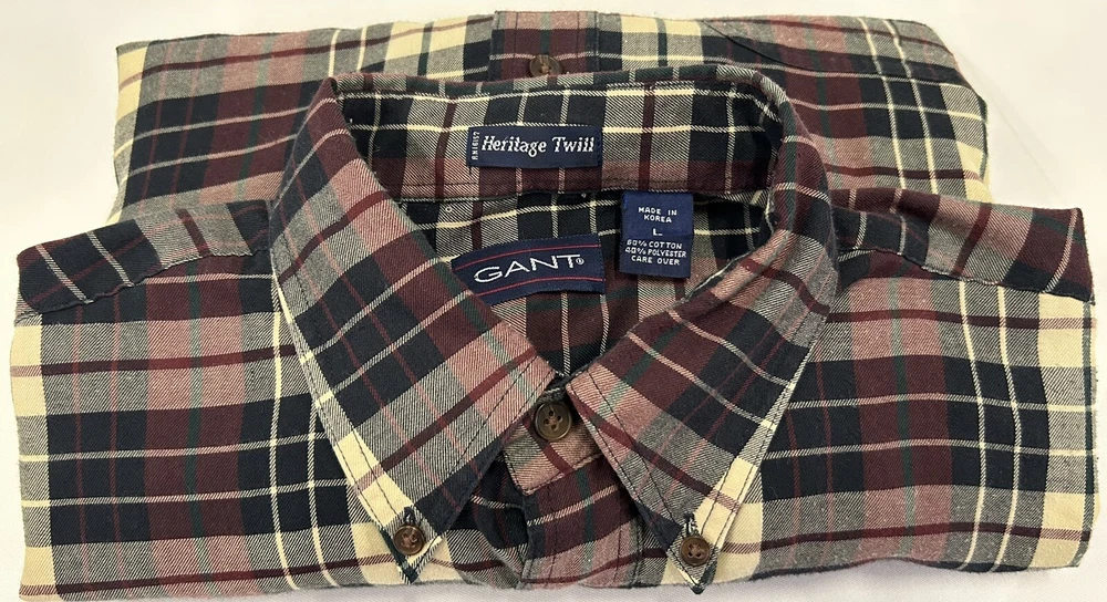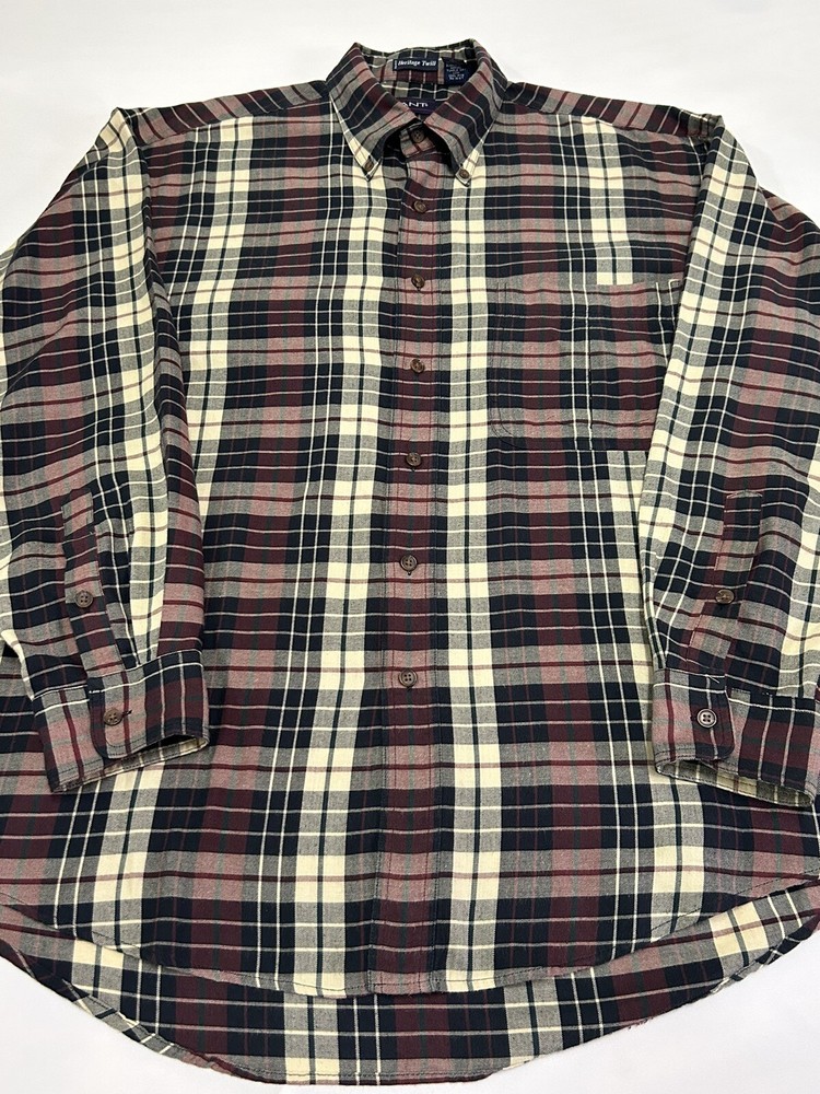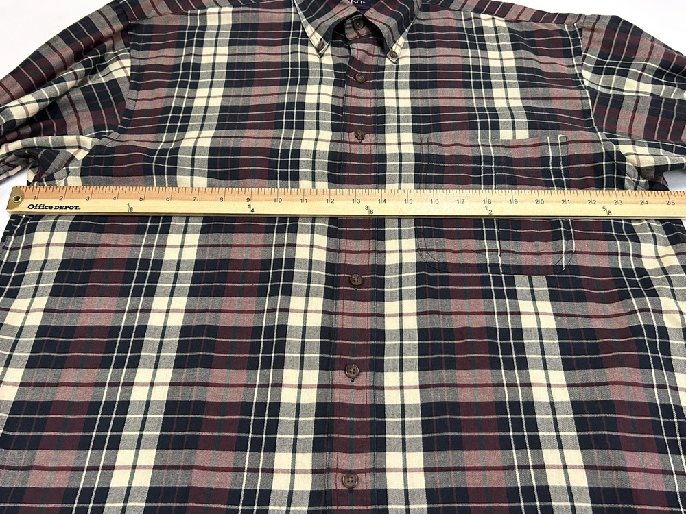 GANT Shirt Mens Large Heritage Twill Burgundy Black Cream Plaid Long Sleeve Button Up. Preowned in Excellent Condition. 30 inches shoulder to hem 25 inches pit to pit 23 inches sleeve Photos are part of description. We make an effort to supply plenty of photos to assist in your buying decision. Clothing: Please check appropriate measurements before purchasing. Preowned clothing may or may not have been worn, laundered or dry cleaned. Known details and observations are provided, as well as pictures. Seller welcomes communication and questions from potential Buyers. We operate under The Golden Rule....Do Unto Others, so please contact us through eBay if we can answer a question, provide more info, resolve an issue or improve your experience. It is our desire and plan to provide 5 Star service to every customer with fast shipping and accurate descriptions. We appreciate positive feedback. If there is a mistake, please allow us an opportunity to correct it before opening a ticket with eBay or leaving negative feedback. RETURNS: We offer a generous 30 Day return policy for items not as described or non-working unless otherwise described in listing so you can shop with confidence. We package carefully, so if an item is damaged during delivery, buyer will need to file a claim with carrier. Authorized returns must be returned with all the same packaging and box. Seller paid shipping for authorized domestic returns if not as described. Customer to pay return shipping for any authorized returns from international customers, Hawaii, Alaska, Guam, or anywhere outside of domestic U.S. SHIPPING: Shipping supplies have increased in cost. We try to obtain the lowest cost on supplies to keep shipping as reasonable as possible. There are many factors that affect shipping costs. When possible we try to upgrade shipping to Priority when able to use their supplies, facilitate faster shipping and insure package, especially for fragile items. We are happy to combine shipping with items purchased & paid the same day. Orders are always shipped out within one business day unless we are on a published time away. Many times shipping will occur same day. Note: Due to scammers, purchases made from Buyers with new accounts and/or no feedback may be cancelled and not shipped. We do not communicate outside of the eBay platform. International & Non Domestic Buyers: shipping will be handled through the eBay Global Shipping Program. Import duties, taxes, and charges are not included in the item price or shipping cost. These charges are the buyer's responsibility. Please check with your country's custom's office to determine what these additional costs will be prior to bidding or buying. We do not ship to P.O. Boxes. The Stanley Co will make every effort to make you a happy customer! Thanks for shopping with The Stanley Co! SEE ALL OUR EBAY LISTINGS HERE: TheStanleyCo.com