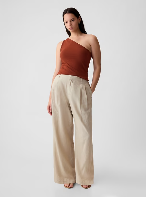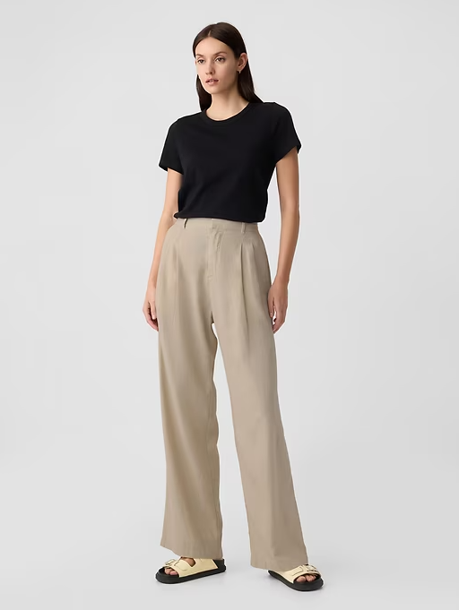 1. Absolutely love these wide-leg pants from GAP! The linen-rayon blend makes them super breezy and comfortable, perfect for warm days. The high waist and elasticized back provide a flattering fit without being too tight. The wide-leg silhouette adds a chic boho vibe, and the pockets are a great bonus. Easy to pair with a tucked-in tee or a cute crop top. Washed well and held their shape—definitely worth every penny!