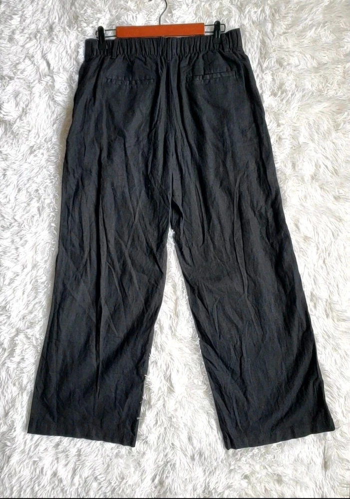 NEW WITH TAGS ~ GAP EASY WIDE-LEG LINEN-BLEND TROUSERS RETAIL PRICE $79.99 ~ SOLD OUT ONLINE Size: 16 Color: Black Product Details: Smooth linen blend. Elasticized waist at back. Hook and bar closure, zip fly. Front slant pockets, welt pockets at back. Pleated at front. #875360 Fit & Sizing: High waisted. Easy through the hip and thigh. Wide leg. Inseam: Petite 28", Regular 30", Tall 34.5” Fabric & Care: 55% Flax (Linen), 45% Rayon. Machine wash cold. Imported.