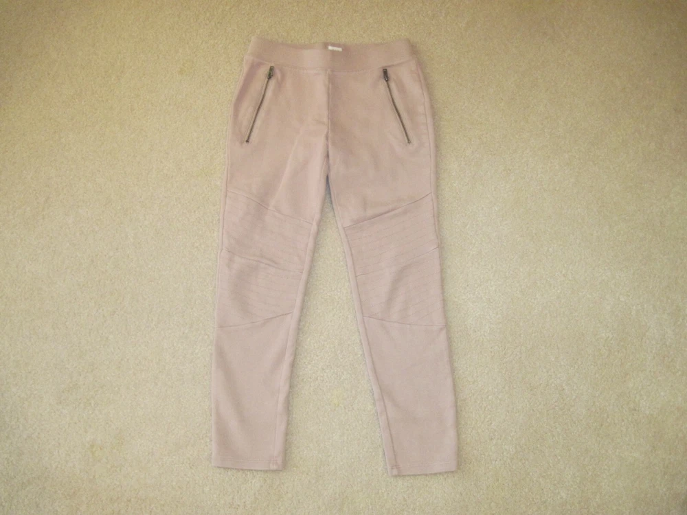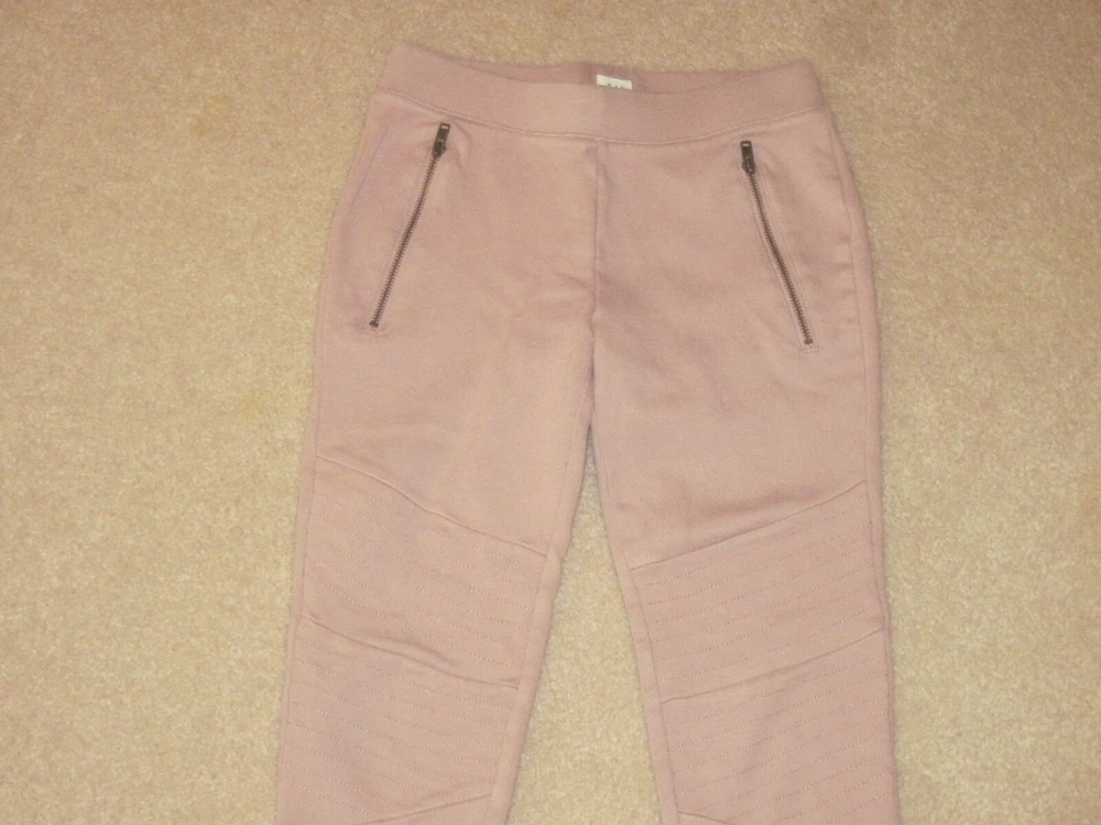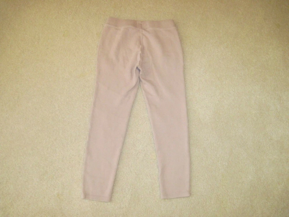 Soft comfy cropped Gap Kids girls 8 leggings, soft pink or mauve, zip front faux pockets, stretch waistband. Waist to hem is 26, inseam is 19 3/4. Cozy leggings for the season.