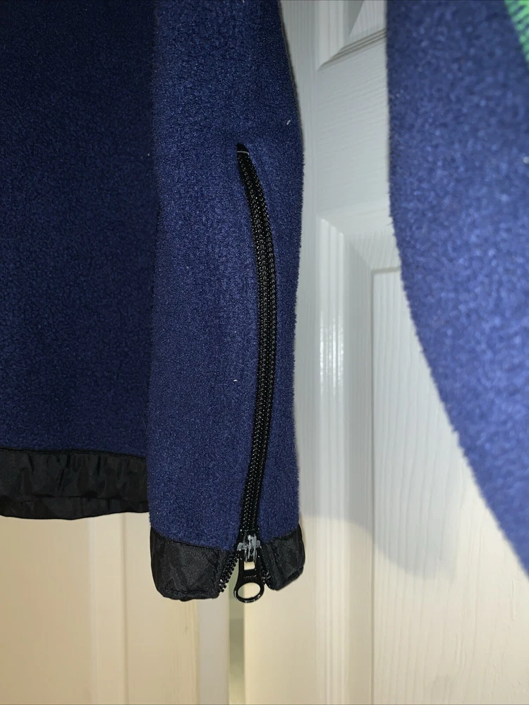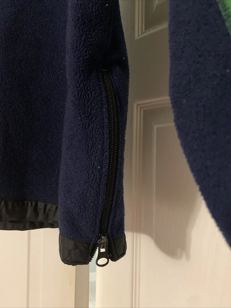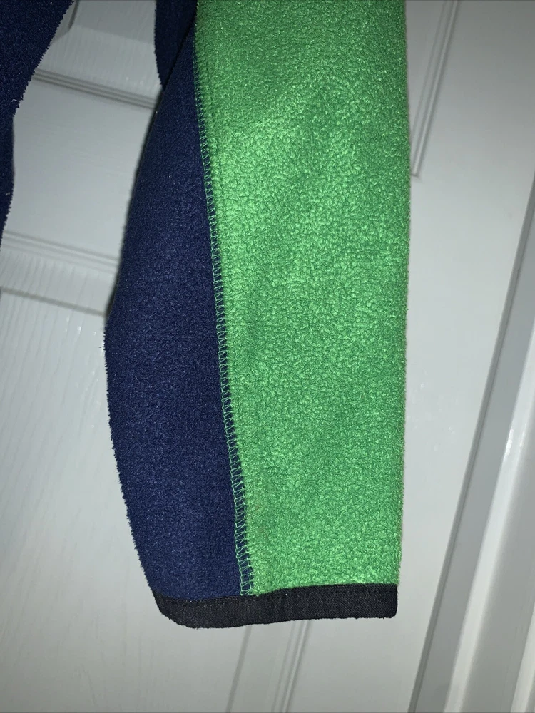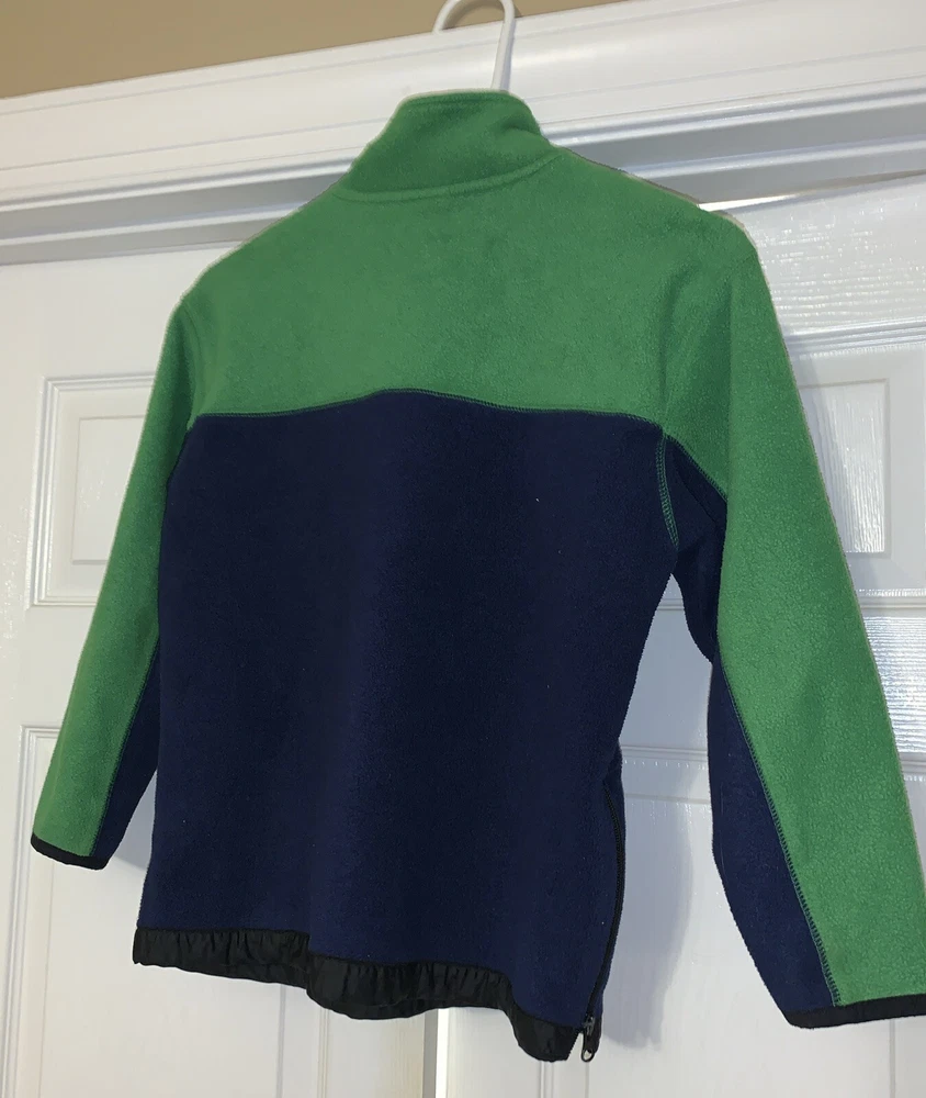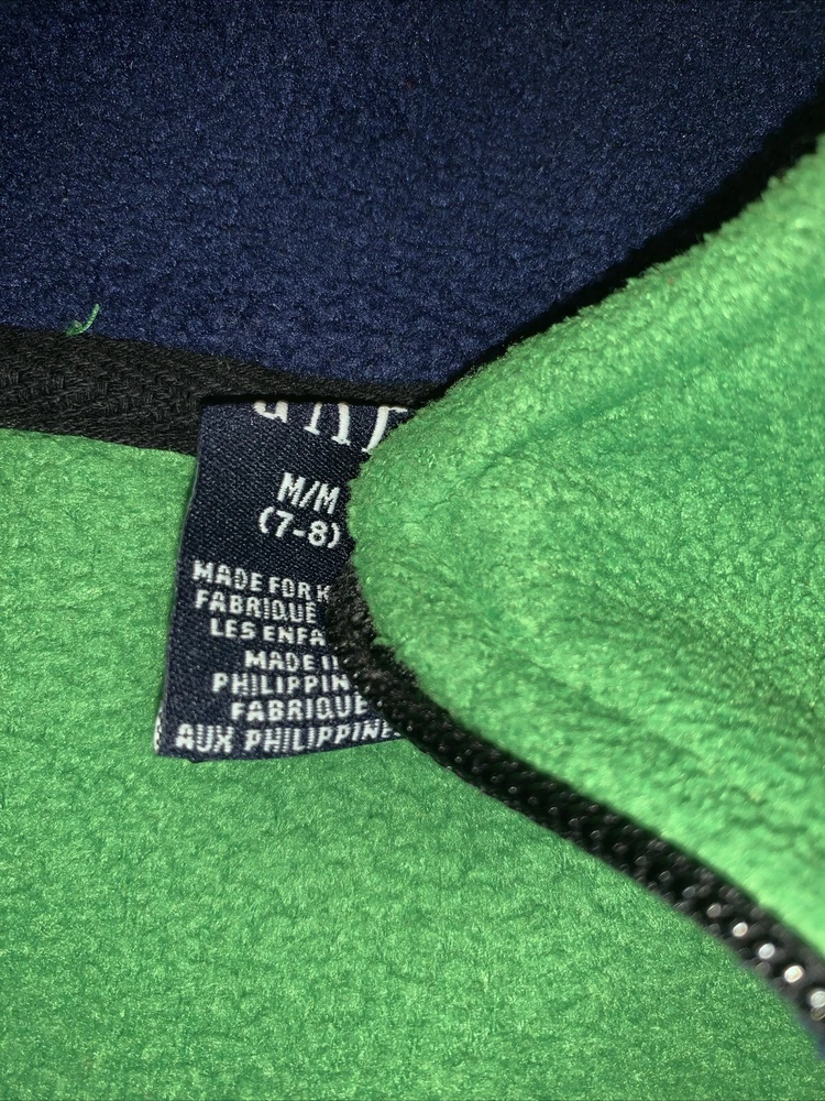 This GAP Kids Fleece Jacket is perfect for your little boy's winter, fall, or spring wardrobe. Made with 100% polyester material, this basic jacket is both comfortable and durable. The jacket features zipped pockets and a 1/4 zip, adding practicality to its style. The kelly green and navy colors of the jacket are perfect for boys who love outdoor activities and want to stay visible while playing. The fleece fabric type provides extra warmth. This jacket is available in size 7-8 medium and is ideal for boys who want to stay stylish and comfortable while playing. No stains or rips. From a pet free and smoke-free home.