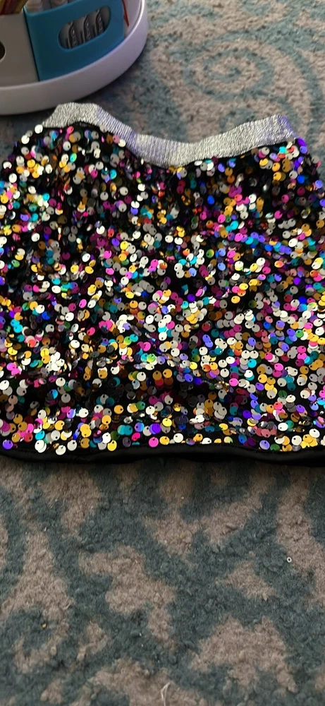 Add some sparkle to your little girl's wardrobe with this colorful GAP short sleeve dress. The A-line dress features a knee-length hemline, perfect for any occasion. The dress is adorned with beautiful sequins that add a touch of glamour to the overall look. The dress is available in size S and is suitable for girls aged 5 years or older. The dress is perfect for any girl who loves colorful and fun clothing.