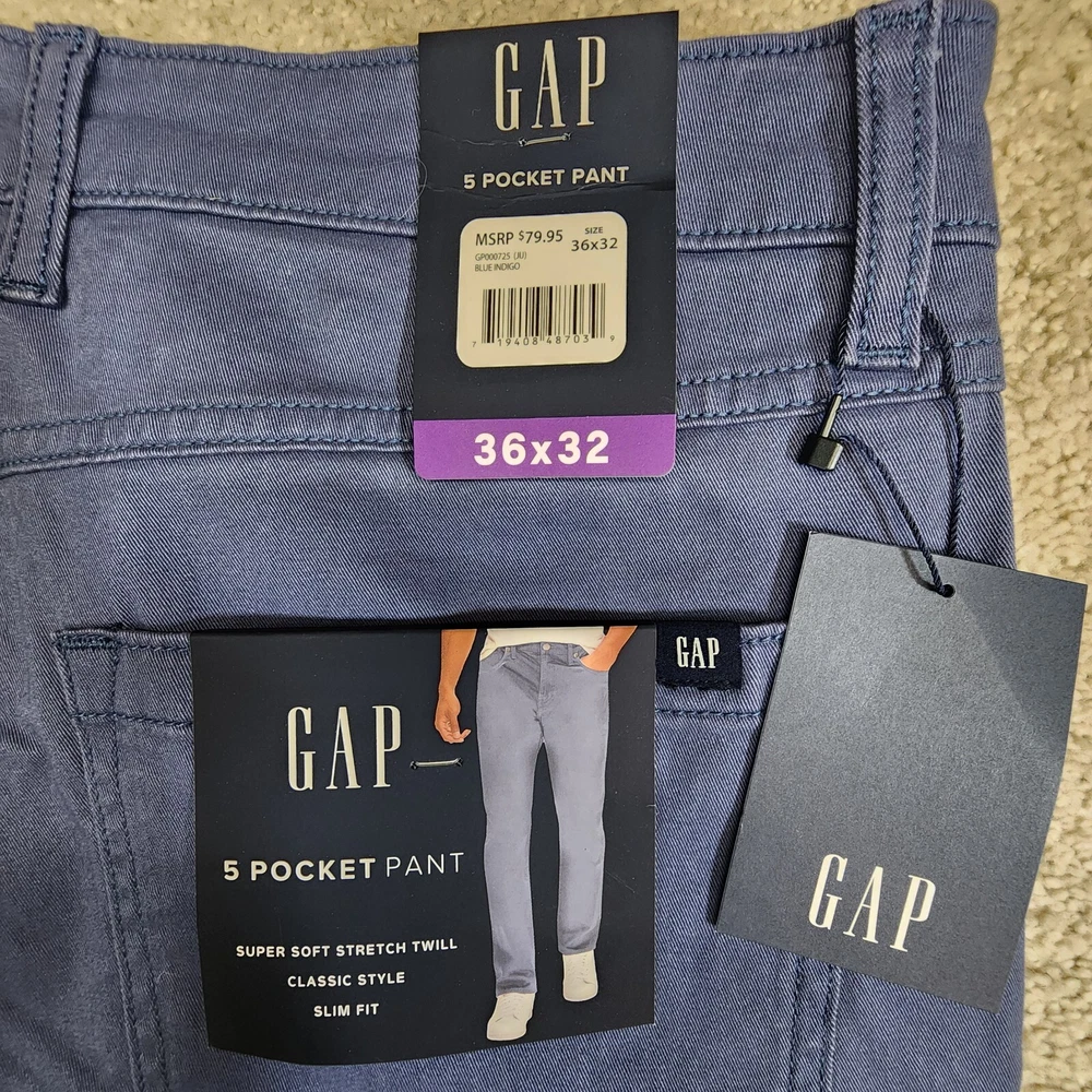 Elevate your wardrobe with these GAP men's pants in a stunning indigo blue color. Crafted from a blend of fabric types including Algodon, Cotton, and Elastano, these pants are super soft and stretchy, ensuring maximum comfort. The flat front and straight leg style give them a modern look, while the 5-pocket design provides ample storage space. Ideal for casual occasions, these chino-style pants are perfect for the hipster, hippie, grunge, and bohemian themes, making them a versatile addition to your wardrobe. They are machine washable and easy to care for, making them a practical choice for everyday wear. Add these slim-fit pants to your collection today!