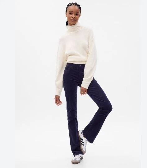 NEW WITH TAGS – GAP MID RISE CORDUROY BABY BOOT PANTS Retail Price $79.95 (Sold out online) Size: 28/6 Color: Navy Blue PRODUCT DETAILS: A classic bootcut jean with a mini-gone-major update. We kept it straight through the leg — then ended with a slight flare. This is the 2.0 version of a forever favorite. Fit: A full-length slim fit with a mini bootcut leg. Fabric: 75% Cotton, 18% Rayon, 5% Recycled Cotton, 2% Stretch. Stretch: Stretch Pants. A bit of hug & a lot of hold. Comfortable & designed to flatter. Rise: Mid Rise Pants. Look: A classic five-pocket corduroy pant. Details: Zip fly & five-pocket styling. Responsibly Made: This pair of pant is part of our water-saving Washwell program. Compared to conventional wash methods, Washwell has saved millions of liters of water since 2016. #728768 FIT & SIZING: Our Mid Rise Pant has a 10" (25 cm) rise. Slim through the hip & thigh. Mini bootcut leg. Full-length pant. 17.5" (44 cm) leg opening. Inseam: Petite 29" (74 cm), Short 30″ (76 cm), Regular 31.5" (80 cm), Long 33.5" (85 cm), Tall 35.5 (90 cm). Models wearing Gap size 27 are 5'8"–5'11" (172–180 cm) with 23.5–26" (60–66 cm) waist & 33–38" (84–97 cm) hips. Models wearing Gap size 33 are 5'8"–5'11" (172–180 cm) with 34–36” (86–91 cm ) waist & 45–50" (114–127 cm) hips. FABRIC & CARE: Cotton 75%, Rayon 18%, Recycled Cotton 5%, Spandex 2% Machine wash. Imported.