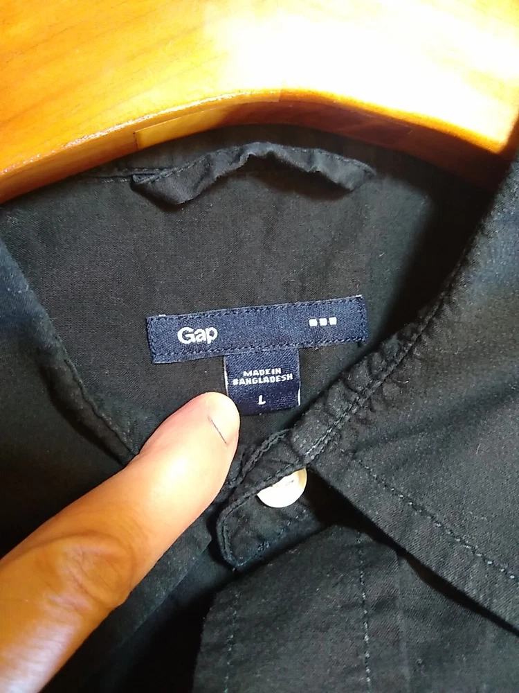 This shirt is extremely lightweight. It is made of breathable cotton in a classic black with statement white buttons. From GAP Men, this timeless design will make you feel comfortable and first class during your weekend travels.