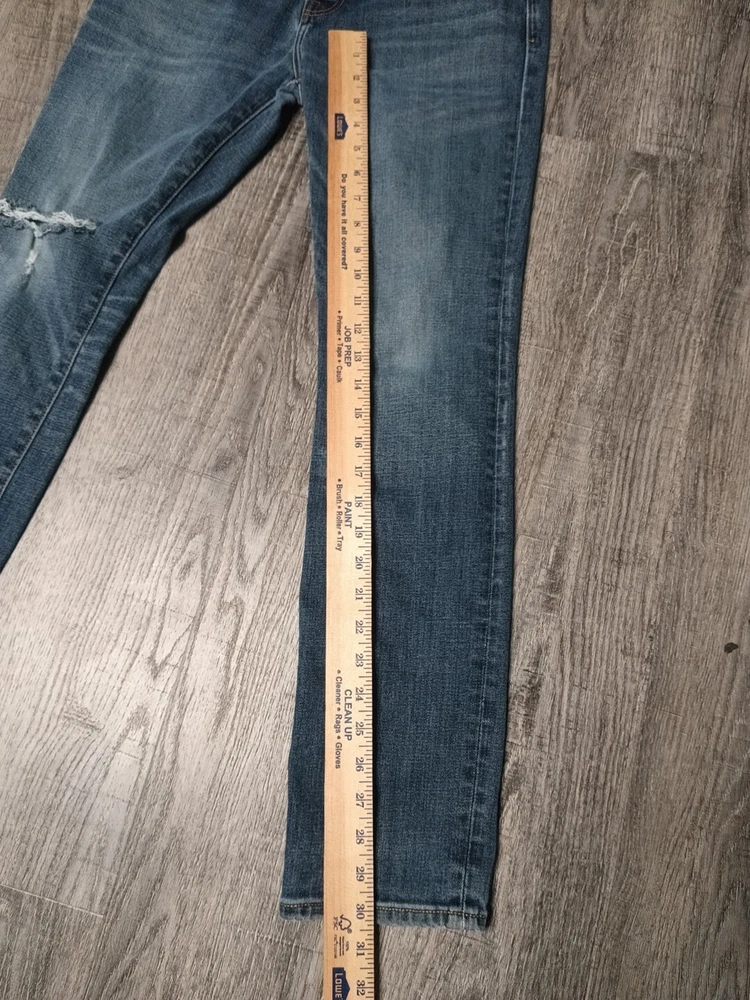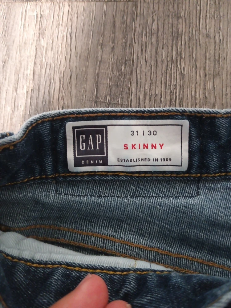 Elevate your fashion game with these stylish GAP skinny jeans in size 31 x 30. The dark wash blue denim fabric is perfect for any occasion and the distressed and ripped accents give it a trendy edge. The zip closure and button accents add a touch of sophistication to your outfit. Crafted from a comfortable cotton blend, these jeans feature pockets to store your essentials. The GAP 1969 model is designed to fit slim and is perfect for a preppy look. These jeans are a must-have addition to your wardrobe and are sure to turn heads.