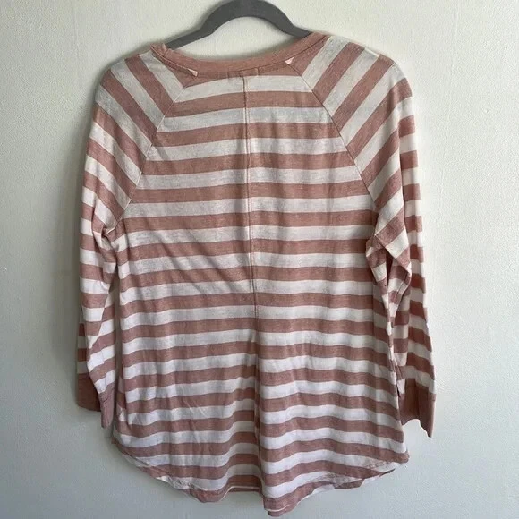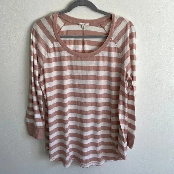 This GAP striped maternity top in size large is perfect for expecting mothers who want to stay stylish and comfortable. The 3/4 sleeves and multicolor stripes make it a versatile piece that can be dressed up or down. The brand is known for its quality and durability, ensuring that this top will last through multiple wears. Pilling under arms (see photo).