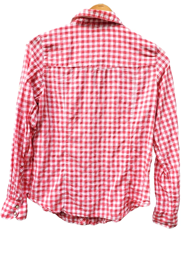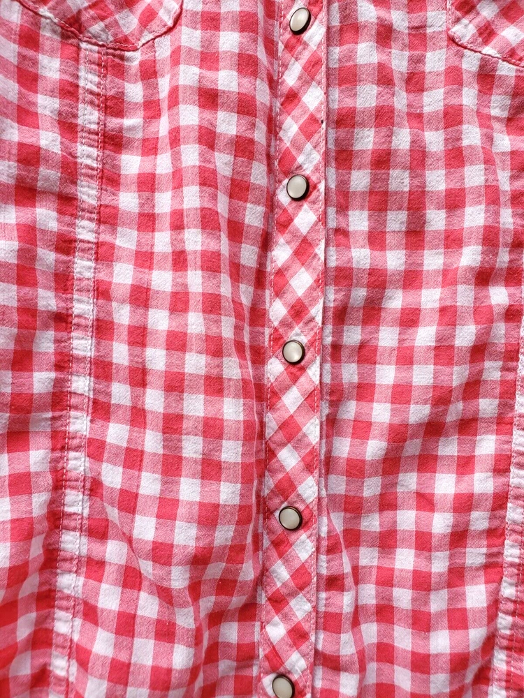 GAP large pink and white checked SNAPPED top shirt blouse womens, cotton & span.