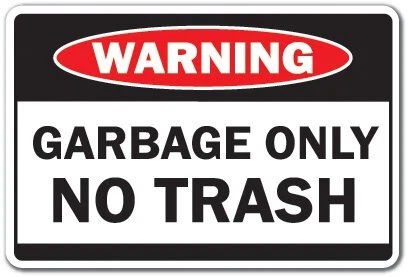 GARBAGE ONLY Sign trash can dumpster | Indoor/Outdoor | 20" Tall Plastic Sign
