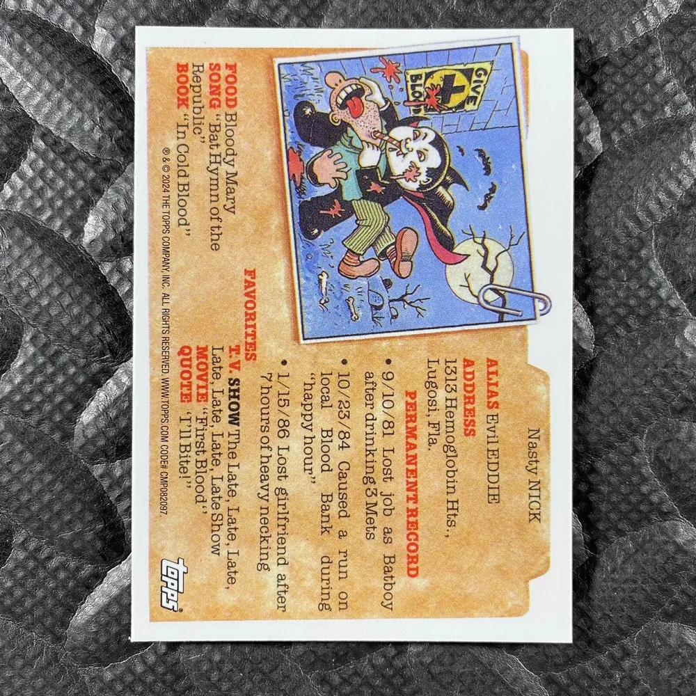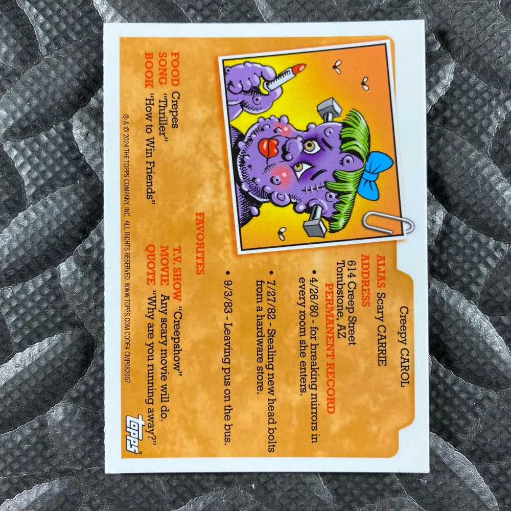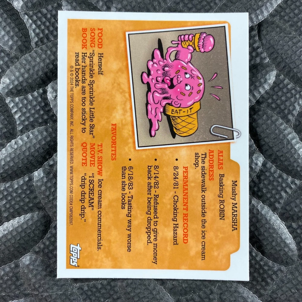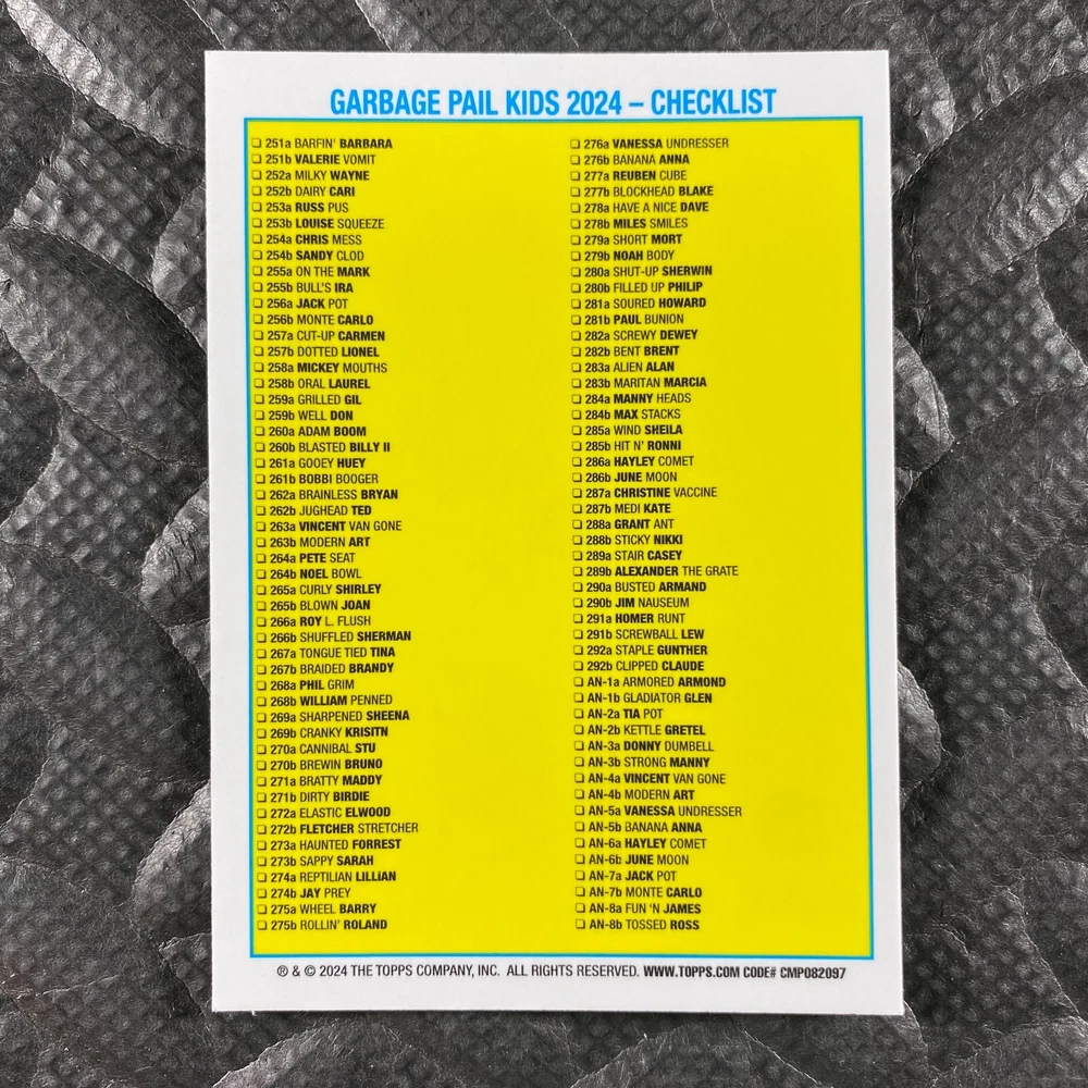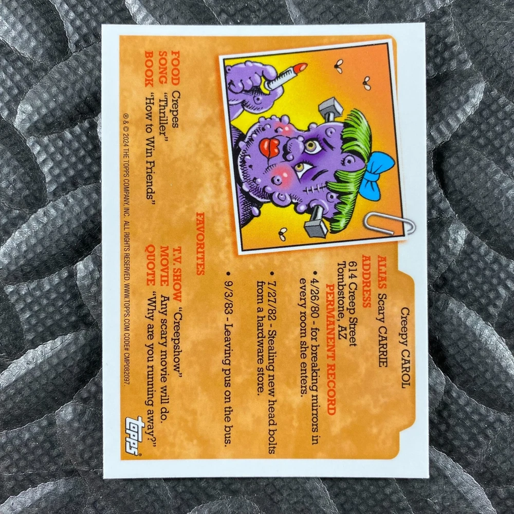 This listing is for your choice of any available 2025 Topps Garbage Pail Kids "Chrome 7" Drool Refractor card from the drop-down menu above. Check out my other listings for more single parallels from this same set. Any questions? Please ask before buying. International "USPS First Class Mail" will not include a tracking number for this item, if you would like a tracking number please choose the "eBay International Standard Shipping" option when you check out. As with all of my "pick-a-card" listings, I will be shipping with "eBay Standard Envelope". The rules of this envelope state that it cannot be too thick, so please expect your order to be packaged as follows: 1 to 6 cards will be slid into a single sleeve, the sleeve will then be slid inside of a semi-rigid Card-Saver. 7 to 12 cards will be slid into a double sleeve, 13 to 18 cards into a triple sleeve, 19 to 24 cards into a quadruple sleeve(up to six cards per sleeve). The double, triple and quadruple sleeve shipping will not have the Card-Saver. If you buy more than 1 card and want it packaged with more than 1 Card-Saver(or 1 sleeve per card), I kindly ask that you contact me before purchasing to be sure that this is possible to have it done with the stated shipping charge, or if additional shipping would be required. If you do not contact me, then you can expect to receive your order packaged as I have explained here. Please do not expect rigid top-loaders to be included, I don't normally keep a lot of them in stock, but if you message me prior to ordering I will be able to see if I have any that can be included with your order - additional shipping may be required. In order to get free combined shipping from this and any of my other "pick-a-card" listings, you must add all of your cards to the cart and check out when you are done shopping. If you do not use the cart you will be overpaying on shipping and I cannot refund you on over-payed shipping. So please use the cart and get your FREE COMBINED SHIPPING!