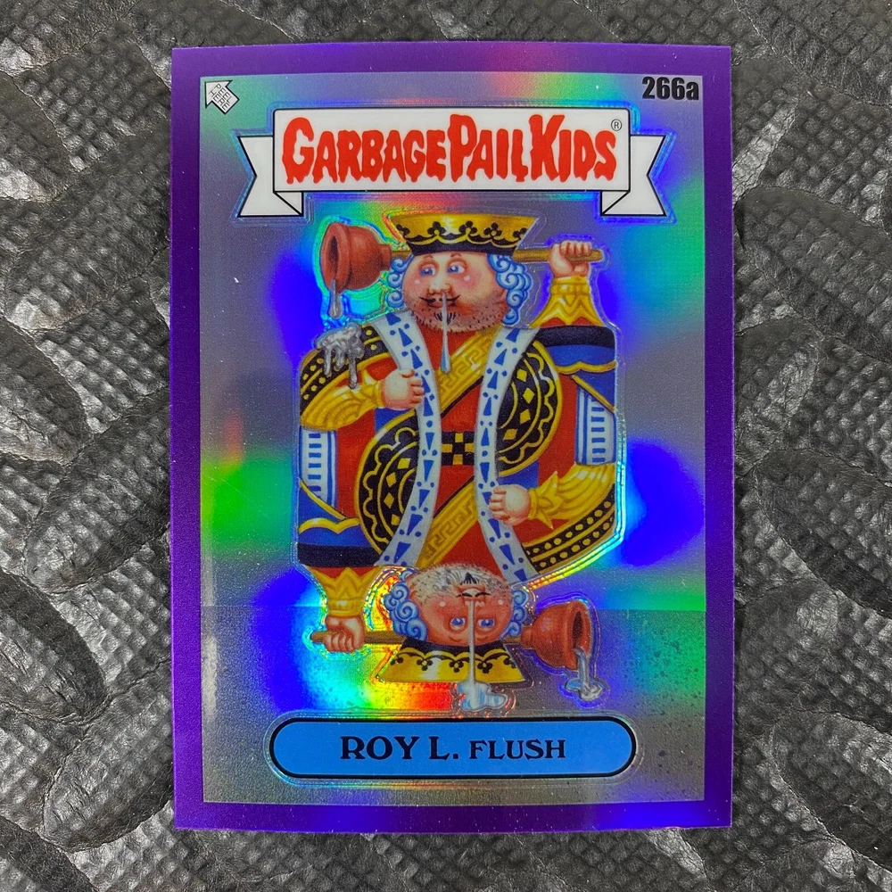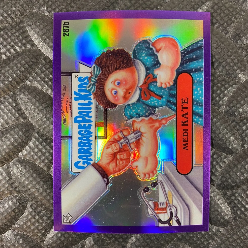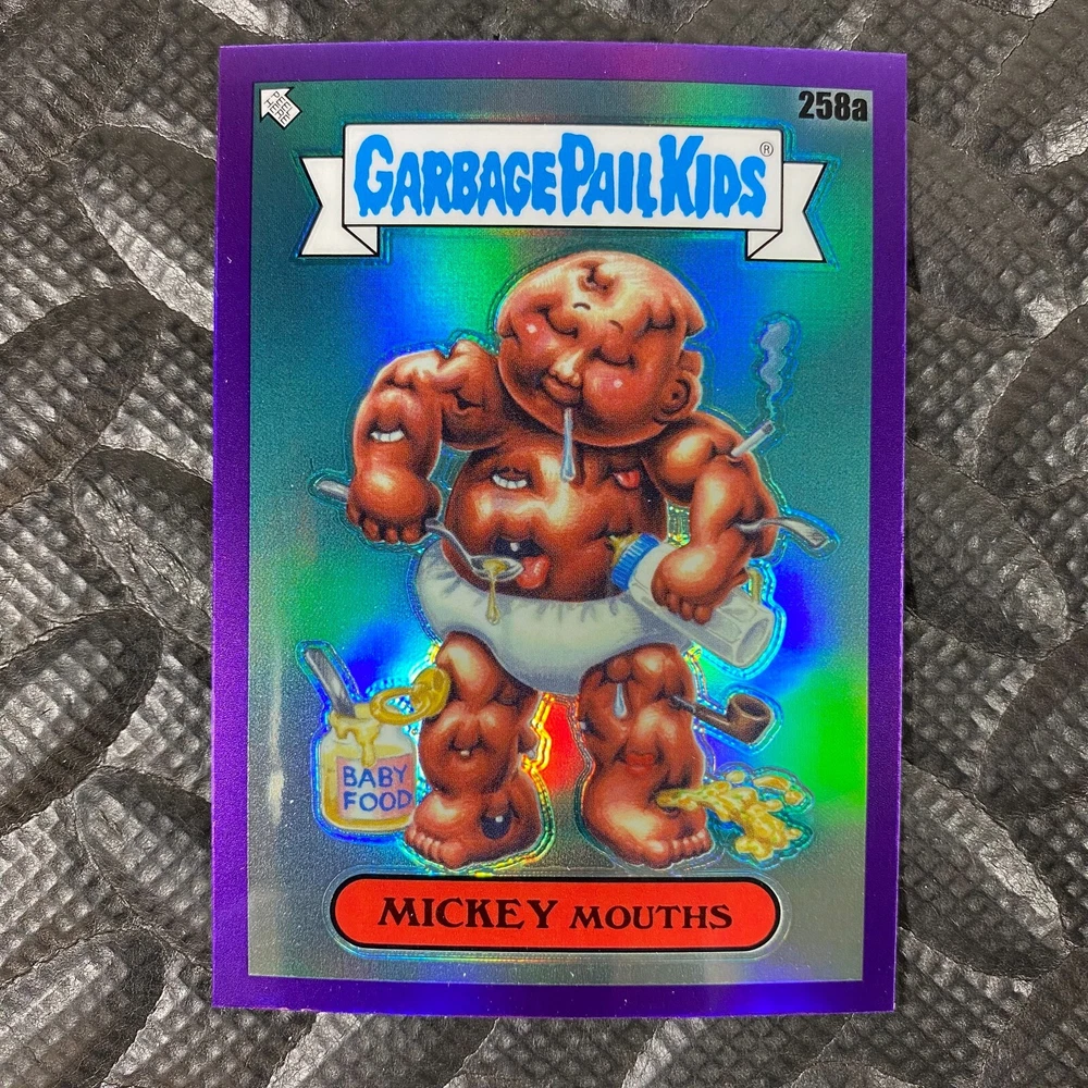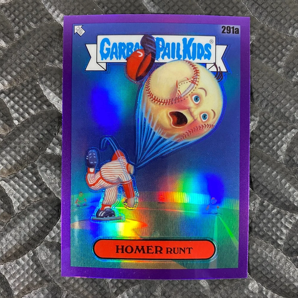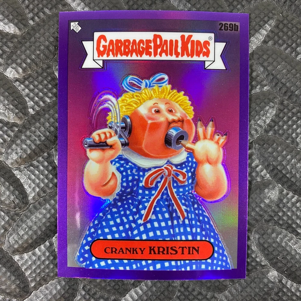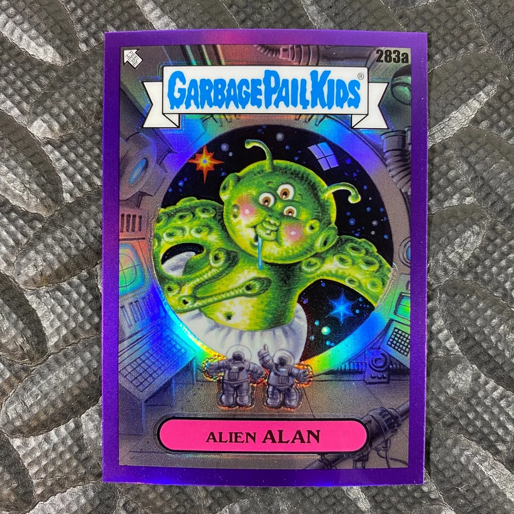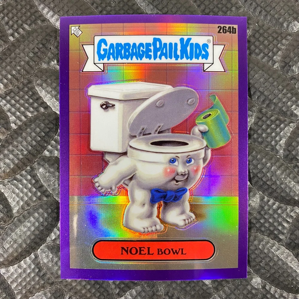 This listing is for your choice of any available 2025 Topps Garbage Pail Kids "Chrome 7" Purple Refractor card from the drop-down menu above. Check out my other listings for more single parallels from this same set. Any questions? Please ask before buying. As with all of my "pick-a-card" listings, I will be shipping with "eBay Standard Envelope". The rules of this envelope state that it cannot be too thick, so please expect your order to be packaged as follows: 1 to 6 cards will be slid into a single sleeve, the sleeve will then be slid inside of a semi-rigid Card-Saver. 7 to 12 cards will be slid into a double sleeve, 13 to 18 cards into a triple sleeve, 19 to 24 cards into a quadruple sleeve(up to six cards per sleeve). The double, triple and quadruple sleeve shipping will not have the Card-Saver. If you buy more than 1 card and want it packaged with more than 1 Card-Saver(or 1 sleeve per card), I kindly ask that you contact me before purchasing to be sure that this is possible to have it done with the stated shipping charge, or if additional shipping would be required. If you do not contact me, then you can expect to receive your order packaged as I have explained here. Please do not expect rigid top-loaders to be included, I don't normally keep a lot of them in stock, but if you message me prior to ordering I will be able to see if I have any that can be included with your order - additional shipping may be required. In order to get free combined shipping from this and any of my other "pick-a-card" listings, you must add all of your cards to the cart and check out when you are done shopping. If you do not use the cart you will be overpaying on shipping and I cannot refund you on over-payed shipping. So please use the cart and get your FREE COMBINED SHIPPING!