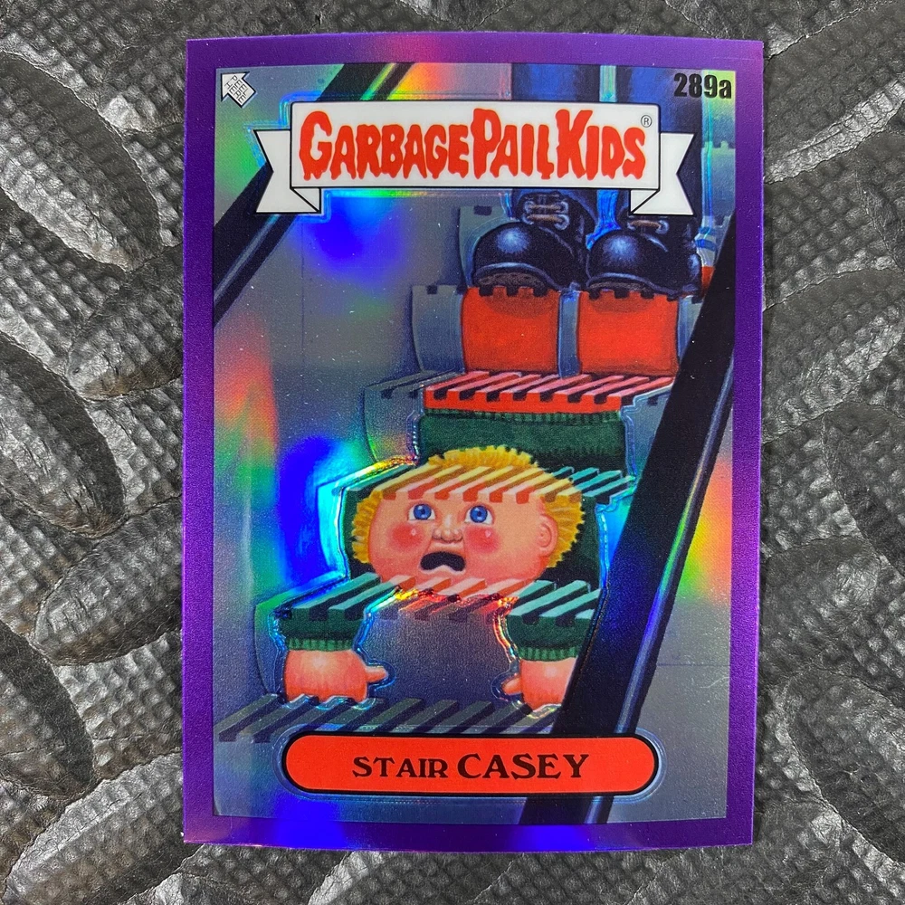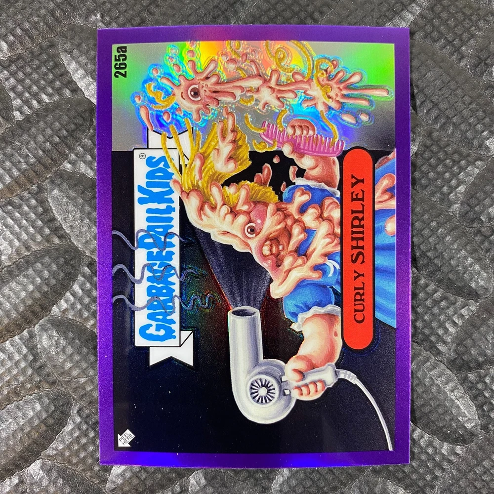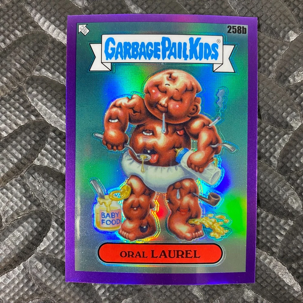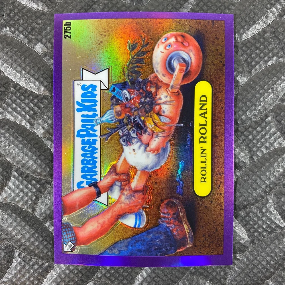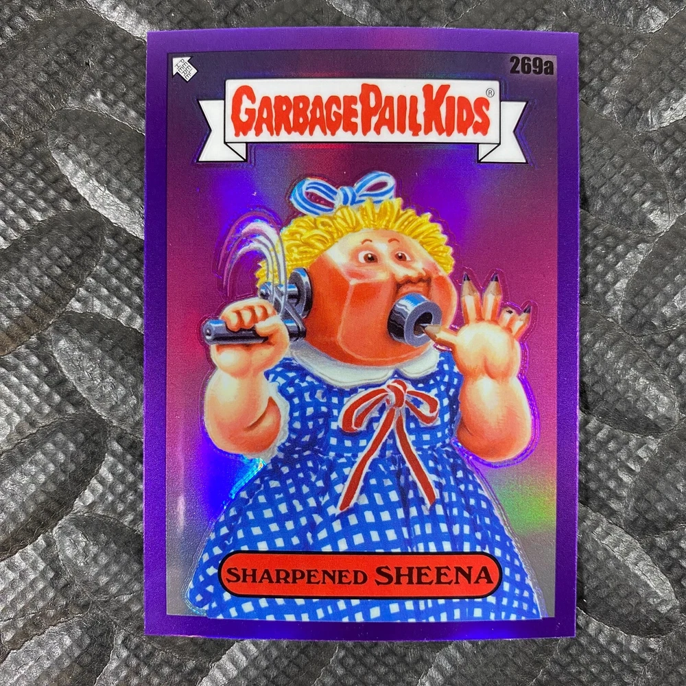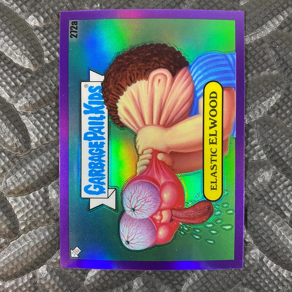 This listing is for your choice of any available 2025 Topps Garbage Pail Kids "Chrome 7" Purple Refractor card from the drop-down menu above. Check out my other listings for more single parallels from this same set. Any questions? Please ask before buying. As with all of my "pick-a-card" listings, I will be shipping with "eBay Standard Envelope". The rules of this envelope state that it cannot be too thick, so please expect your order to be packaged as follows: 1 to 6 cards will be slid into a single sleeve, the sleeve will then be slid inside of a semi-rigid Card-Saver. 7 to 12 cards will be slid into a double sleeve, 13 to 18 cards into a triple sleeve, 19 to 24 cards into a quadruple sleeve(up to six cards per sleeve). The double, triple and quadruple sleeve shipping will not have the Card-Saver. If you buy more than 1 card and want it packaged with more than 1 Card-Saver(or 1 sleeve per card), I kindly ask that you contact me before purchasing to be sure that this is possible to have it done with the stated shipping charge, or if additional shipping would be required. If you do not contact me, then you can expect to receive your order packaged as I have explained here. Please do not expect rigid top-loaders to be included, I don't normally keep a lot of them in stock, but if you message me prior to ordering I will be able to see if I have any that can be included with your order - additional shipping may be required. In order to get free combined shipping from this and any of my other "pick-a-card" listings, you must add all of your cards to the cart and check out when you are done shopping. If you do not use the cart you will be overpaying on shipping and I cannot refund you on over-payed shipping. So please use the cart and get your FREE COMBINED SHIPPING!