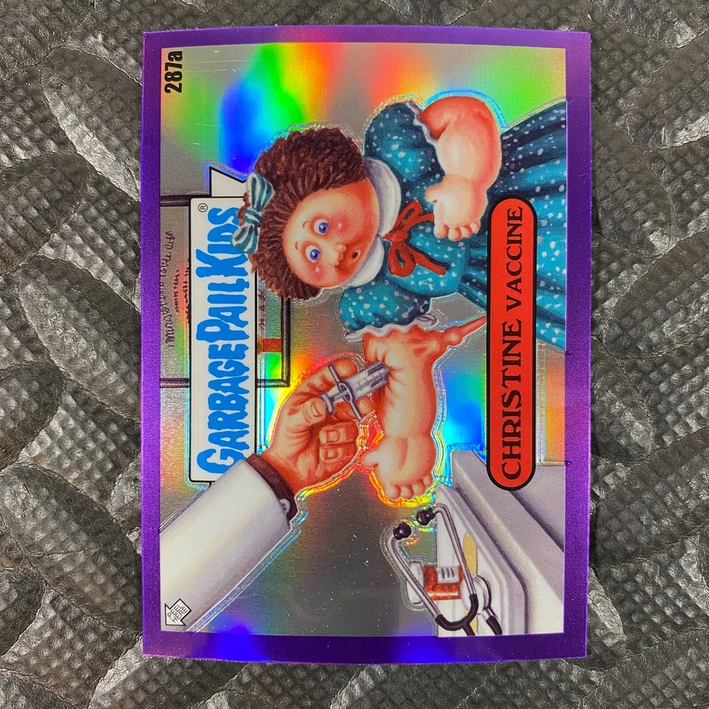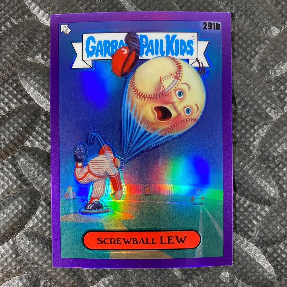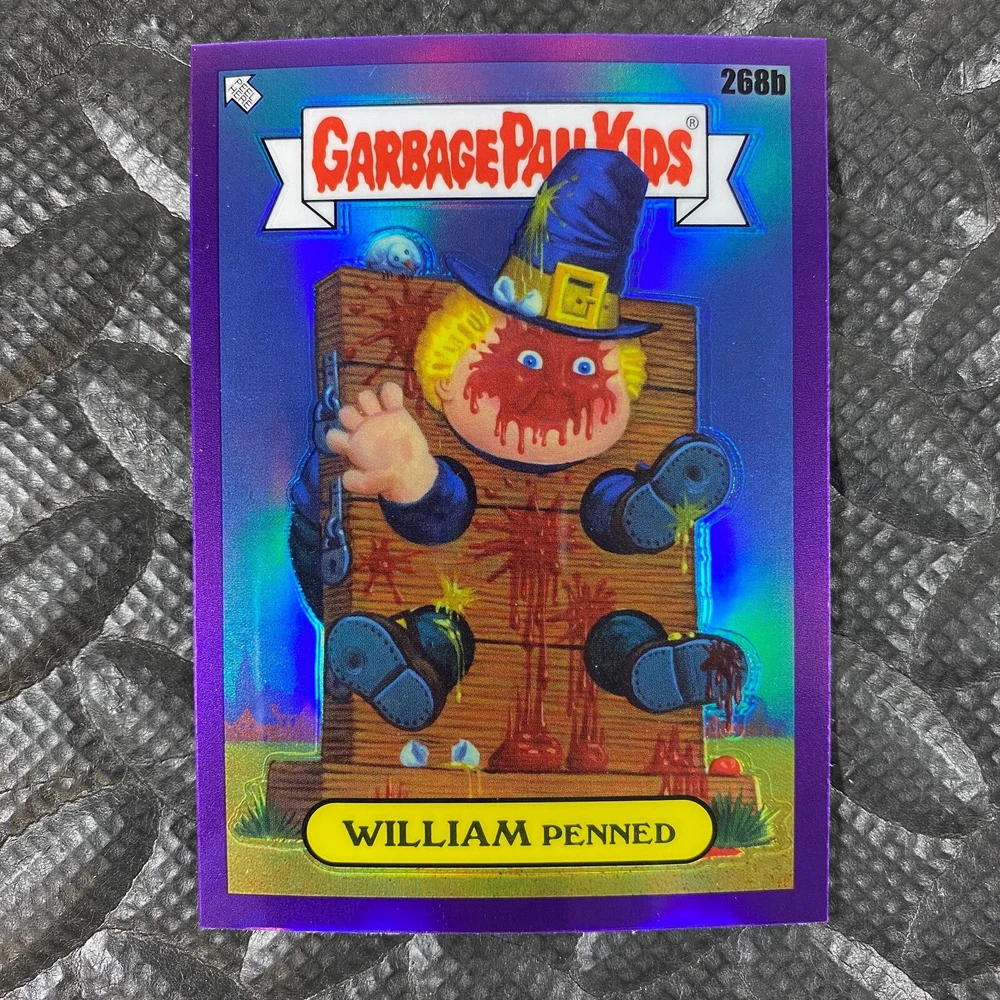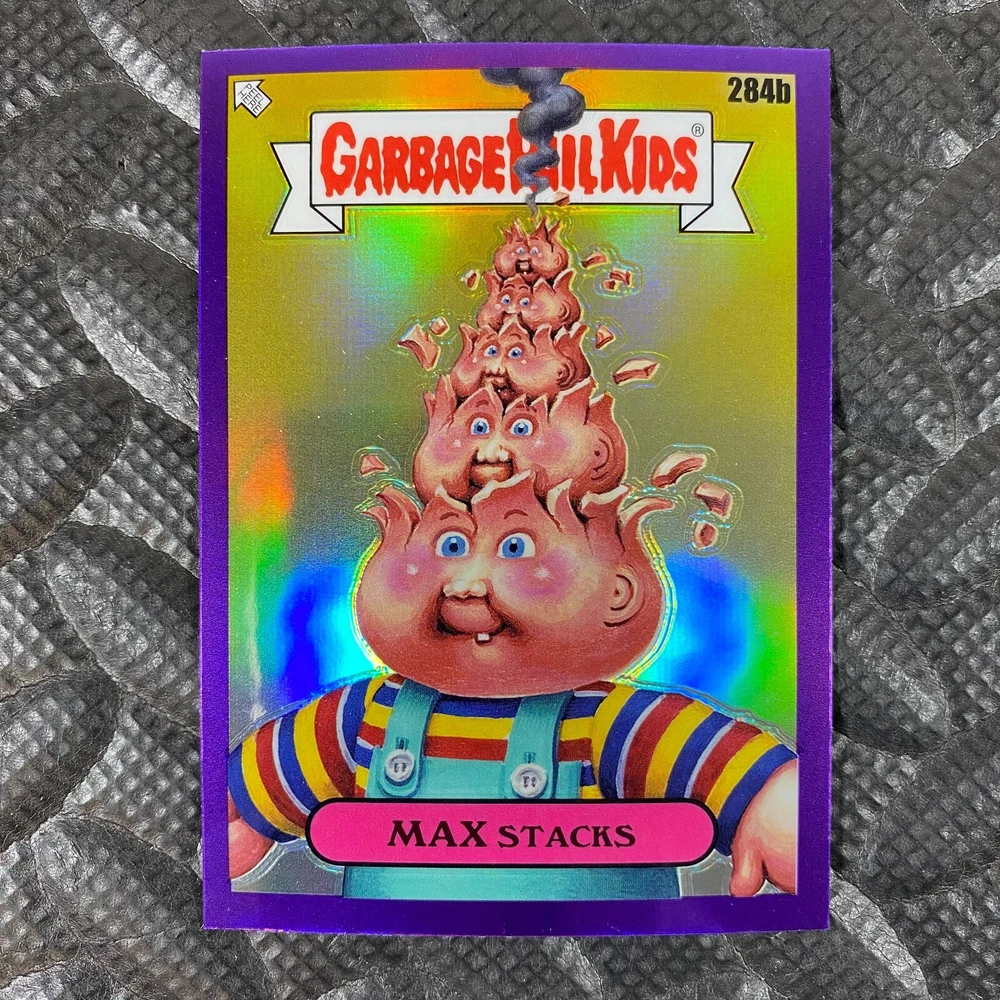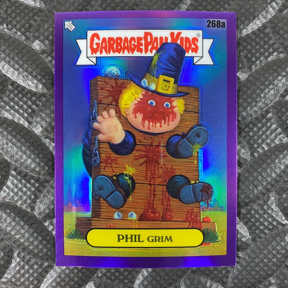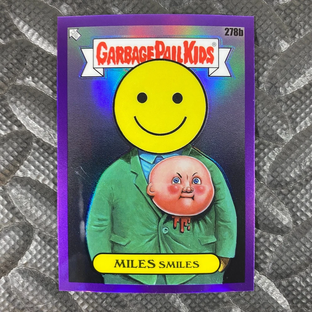 This listing is for your choice of any available 2025 Topps Garbage Pail Kids "Chrome 7" Purple Refractor card from the drop-down menu above. Check out my other listings for more single parallels from this same set. Any questions? Please ask before buying. As with all of my "pick-a-card" listings, I will be shipping with "eBay Standard Envelope". The rules of this envelope state that it cannot be too thick, so please expect your order to be packaged as follows: 1 to 6 cards will be slid into a single sleeve, the sleeve will then be slid inside of a semi-rigid Card-Saver. 7 to 12 cards will be slid into a double sleeve, 13 to 18 cards into a triple sleeve, 19 to 24 cards into a quadruple sleeve(up to six cards per sleeve). The double, triple and quadruple sleeve shipping will not have the Card-Saver. If you buy more than 1 card and want it packaged with more than 1 Card-Saver(or 1 sleeve per card), I kindly ask that you contact me before purchasing to be sure that this is possible to have it done with the stated shipping charge, or if additional shipping would be required. If you do not contact me, then you can expect to receive your order packaged as I have explained here. Please do not expect rigid top-loaders to be included, I don't normally keep a lot of them in stock, but if you message me prior to ordering I will be able to see if I have any that can be included with your order - additional shipping may be required. In order to get free combined shipping from this and any of my other "pick-a-card" listings, you must add all of your cards to the cart and check out when you are done shopping. If you do not use the cart you will be overpaying on shipping and I cannot refund you on over-payed shipping. So please use the cart and get your FREE COMBINED SHIPPING!