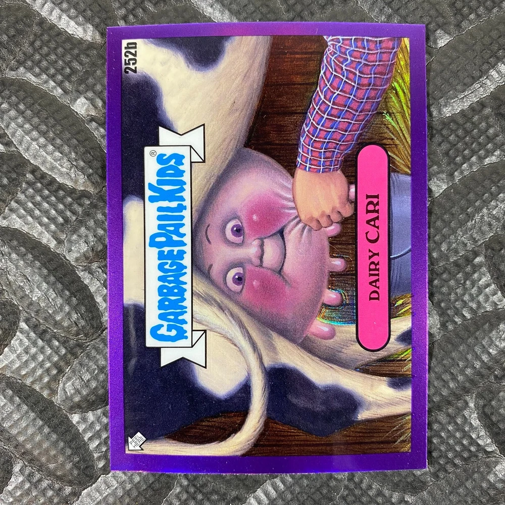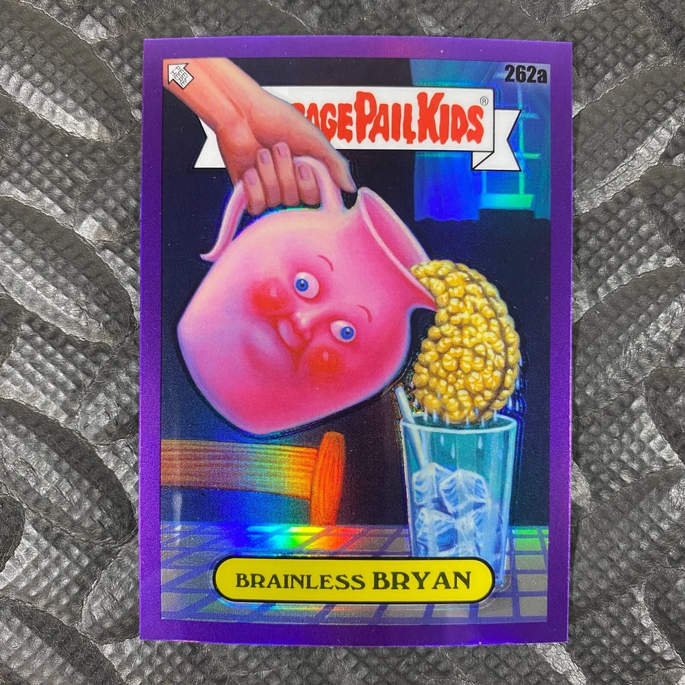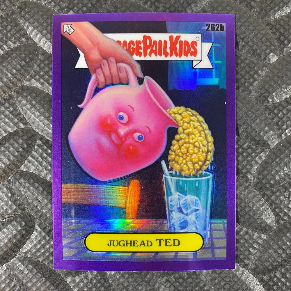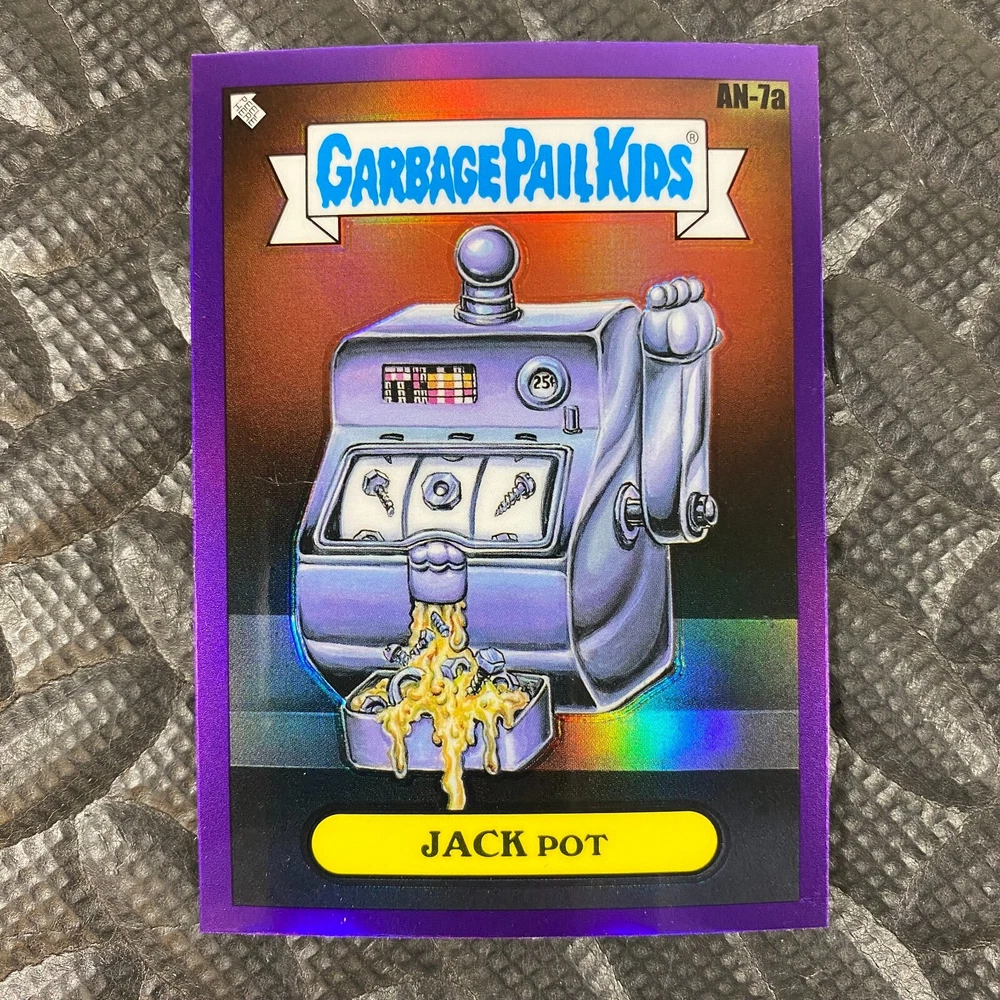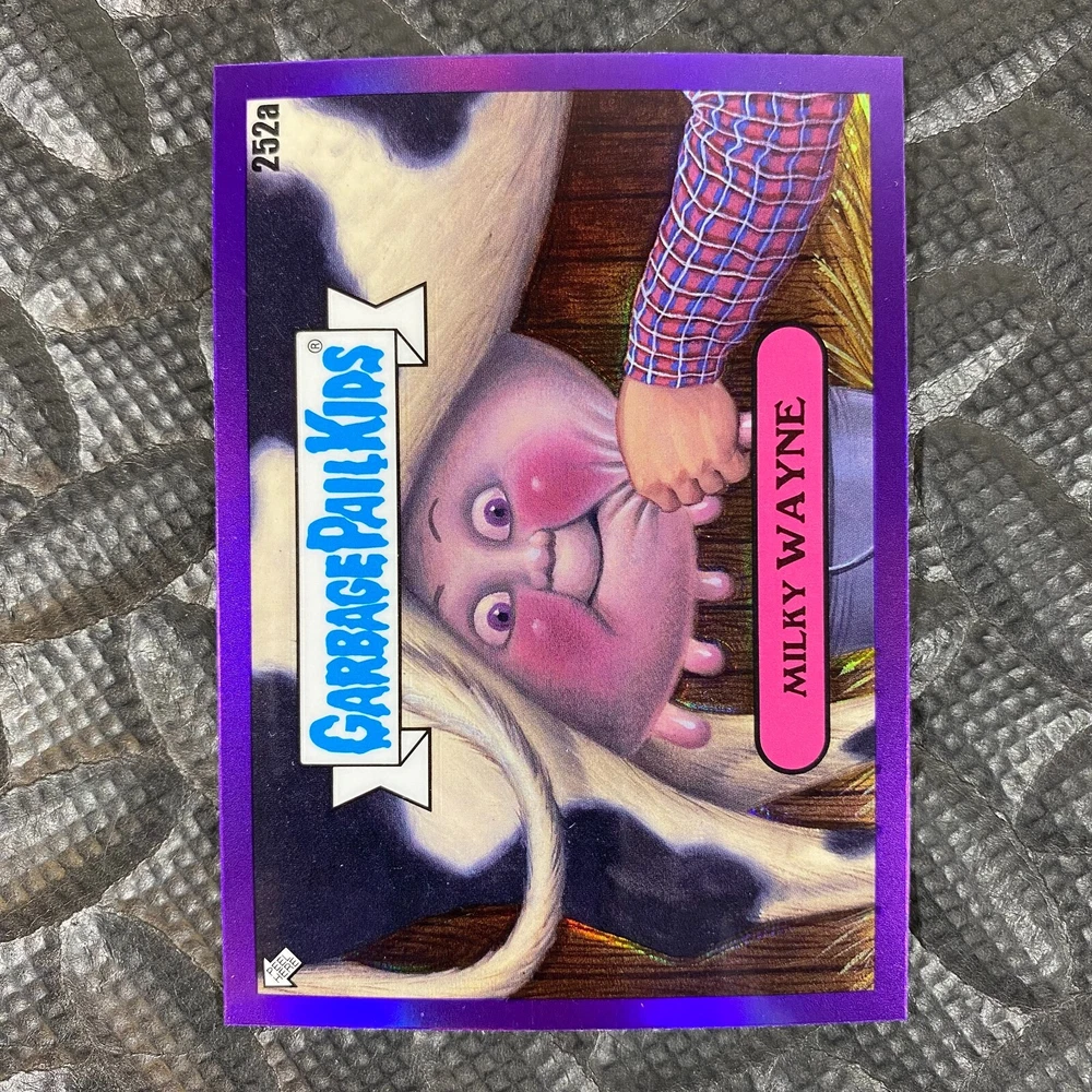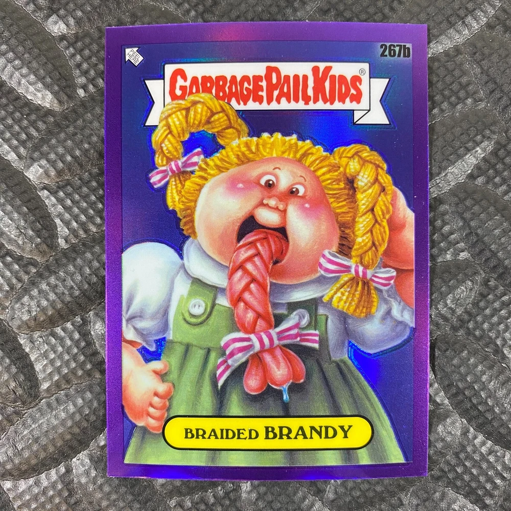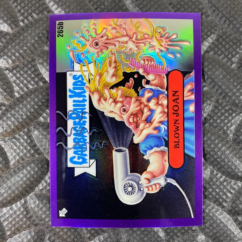 This listing is for your choice of any available 2025 Topps Garbage Pail Kids "Chrome 7" Purple Refractor card from the drop-down menu above. Check out my other listings for more single parallels from this same set. Any questions? Please ask before buying. As with all of my "pick-a-card" listings, I will be shipping with "eBay Standard Envelope". The rules of this envelope state that it cannot be too thick, so please expect your order to be packaged as follows: 1 to 6 cards will be slid into a single sleeve, the sleeve will then be slid inside of a semi-rigid Card-Saver. 7 to 12 cards will be slid into a double sleeve, 13 to 18 cards into a triple sleeve, 19 to 24 cards into a quadruple sleeve(up to six cards per sleeve). The double, triple and quadruple sleeve shipping will not have the Card-Saver. If you buy more than 1 card and want it packaged with more than 1 Card-Saver(or 1 sleeve per card), I kindly ask that you contact me before purchasing to be sure that this is possible to have it done with the stated shipping charge, or if additional shipping would be required. If you do not contact me, then you can expect to receive your order packaged as I have explained here. Please do not expect rigid top-loaders to be included, I don't normally keep a lot of them in stock, but if you message me prior to ordering I will be able to see if I have any that can be included with your order - additional shipping may be required. In order to get free combined shipping from this and any of my other "pick-a-card" listings, you must add all of your cards to the cart and check out when you are done shopping. If you do not use the cart you will be overpaying on shipping and I cannot refund you on over-payed shipping. So please use the cart and get your FREE COMBINED SHIPPING!