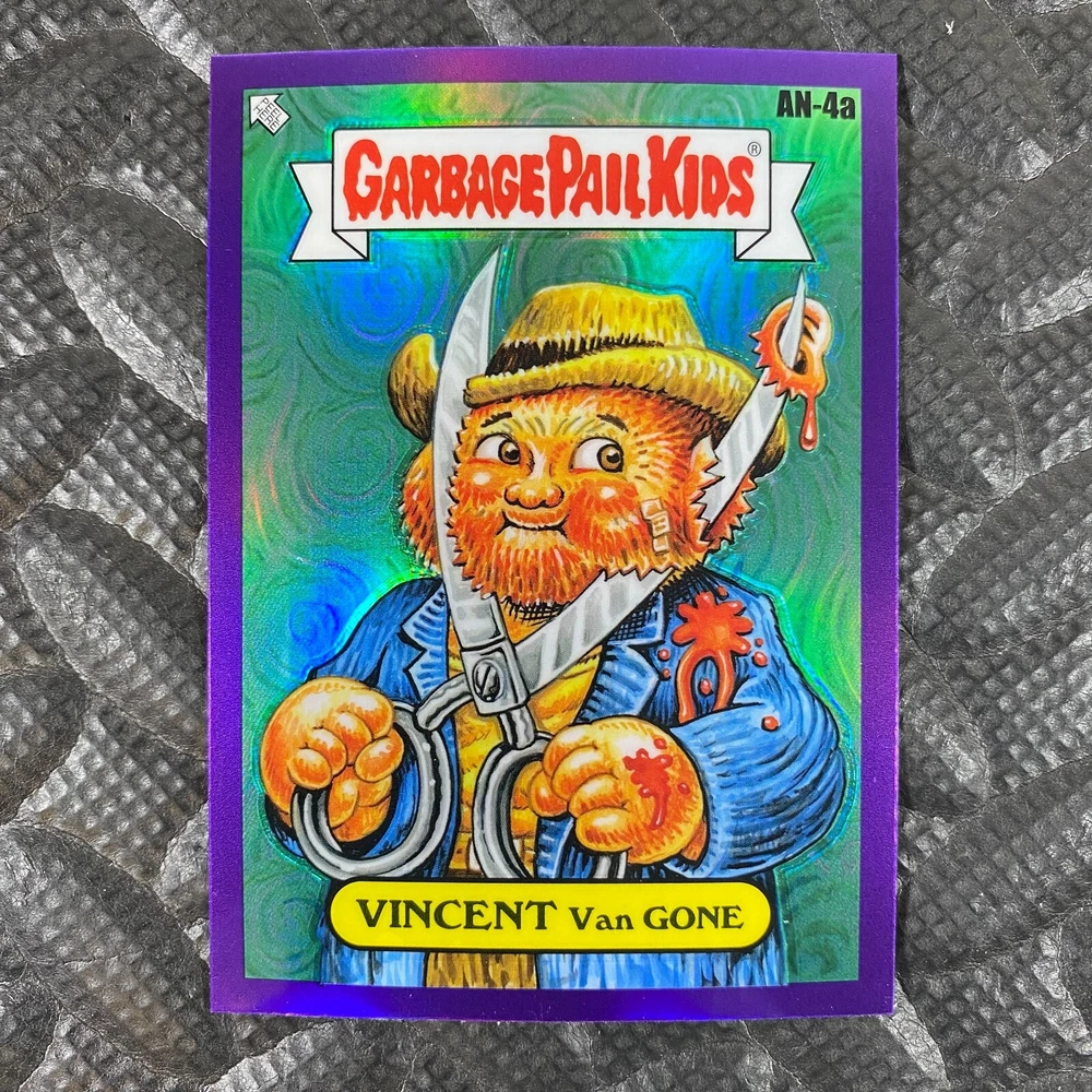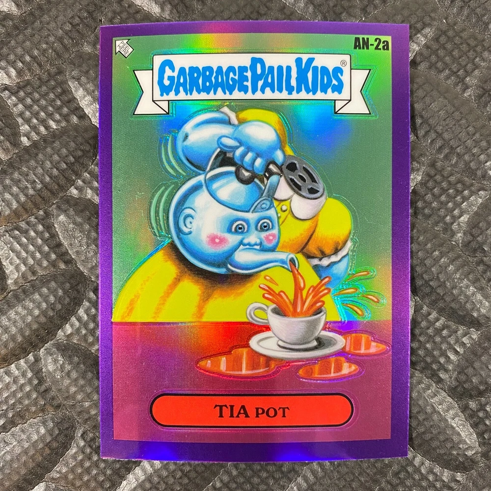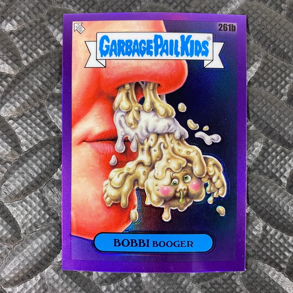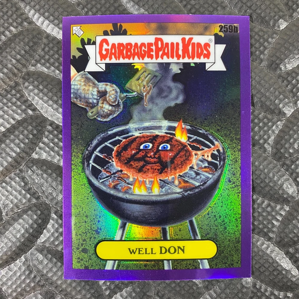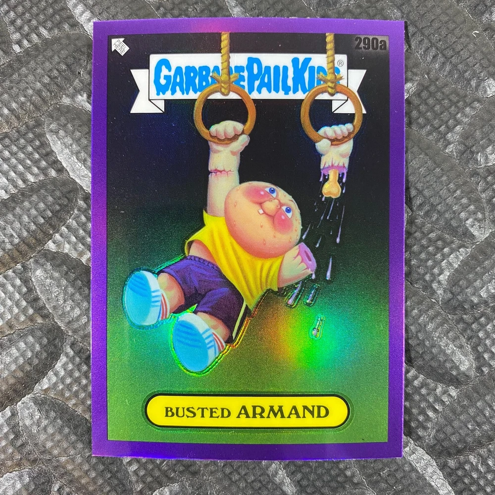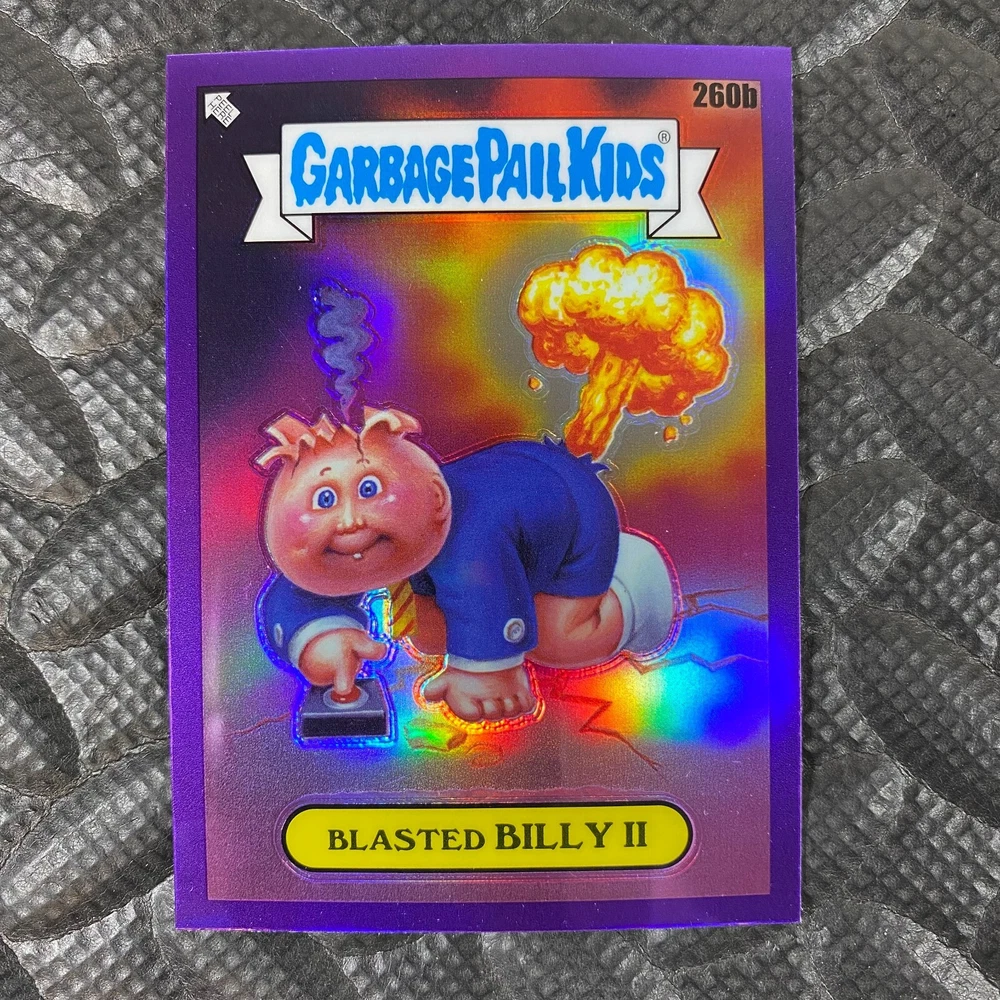 This listing is for your choice of any available 2025 Topps Garbage Pail Kids "Chrome 7" Purple Refractor card from the drop-down menu above. Check out my other listings for more single parallels from this same set. Any questions? Please ask before buying. As with all of my "pick-a-card" listings, I will be shipping with "eBay Standard Envelope". The rules of this envelope state that it cannot be too thick, so please expect your order to be packaged as follows: 1 to 6 cards will be slid into a single sleeve, the sleeve will then be slid inside of a semi-rigid Card-Saver. 7 to 12 cards will be slid into a double sleeve, 13 to 18 cards into a triple sleeve, 19 to 24 cards into a quadruple sleeve(up to six cards per sleeve). The double, triple and quadruple sleeve shipping will not have the Card-Saver. If you buy more than 1 card and want it packaged with more than 1 Card-Saver(or 1 sleeve per card), I kindly ask that you contact me before purchasing to be sure that this is possible to have it done with the stated shipping charge, or if additional shipping would be required. If you do not contact me, then you can expect to receive your order packaged as I have explained here. Please do not expect rigid top-loaders to be included, I don't normally keep a lot of them in stock, but if you message me prior to ordering I will be able to see if I have any that can be included with your order - additional shipping may be required. In order to get free combined shipping from this and any of my other "pick-a-card" listings, you must add all of your cards to the cart and check out when you are done shopping. If you do not use the cart you will be overpaying on shipping and I cannot refund you on over-payed shipping. So please use the cart and get your FREE COMBINED SHIPPING!