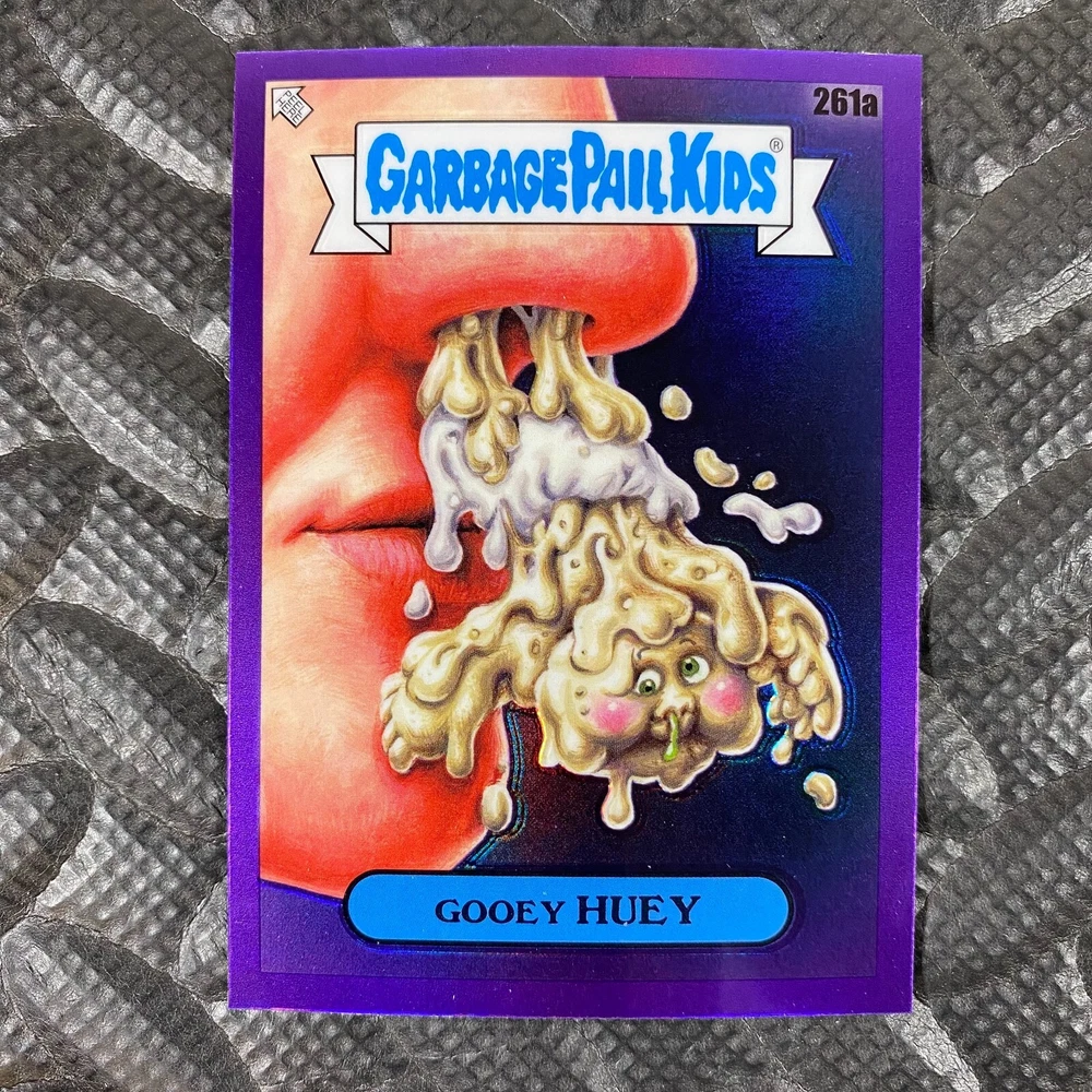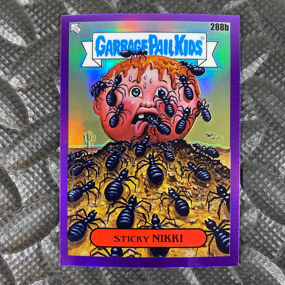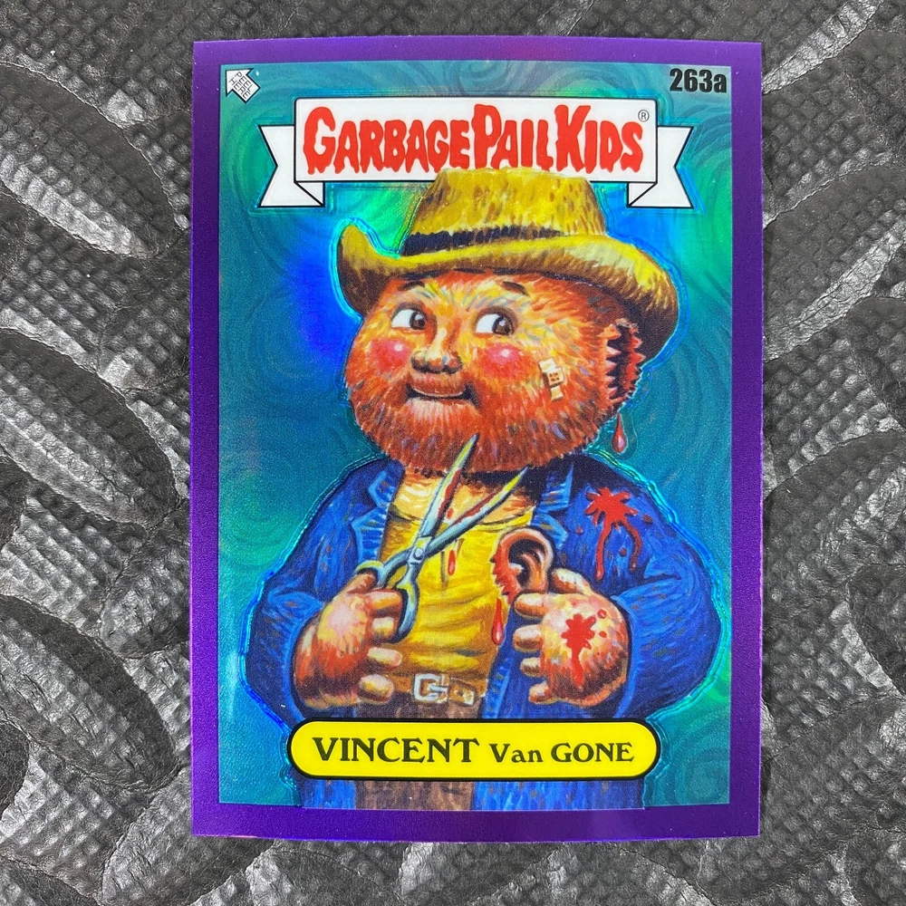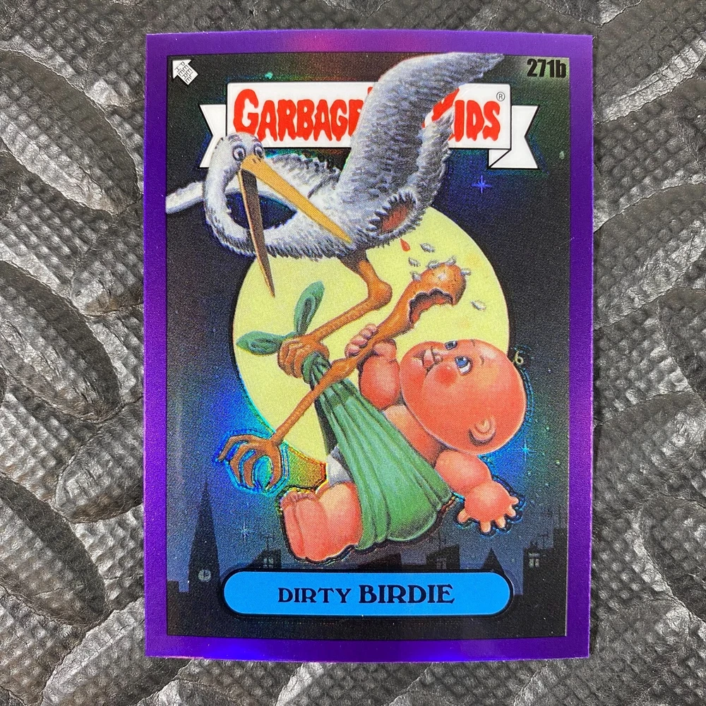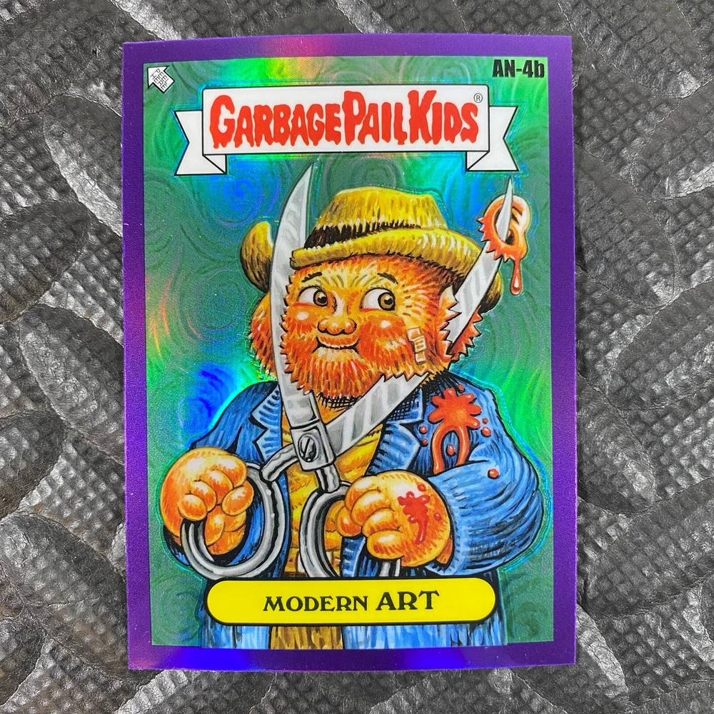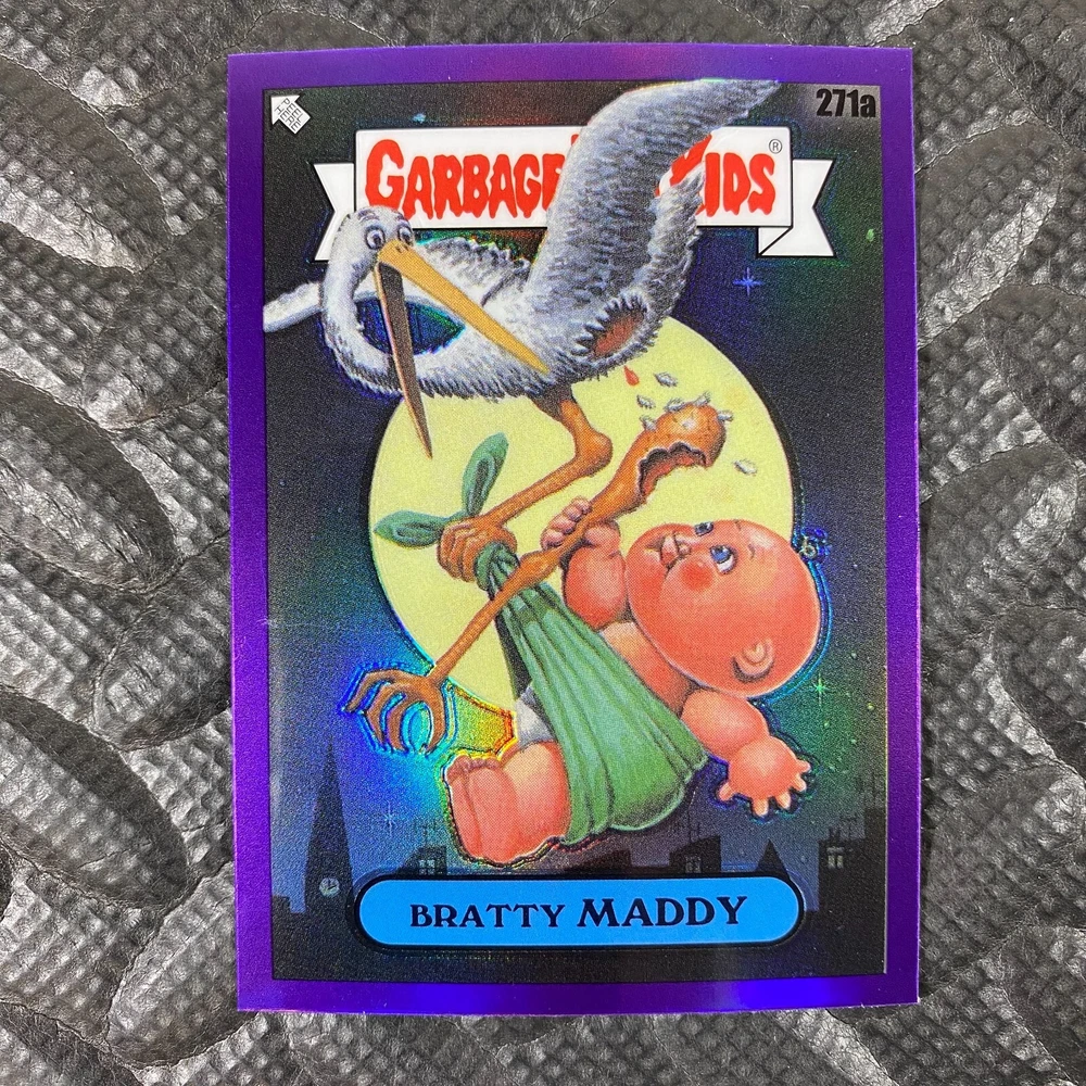 This listing is for your choice of any available 2025 Topps Garbage Pail Kids "Chrome 7" Purple Refractor card from the drop-down menu above. Check out my other listings for more single parallels from this same set. Any questions? Please ask before buying. As with all of my "pick-a-card" listings, I will be shipping with "eBay Standard Envelope". The rules of this envelope state that it cannot be too thick, so please expect your order to be packaged as follows: 1 to 6 cards will be slid into a single sleeve, the sleeve will then be slid inside of a semi-rigid Card-Saver. 7 to 12 cards will be slid into a double sleeve, 13 to 18 cards into a triple sleeve, 19 to 24 cards into a quadruple sleeve(up to six cards per sleeve). The double, triple and quadruple sleeve shipping will not have the Card-Saver. If you buy more than 1 card and want it packaged with more than 1 Card-Saver(or 1 sleeve per card), I kindly ask that you contact me before purchasing to be sure that this is possible to have it done with the stated shipping charge, or if additional shipping would be required. If you do not contact me, then you can expect to receive your order packaged as I have explained here. Please do not expect rigid top-loaders to be included, I don't normally keep a lot of them in stock, but if you message me prior to ordering I will be able to see if I have any that can be included with your order - additional shipping may be required. In order to get free combined shipping from this and any of my other "pick-a-card" listings, you must add all of your cards to the cart and check out when you are done shopping. If you do not use the cart you will be overpaying on shipping and I cannot refund you on over-payed shipping. So please use the cart and get your FREE COMBINED SHIPPING!
