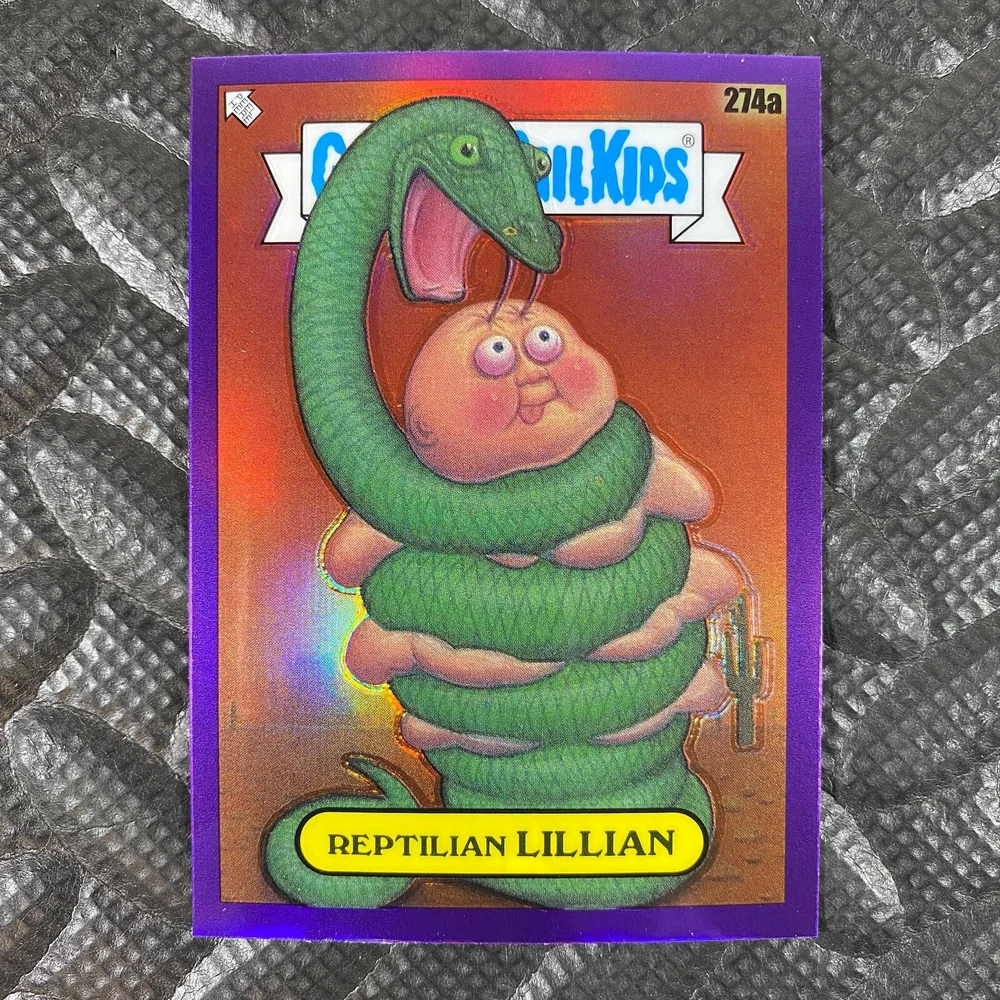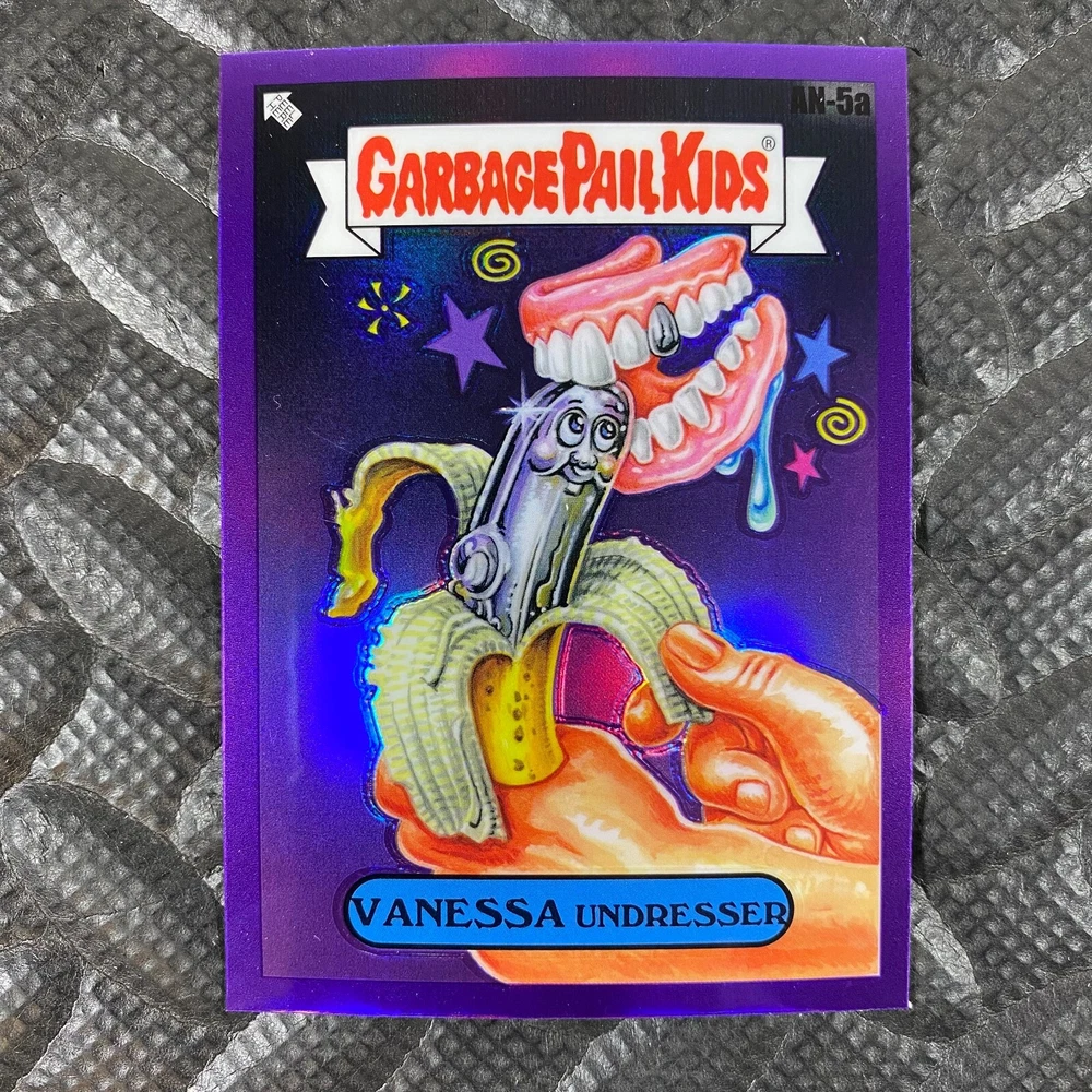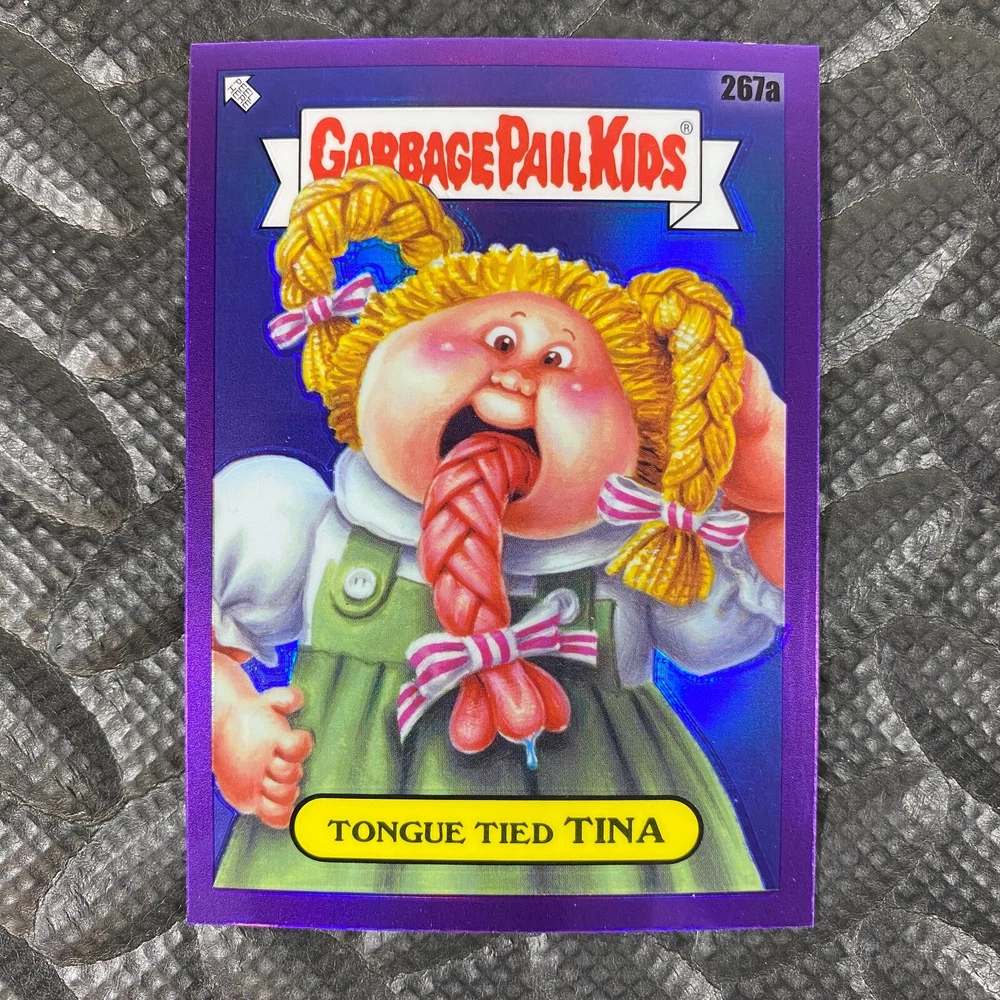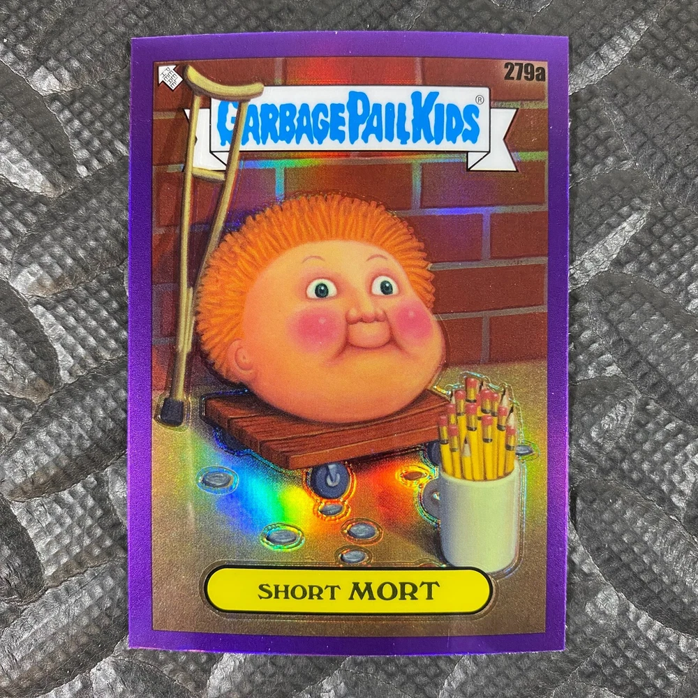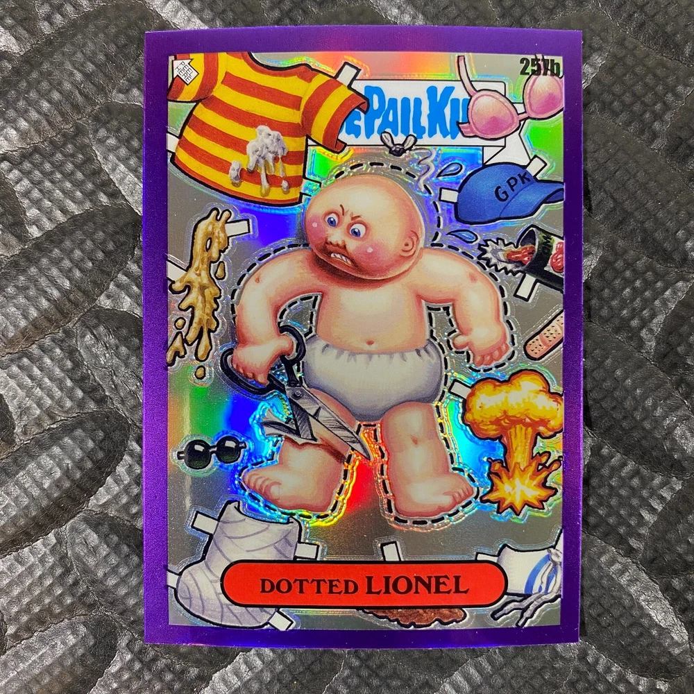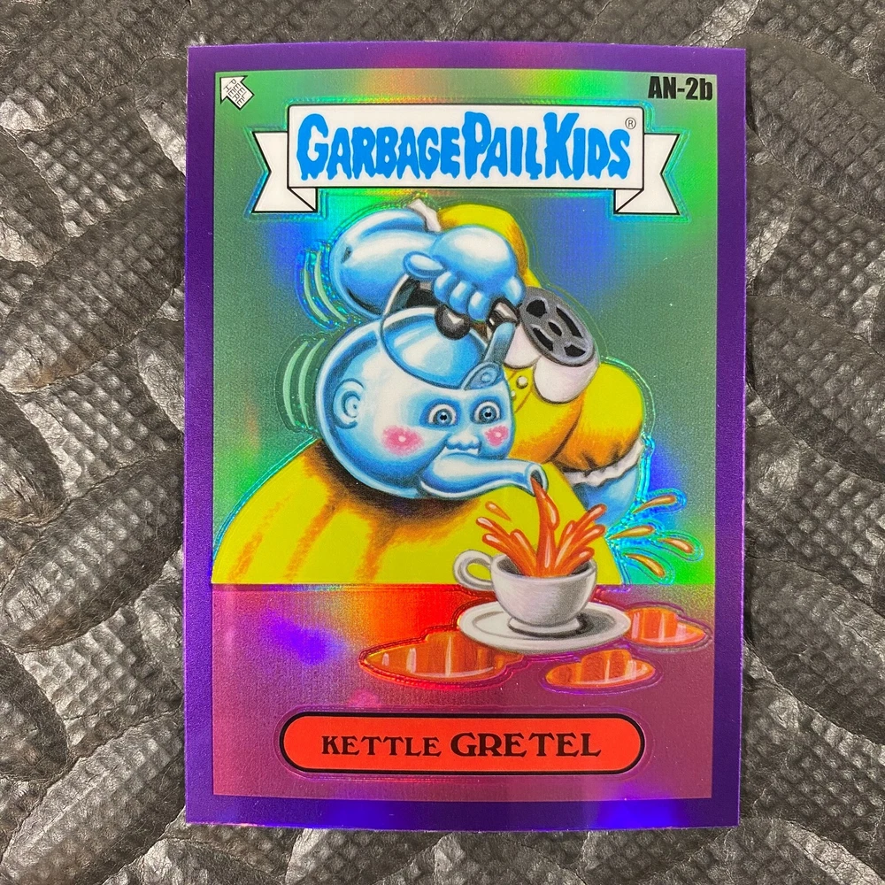 This listing is for your choice of any available 2025 Topps Garbage Pail Kids "Chrome 7" Purple Refractor card from the drop-down menu above. Check out my other listings for more single parallels from this same set. Any questions? Please ask before buying. As with all of my "pick-a-card" listings, I will be shipping with "eBay Standard Envelope". The rules of this envelope state that it cannot be too thick, so please expect your order to be packaged as follows: 1 to 6 cards will be slid into a single sleeve, the sleeve will then be slid inside of a semi-rigid Card-Saver. 7 to 12 cards will be slid into a double sleeve, 13 to 18 cards into a triple sleeve, 19 to 24 cards into a quadruple sleeve(up to six cards per sleeve). The double, triple and quadruple sleeve shipping will not have the Card-Saver. If you buy more than 1 card and want it packaged with more than 1 Card-Saver(or 1 sleeve per card), I kindly ask that you contact me before purchasing to be sure that this is possible to have it done with the stated shipping charge, or if additional shipping would be required. If you do not contact me, then you can expect to receive your order packaged as I have explained here. Please do not expect rigid top-loaders to be included, I don't normally keep a lot of them in stock, but if you message me prior to ordering I will be able to see if I have any that can be included with your order - additional shipping may be required. In order to get free combined shipping from this and any of my other "pick-a-card" listings, you must add all of your cards to the cart and check out when you are done shopping. If you do not use the cart you will be overpaying on shipping and I cannot refund you on over-payed shipping. So please use the cart and get your FREE COMBINED SHIPPING!