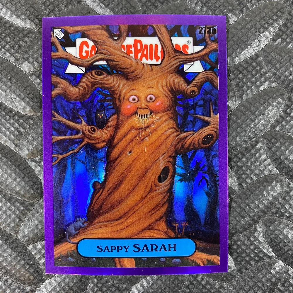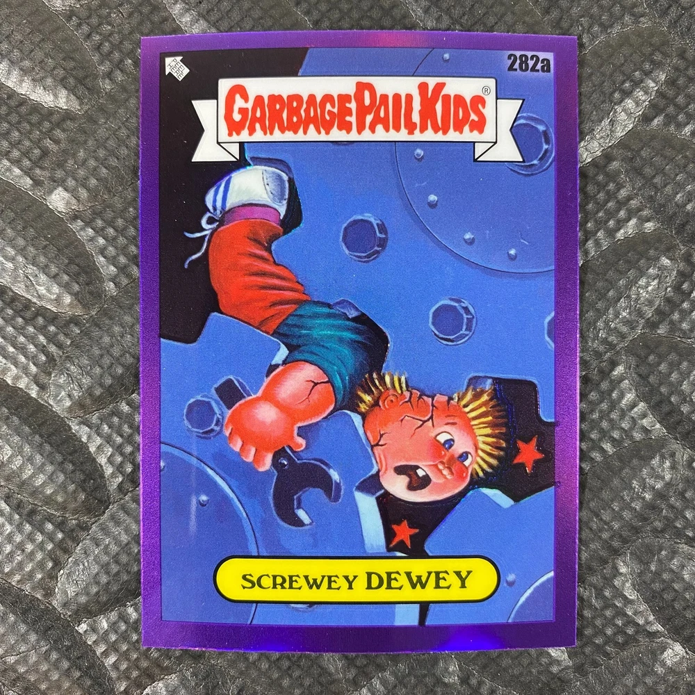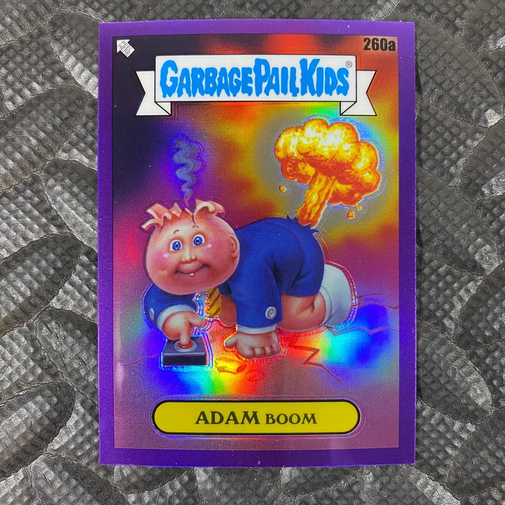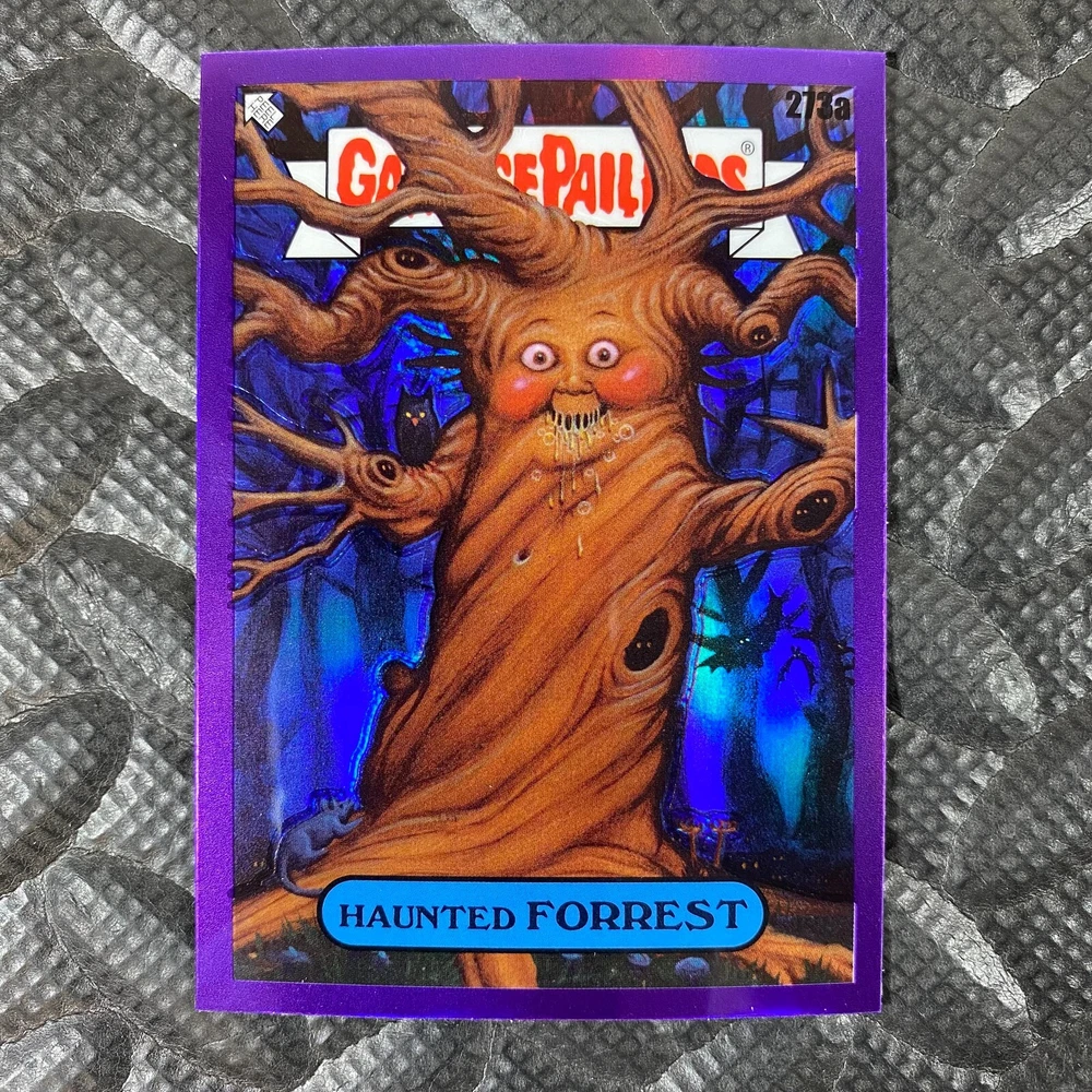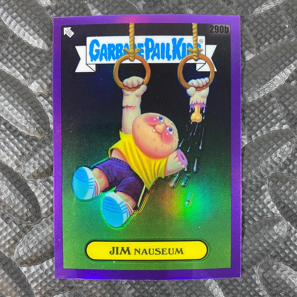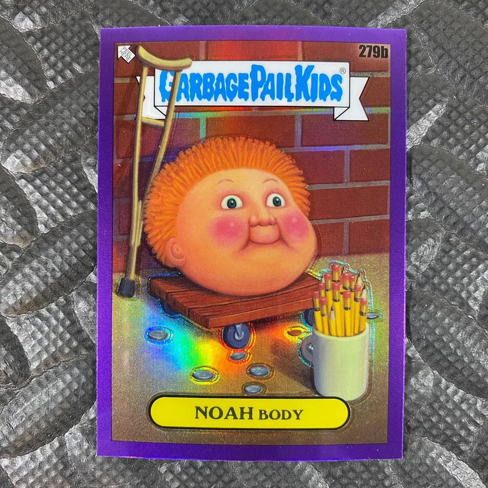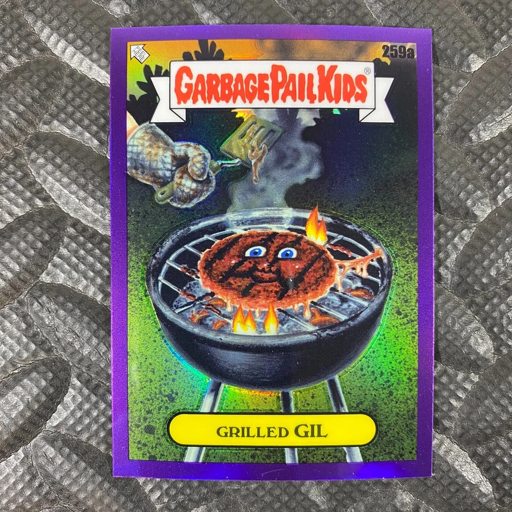 This listing is for your choice of any available 2025 Topps Garbage Pail Kids "Chrome 7" Purple Refractor card from the drop-down menu above. Check out my other listings for more single parallels from this same set. Any questions? Please ask before buying. As with all of my "pick-a-card" listings, I will be shipping with "eBay Standard Envelope". The rules of this envelope state that it cannot be too thick, so please expect your order to be packaged as follows: 1 to 6 cards will be slid into a single sleeve, the sleeve will then be slid inside of a semi-rigid Card-Saver. 7 to 12 cards will be slid into a double sleeve, 13 to 18 cards into a triple sleeve, 19 to 24 cards into a quadruple sleeve(up to six cards per sleeve). The double, triple and quadruple sleeve shipping will not have the Card-Saver. If you buy more than 1 card and want it packaged with more than 1 Card-Saver(or 1 sleeve per card), I kindly ask that you contact me before purchasing to be sure that this is possible to have it done with the stated shipping charge, or if additional shipping would be required. If you do not contact me, then you can expect to receive your order packaged as I have explained here. Please do not expect rigid top-loaders to be included, I don't normally keep a lot of them in stock, but if you message me prior to ordering I will be able to see if I have any that can be included with your order - additional shipping may be required. In order to get free combined shipping from this and any of my other "pick-a-card" listings, you must add all of your cards to the cart and check out when you are done shopping. If you do not use the cart you will be overpaying on shipping and I cannot refund you on over-payed shipping. So please use the cart and get your FREE COMBINED SHIPPING!