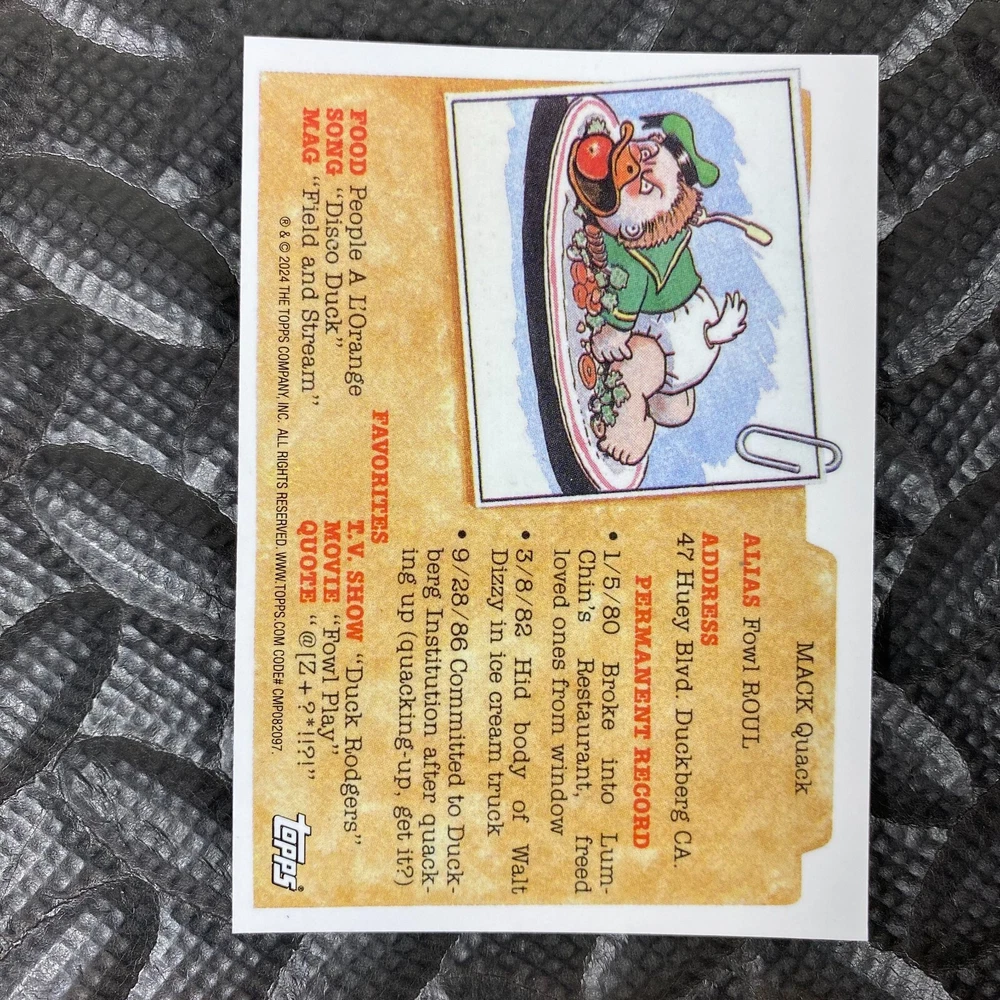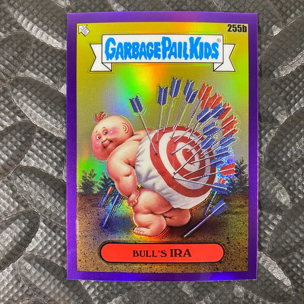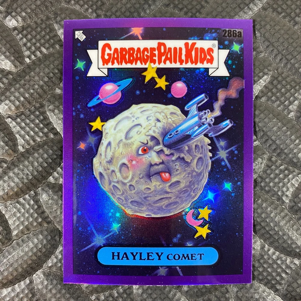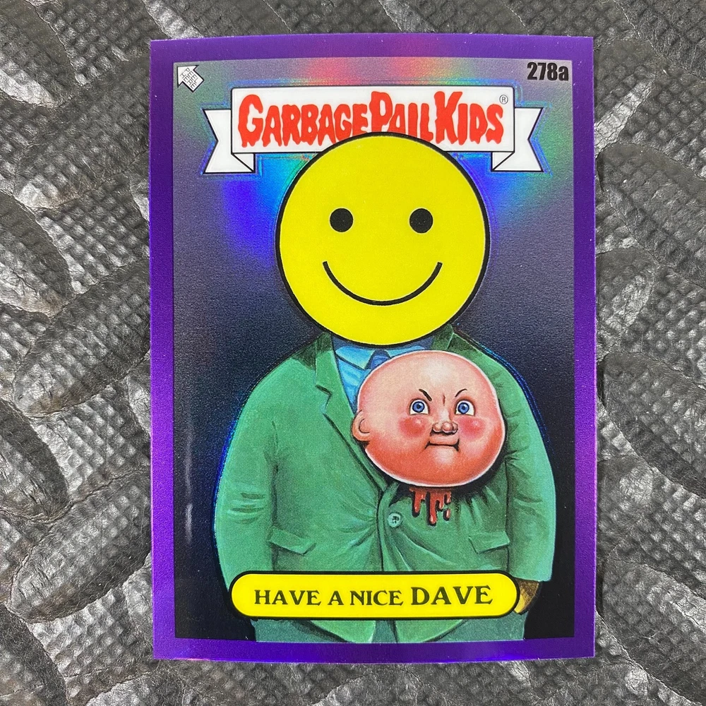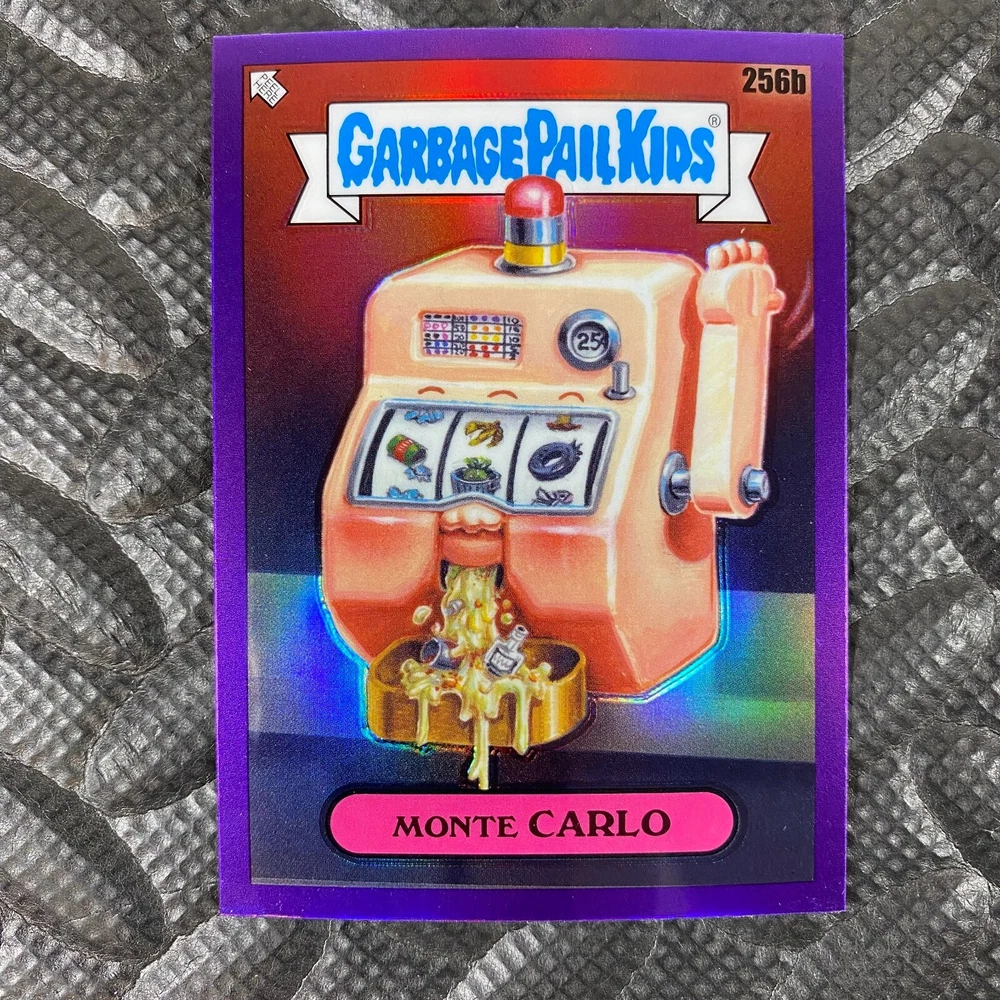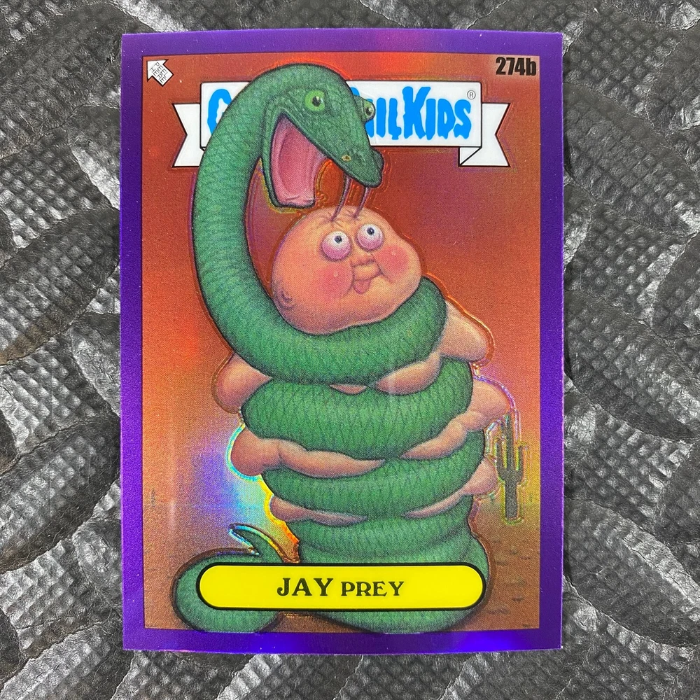 This listing is for your choice of any available 2025 Topps Garbage Pail Kids "Chrome 7" Purple Refractor card from the drop-down menu above. Check out my other listings for more single parallels from this same set. Any questions? Please ask before buying. As with all of my "pick-a-card" listings, I will be shipping with "eBay Standard Envelope". The rules of this envelope state that it cannot be too thick, so please expect your order to be packaged as follows: 1 to 6 cards will be slid into a single sleeve, the sleeve will then be slid inside of a semi-rigid Card-Saver. 7 to 12 cards will be slid into a double sleeve, 13 to 18 cards into a triple sleeve, 19 to 24 cards into a quadruple sleeve(up to six cards per sleeve). The double, triple and quadruple sleeve shipping will not have the Card-Saver. If you buy more than 1 card and want it packaged with more than 1 Card-Saver(or 1 sleeve per card), I kindly ask that you contact me before purchasing to be sure that this is possible to have it done with the stated shipping charge, or if additional shipping would be required. If you do not contact me, then you can expect to receive your order packaged as I have explained here. Please do not expect rigid top-loaders to be included, I don't normally keep a lot of them in stock, but if you message me prior to ordering I will be able to see if I have any that can be included with your order - additional shipping may be required. In order to get free combined shipping from this and any of my other "pick-a-card" listings, you must add all of your cards to the cart and check out when you are done shopping. If you do not use the cart you will be overpaying on shipping and I cannot refund you on over-payed shipping. So please use the cart and get your FREE COMBINED SHIPPING!