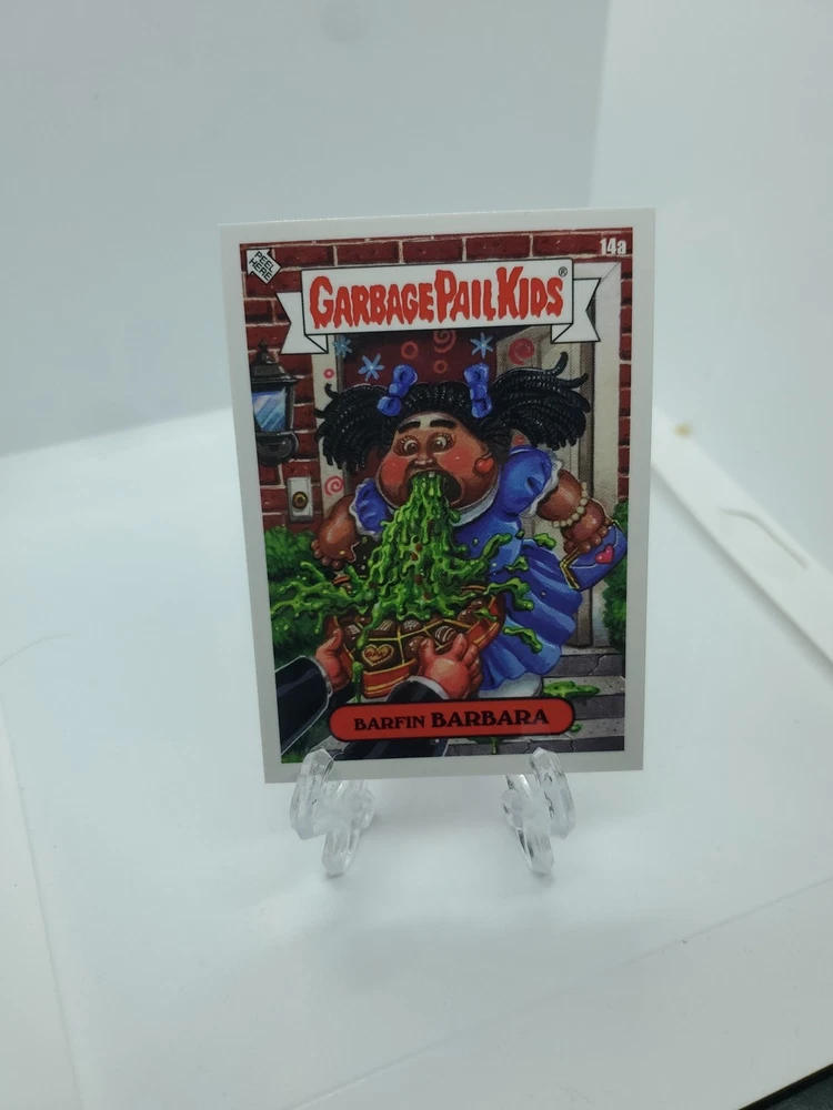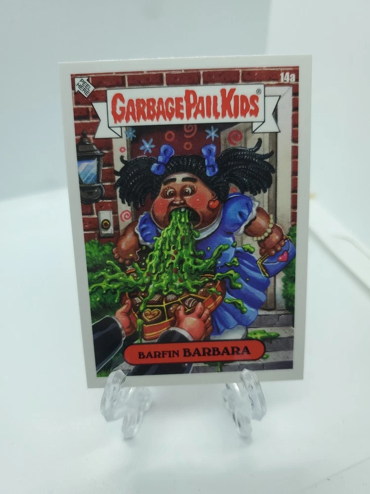 The Garbage Pail Kids 2025 GBK Valentines Day 14a Barfin Barbara trading card is part of the Garbage Pail Kids franchise manufactured by Topps in English. Released in 2025, this non-sport trading card features the character Barfin Barbara, known for its quirky and humorous design typical of the Garbage Pail Kids series. Collectors and fans of the franchise may find this card a valuable addition to their collection due to its limited release and thematic tie to Valentine's Day.