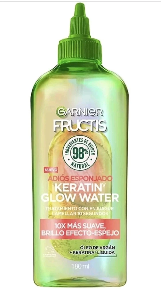 GARNIER FRUCTIS KERATIN GLOW WATER/ADIOS ESPONJADO/180ML/ANTI FRIZZ/6OZ