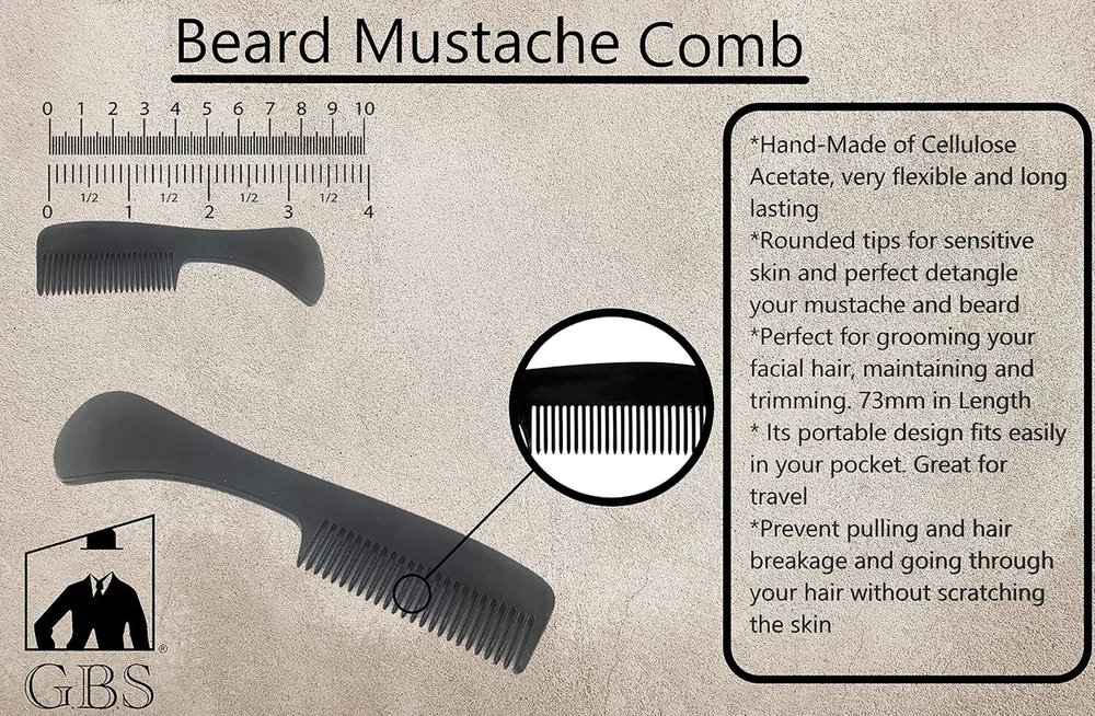G.B.S Beard Mustache Comb MCB 3 Pack-Extra Small. Unbreakable Fine Toothed, Beard and Moustache Combs for Facial Hair Grooming. Hand Polished Cellulose Acetate Gentle: Flexible Pocket Size
