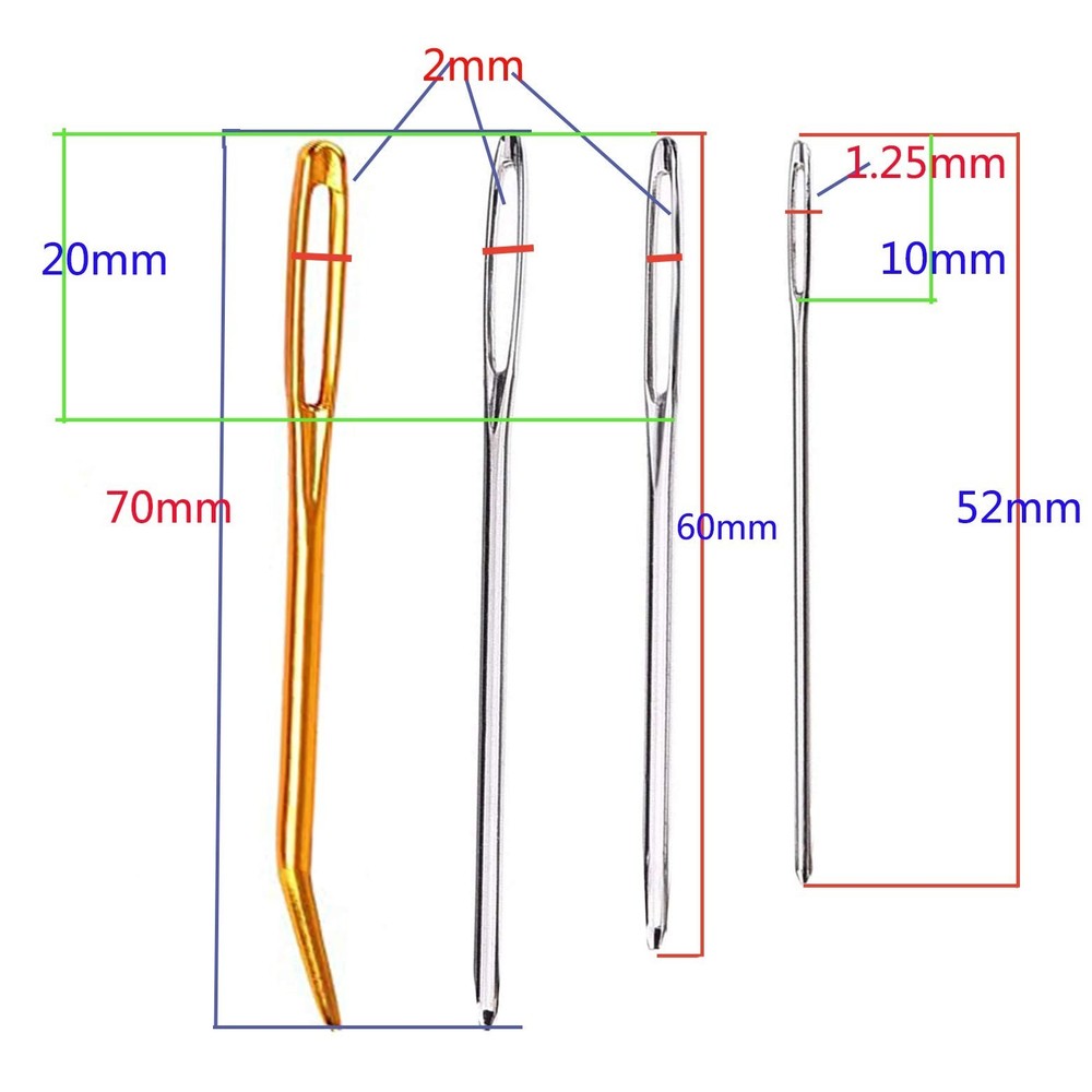 GCIYAEN Large Eye Sewing Knitting Needles Blunt Yarn Needles Leather Needles Embroidery Needles Bent Wool Tapestry Needles (12PCS Blunt+4PCS Bent) Product Details Size: 12PCS Blunt+4PCS Bent Brand: GCIYAEN MPN: GCIYAEN006 UPC: 617395728725 EAN: 0617395728725 Material: Metal Brand: GCIYAEN Point Type: Blunt UPC Manufacturer: GCIYAEN Package Dimensions: 3.15 x 2.44 x 0.63 inches Item model number: GCIYAEN006 Item Weight: 0.634 ounces Manufacturer: GCIYAEN Date First Available: November 19, 2020 Large eye blunt needles, The holes of these darning needles are big enough to thread thick yarns easily without getting stick.Color random. Application: these large eye needles can be applied for needlepoint, cross stitch and decorative stitching Suitable for weaving in ends and sewing up seams on your knit & crochet projects. Also can be used for repairing a jute rug or mend leather. IN the bottle convenient to store and keeping the needle secure and organize well. You dont need to worry about the finishing needles drop on the floor or lost in the corner. Curved tip - The bent needle is easier to hook under rather than the straight metal needles. Durable and lightweight. It's much easier to get in and around stitches to hide tails completely, saving you a lot of time. Product description Package includes: 1x Clear bottle 12 Pcs large-eye blunt needles: Diameter Length mm 1.2552mm X 4 pcs large-eye needles 2.060mm X 4 pcs large-eye needles 2.070mm X 4 pcs large-eye needles 15 Pcs large-eye blunt needles: Diameter Length 1.2552mm X 5 pcs large-eye needles 2.060mm X 5 pcs large-eye needles 2.070mm X 5 pcs large-eye needles 16 Pcs (12 pcs large-eye blunt needles +4 pcs large-eye bent needles): Diameter Length 1.2552mm X 4 pcs large-eye needles 2.060mm X 4 pcs large-eye needles 2.070mm X 4 pcs large-eye needles 2.070mm X 4 pcs large-eye bent needles Metal Large Eye Blunt Needle Feature: Curved tip - Easy to hook Blunt tip - Blunt design is safer Storage box - Transparent boxes for easy storage Large eyes - The thick thread can be easily threaded without sticking Delicate appearance will cater to craft lover' taste, an ideal gift to friends, family and people who like DIY, it work well in the sewing knitting yarn needlework, crafts and most hand-made woolen goods. Warning : Please keep it away from your children and pets.