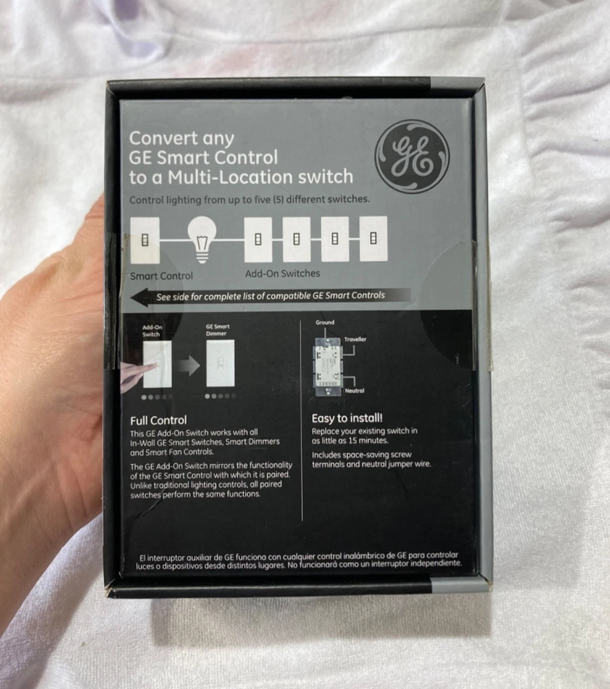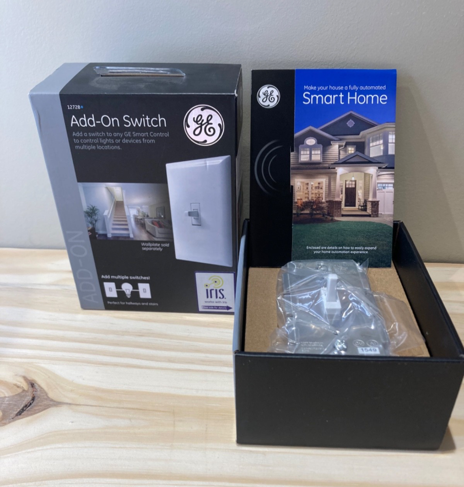 GE #12728 Add-On Switch Toggle - for any GE Smart Control **Requires an in-wall GE Smart Control (sold separately) Compatible with IRIS Requires in-wall installation with hard-wired connections. 120VAC Works with: -LED Bulbs -CFL Bulbs -Halogen and Incandescent Bulbs -Fans -Pumps