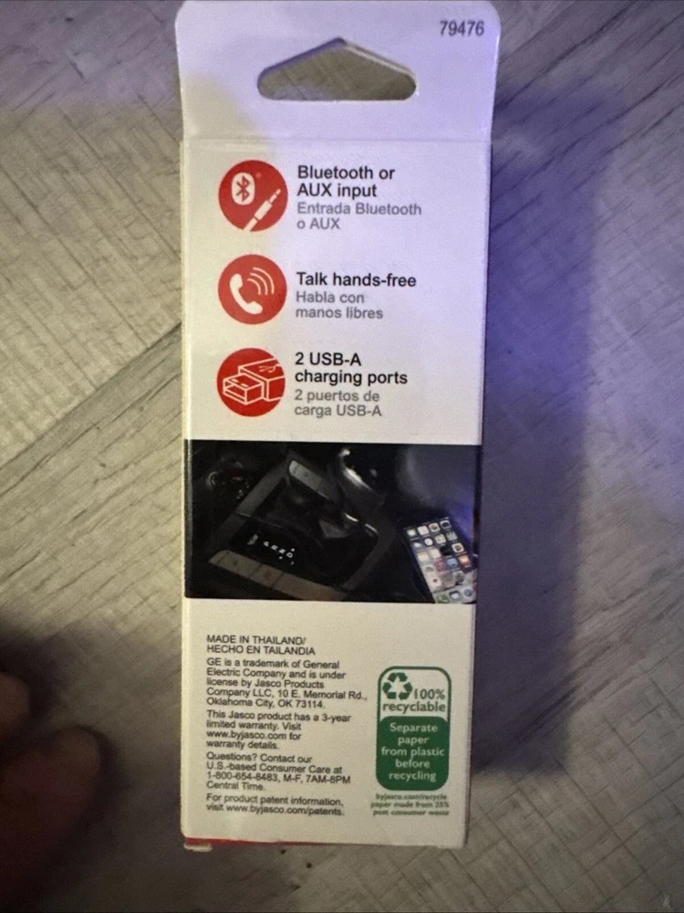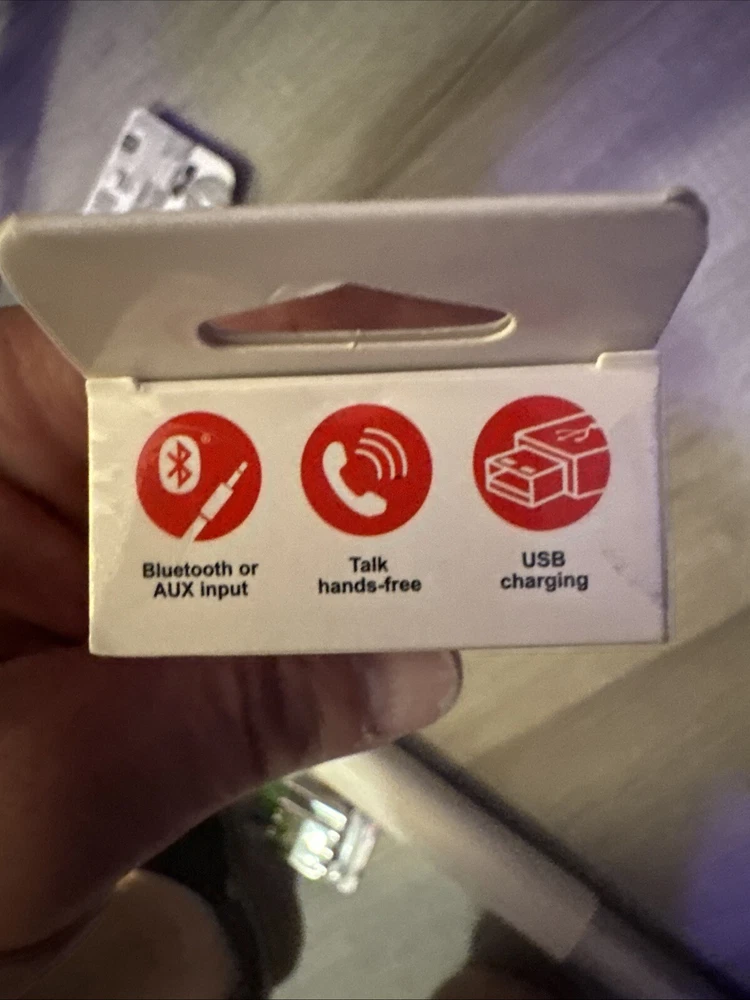 Enhance your car's audio experience with this GE Bluetooth FM Transmitter. With its Bluetooth Wireless output connection and USB audio inputs, you can easily connect your devices and enjoy hands-free calling and station presets. This universal compatible product is perfect for anyone who wants to upgrade their car's audio system. The black color and sleek design of this Bluetooth Transmitter make it a stylish addition to your car. It has one output and two inputs, and is compatible with various models. The GE brand ensures quality and durability, while the station presets and charging capability make it a convenient option for any driver. Get this Bluetooth FM Transmitter today and enjoy a seamless audio experience while on the go. Got as a gift already have a couple transmitters don’t need. Up for grabs.