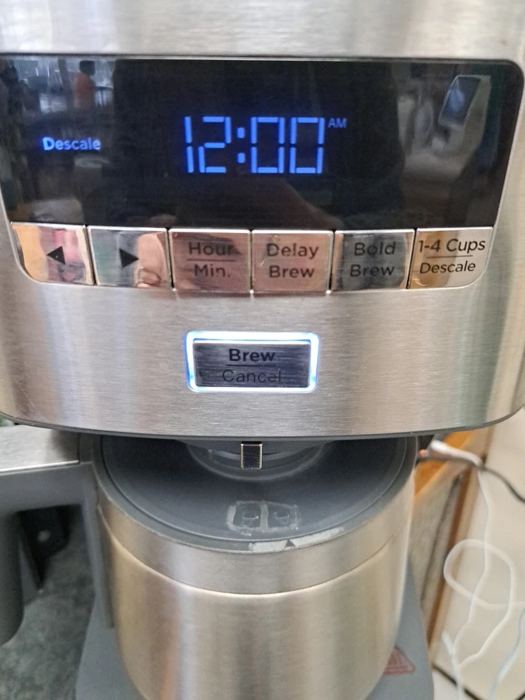 The GE Drip Coffee Maker with Thermal Carafe is a stylish and efficient coffee machine that allows you to brew up to 10 cups of delicious ground coffee. With its stainless steel construction and shiny silver finish, this filter coffee machine adds a sleek touch to any kitchen. The digital control panel makes it easy to use, and the included coffee filters ensure a convenient brewing experience. Powered by a 1500W wall plug-in, this GE coffee maker is perfect for making your morning or afternoon cup of drip coffee with ease.