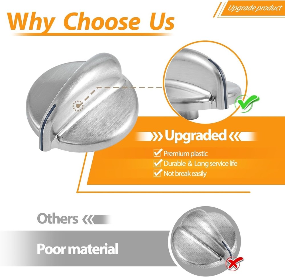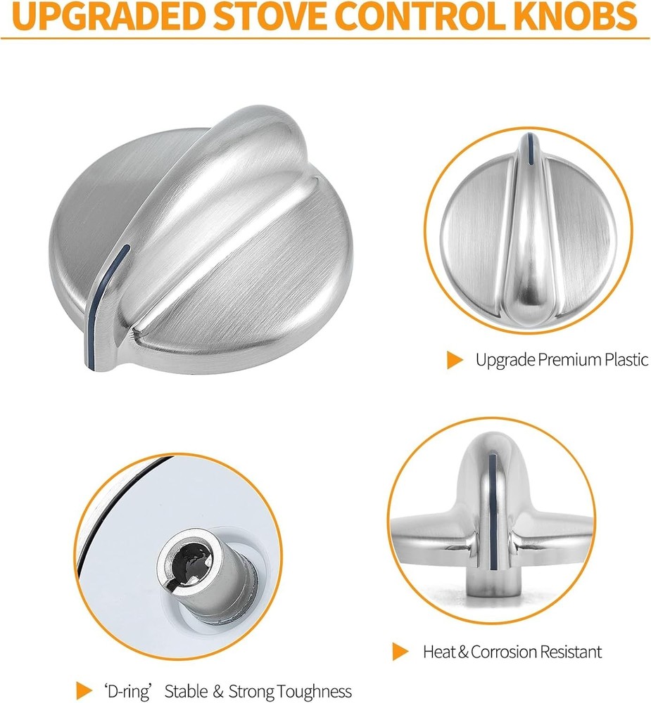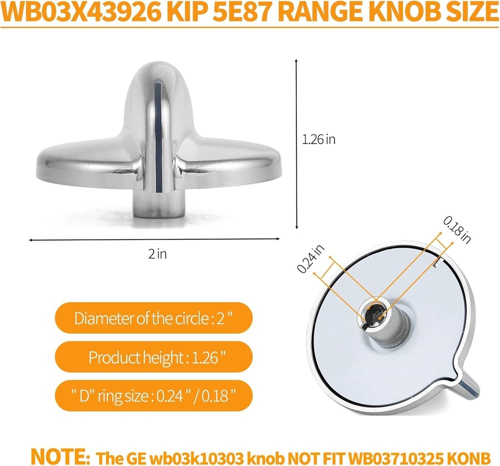 About this item 【UPGRADE DURABLE CONSTRUCTION】The ge profile stove knobs 183d8269 kip 5e87 are made of upgrade premium plastic that stronger and more sturdy than others, not easy to deform and rust/corrode, reduce ge range knob breakage. With proper maintenance, our ge gas stove parts burner knobs can last pretty long 【PACKAGE】5 Pcs silver plastic ge stove knobs replacement 【COMPATIBLE GE STOVE PARTS NUMBER】183D8269 KIP 5E87, WB03X43926, WB03K10303, WB03K10208, AP4980246, WB03K10136, WB03K10137, WB03K10135, WB03K10138 and more ge cooktop knobs. 【NOTE: The GE wb03k10303 knob NOT FIT WB03710325 KONB】 【Please see details page for more models, hold down ''CTRL'' + ''F" on your keyboard to find your model number to compare with our listing.】 【COMPATIBLE GE RANGE MODEL NUMBER】J2B912SEL1SS, JGBP86SEM1SS, JGBP88SEM1SS, JGBP89SEM1SS, PGB900SEM1SS, PGB908SEM1SS, PGB910SEM1SS, PGB916SEM1SS, PGB918SEM1SS, PGB928SEM1SS, PGB975SEM1SS, J2B918SEL1SS, JGB282EED1ES, JGB285SET1SS, JGB295SER1SS, JGB296SET1SS, JGB3001ER1SS, JGB300SEP1SS, JGB400SEP1SS, JGB428SER1SS, JGB500SEP1SS, JGB800SEP1SS, JGB805SEP1SS and more burner control knobs 【COMPATIBLE GE STOVE MODEL NUMBER】JGB918SEL1SS, JGB928SEL1SS, JGBP32SEN1SS, JGBP87SEM1SS, J2B918WEK1WW, J2B912BEK1BB, J2B915BEH1BB, J2B918BEK1BB, J2B918CEK4CC, J2B912WEK2WW, J2B915WEH2WW, J2B918WEK2WW, J2B912BEK2BB, J2B915BEH2BB, J2B918BEK2BB, J2B918CEK5CC, J2B912WEK3WW, J2B915WEH3WW, J2B918WEK3WW, J2B912BEK3BB, J2B915BEH3BB, J2B912CEK1CC, J2B915CEH1CC, J2B918BEK3BB, J2B918CEK1CC and more ge oven knobs 【EASY FOR INSTALLATION】The ge range stove knob is easy to install and use, without any tools, you can easily install the burner knobs and quickly get your stove burner back to work, saving your time and money 【NOTE】Please check and compare the dimensions of your ge oven knobs and look for the ge stove model number of your stove before place the order