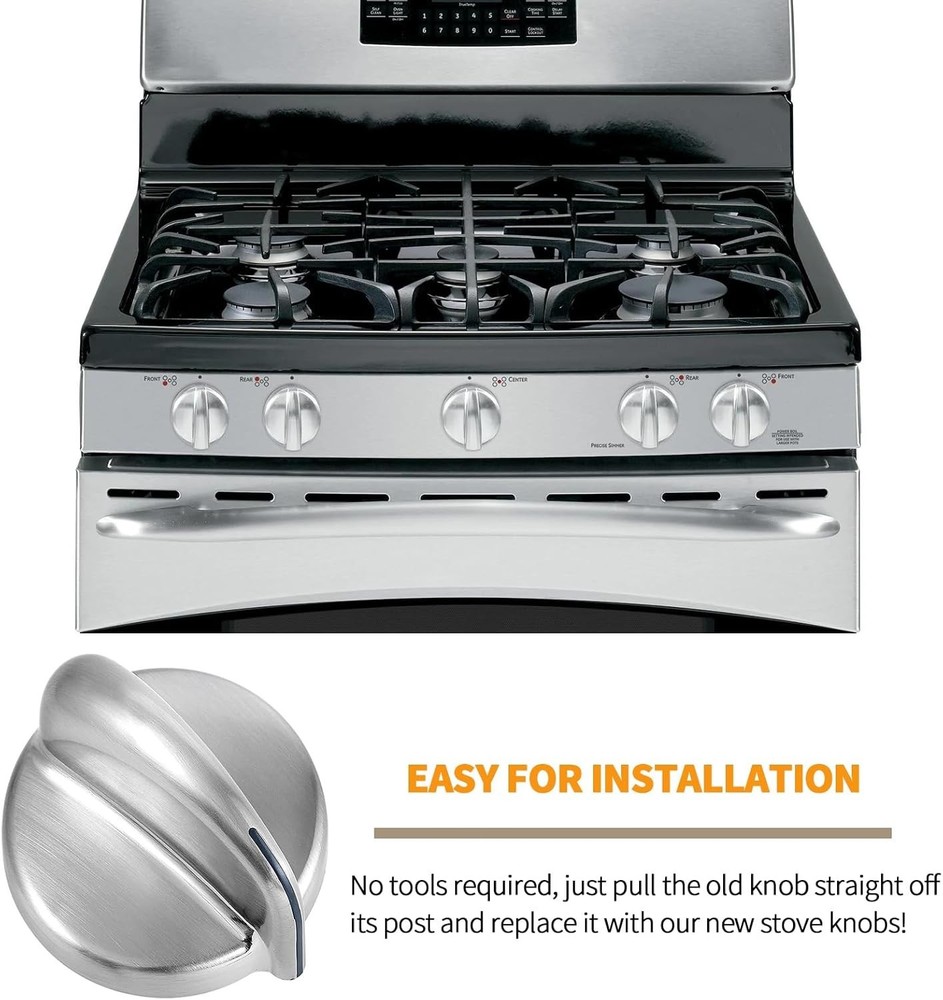 5 P Stainless Steel Look Control Knob Kits For GE Gas Range Stove WB03X24818*&&
