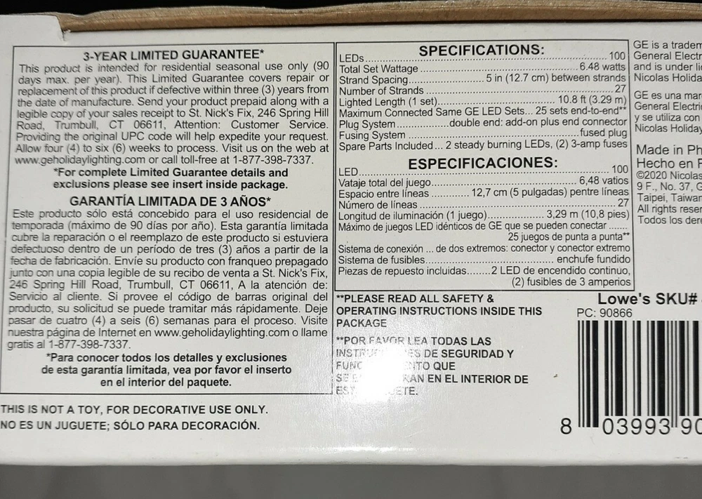 GE Staybright 100 LED ICICLE-STYLE LIGHTS, White Wire, New In Box. Condition is "New". Shipped with USPS Priority Mail. GE StayBright LED 100-count 5.5-MM warm white icicle light set with 3-in lead wire, 3-in bulb spacing, 5-in strand spacing, 3-in end connector plug, 10.8-ft lighted length, white cord with fused plug. Can connect up to 25 sets. ENERGY STAR rated. 100-Count GE StayBright LED warm white Christmas icicle lights White cord with 10.8-ft lighted length matches your Christmas decor and illuminates your home's interior or exterior Can connect with up to 25 sets to make decorating your home a breeze Replacement bulbs and fuses included for added convenience ENERGY STAR qualified products help you save money on utility bills without sacrificing performance, style or comfort UL safety listing demonstrates this product has met minimum requirements of widely accepted product safety standards