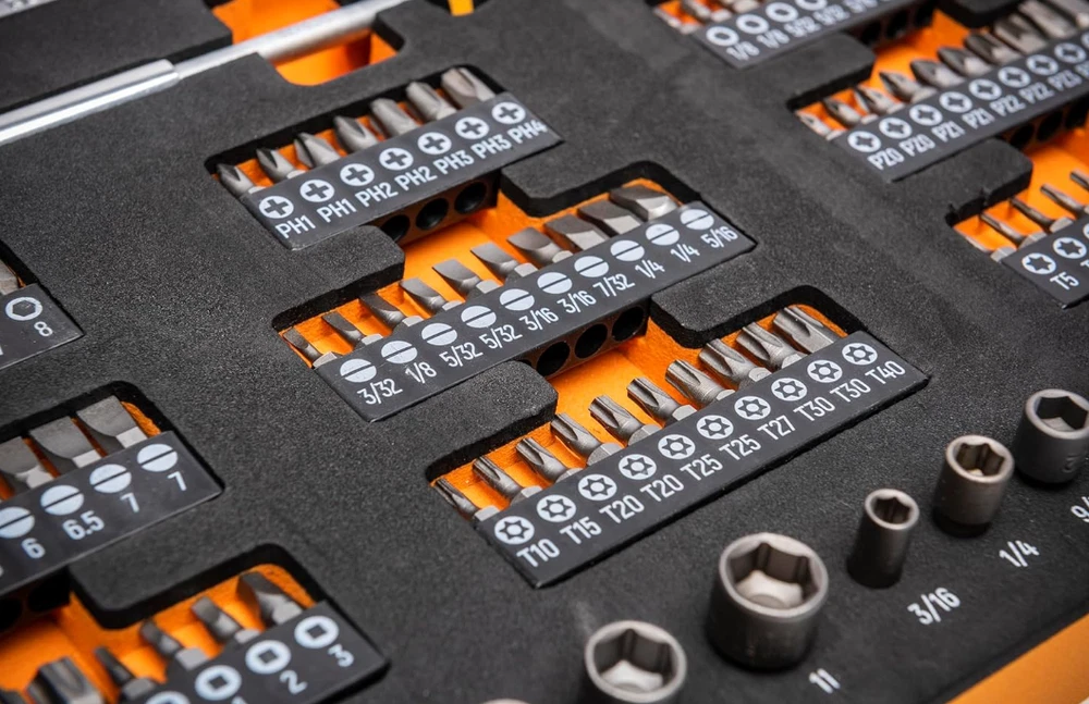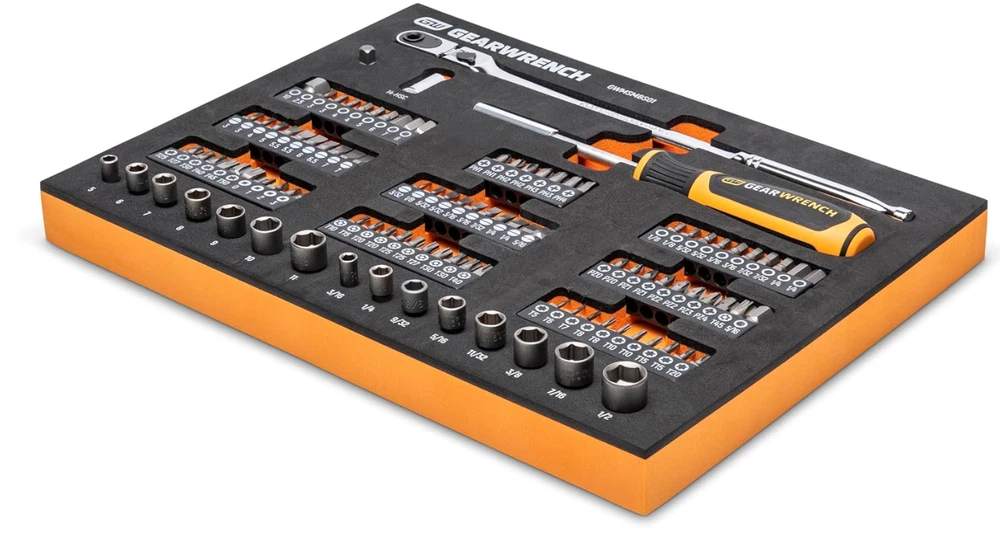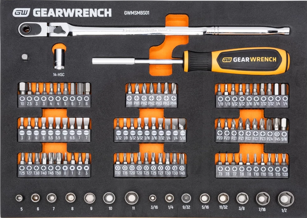 GEARWRENCH 105-Piece 1/4” Drive Slim Head Mechanics Tool Set in Foam Storage Tray 72-tooth ratchet turns fasteners with a 5°swing arc Multi-functional adapter head converts between bit driver and 1/4"" drive ratchet Locking flex-head has 9 positions for maximum access, with flush-mounted forward/reverse lever Slim line head design, 0.73” wide, 0.49” thick, for improved access Bits manufactured from S2 steel for strength and durability When you receive your order and have any queries or concerns about the product, feel free to message us. We guarantee 100% resolution for you. Our commitment is to provide high-quality products and exceptional customer service, ensuring your trust and satisfaction.