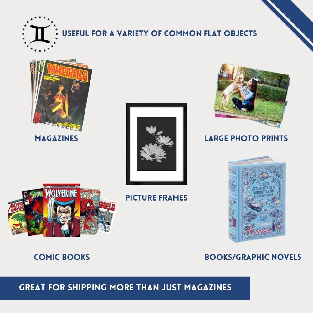 Feedback Add to Favorite Seller Join Mailing List CATEGORIES Contact Us Fast Delivery on all Orders 30 DAYS Return or Exchange Safe And Secure Payments Product information GEMINI Magazine Mailers - (Ships Large format Art Books & graphic novels ) Product Details: Easy-fold design secures and protects comics, magazines, and a variety of printed media. Lightweight, high-quality material resistant to impact from rough handling during transit. Holds up to 20 bagged & boarded comic books (with modifications) Holds up to 6 standard sized magazines Holds up to 400 pages of printed media Product Dimensions: Internal Dimensions - 11-1/8" x 8-5/8" x (up to 2") Scored for multiple depths at 1/2" increments Product Weight - 4 ounces Description The Magazine Mailer is a versatile shipping product designed for larger comic shipments, magazines, graphic novels and other printed materials. It features one piece constructions from high quality corrugated material to withstand rough handling during shipment. The easy-fold assembly allows for quick packing up to 20 bagged and boarded comic books (with void fill), 12 standard magazines, and a other printed materials. Each mailer is scored at half inch depth increments up to 2 inches to allow for a tight, secure package. Delivery Gemini Comic Supply strives to ship all orders within one business day. We currently ship via Ground services from one of our shipping centers throughout the continental United States and Canada; reducing transit times and shipping costs. Please be sure to purchase from the listing with the appropriate shipping location to ensure the best pricing available. Returns Returns are excepted on all of our products; however, due to the high cost of shipping, we encourage buyers to contact us with questions before purchase. About Us Gemini Comic Supply is a family-owned and operated business committed to serving the comic book retail industry by providing high quality, innovative shipping and storage supplies. Our products are designed to promote time and cost efficiency while supporting customer satisfaction through the secure shipment and storage of comic books and collectible media. We are dedicated to continuously improve our product selection to meet of needs of the comic collecting community. Join Our Exclusive Newsletter For Up To Date News, Special Offers And New Arrivals Sign up Now Shop Categories Quick Links Feedback Add to Favorite Seller Shop info Contact Us Get in touch with uS Payment info Copyright 2022 All Rights Reserved