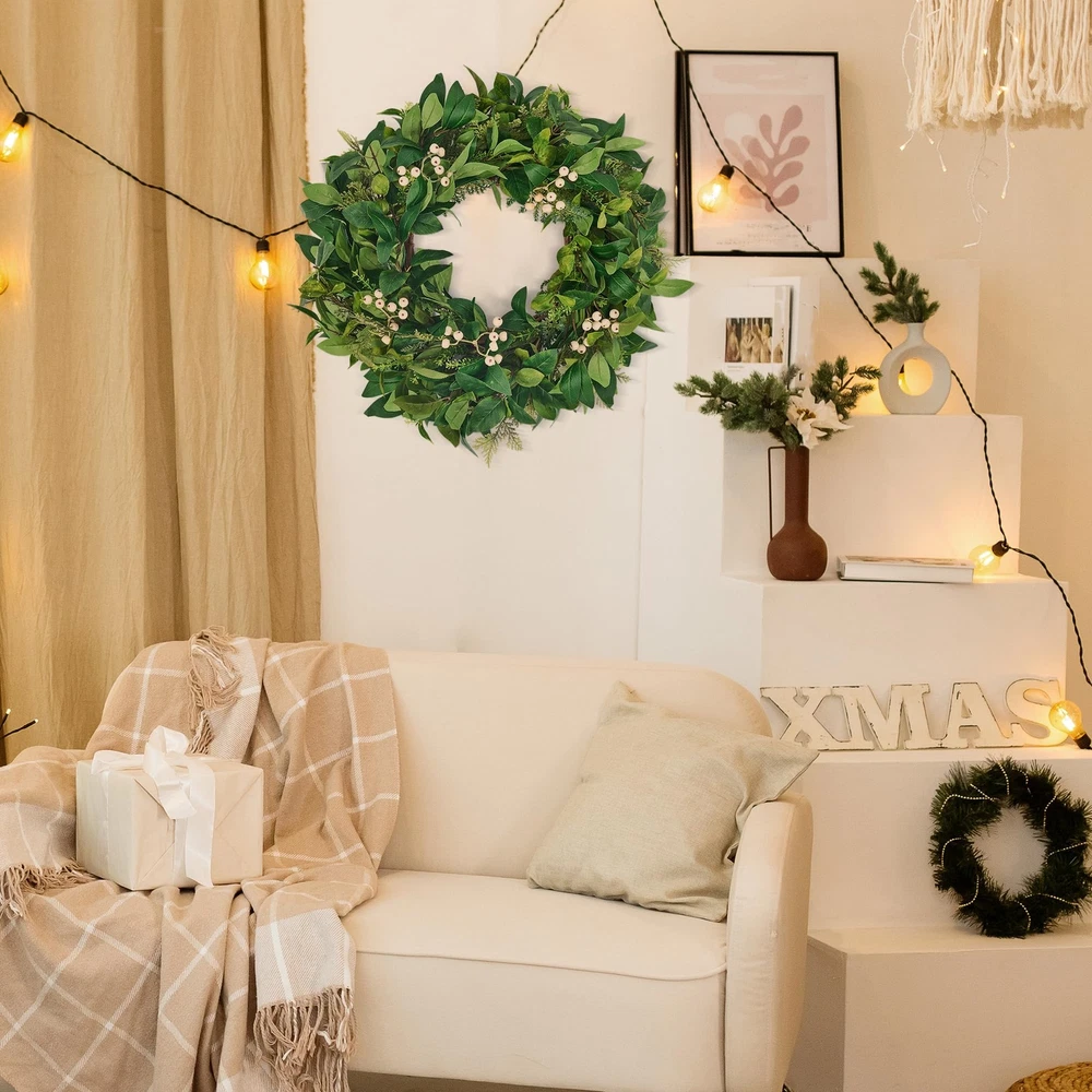 This wreath is absolutely stunning! The mix of cedar, cypress leaves, and white berries looks so lifelike and adds a fresh, natural vibe to any space. Perfect for year-round decor—I hung it on my front door and instantly got compliments. The quality is fantastic, with rich colors and a full, lush design. It’s lightweight yet durable, and the detailing makes it stand out. Whether for holidays or everyday charm, this wreath brings warmth and elegance to any setting. Highly recommend!