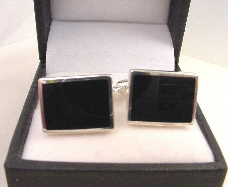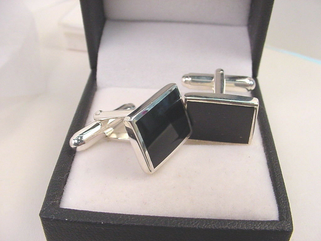 Solid Sterling Silver...marked as shown in photos with the 925 Silver content hallmark and a maker symbol hallmark Genuine Natural Black Onyx Gemstone Spring loaded flip lever closure mechanism Please ask any questions.... We'll try our best to answer promptly...