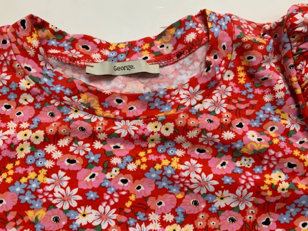 Gorgeous GEORGE PUFF SLEEVE TOP UK 10 red ditsy print casual Superb quality New bought and unworn See ruler images indicating pit to pit width and length from nape of neck under collar to front lower hem Shipped promptly within one working day of sale NOTE there is PREMIUM delivery available at an additional cost please select the upgraded postage on check out