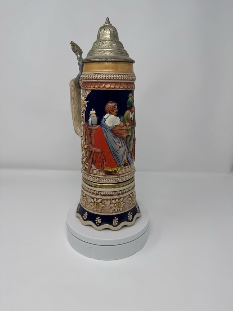 This German beer mug is a perfect addition to your collection. Featuring a musical movement, this mug is a great conversation starter. Made by Mapsa, this mug is designed with a lid to keep your beer fresh and delicious. The multicolor design of this mug makes it a great choice for those who love unique and eye-catching pieces. Its theme of music adds a touch of creativity and fun to your drinking experience. Whether you're a collector or just looking for a great beer mug to enjoy your favorite brew, this is the perfect choice for you.