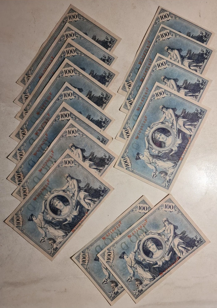 Germany. 1908 100 Mark. Lot of 14 Banknotes. P-33a. Shipping by registered mail 7$.
