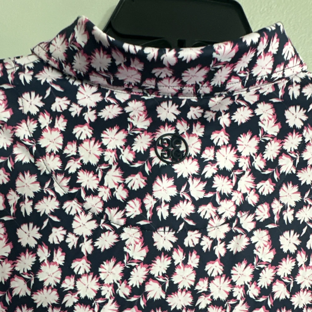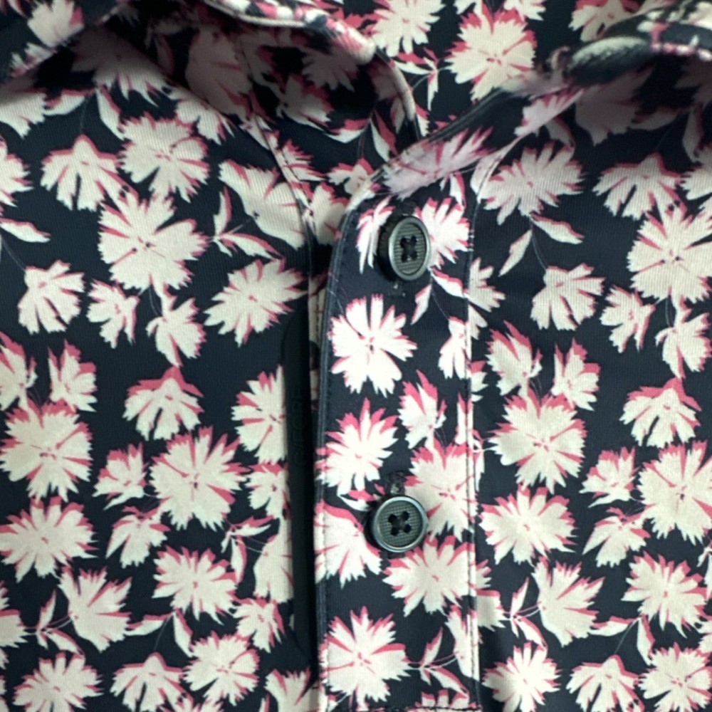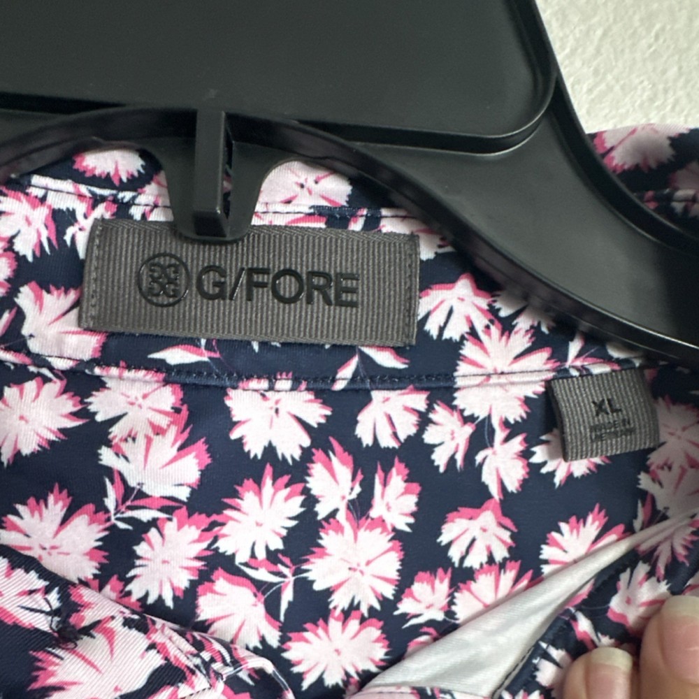 G/FORE XL Golf Polo Shirt Men's Navy Pink White Floral Short Sleeve Logo