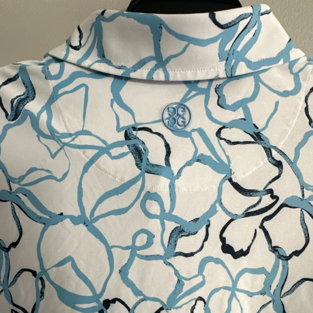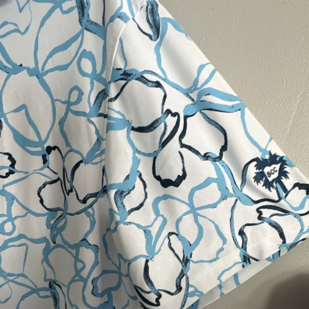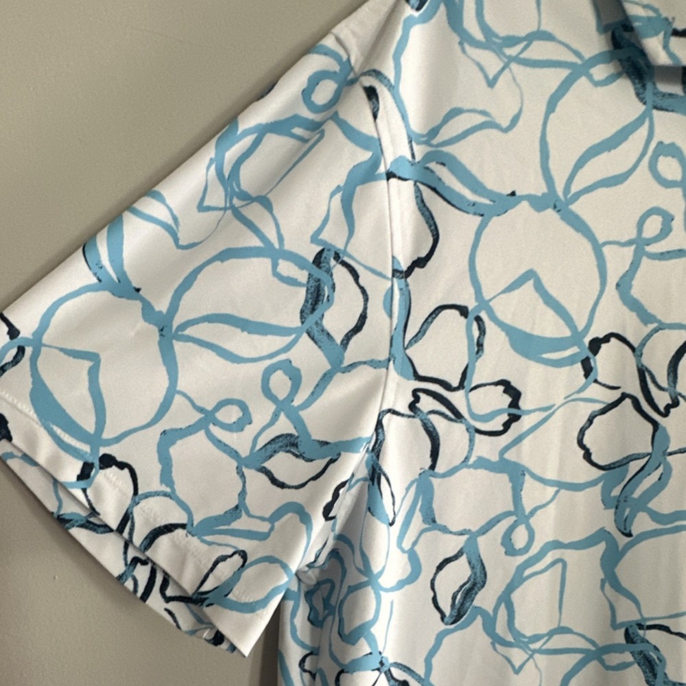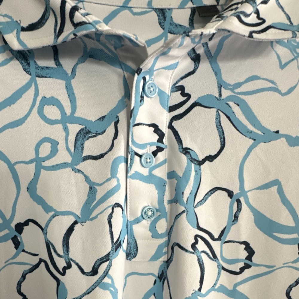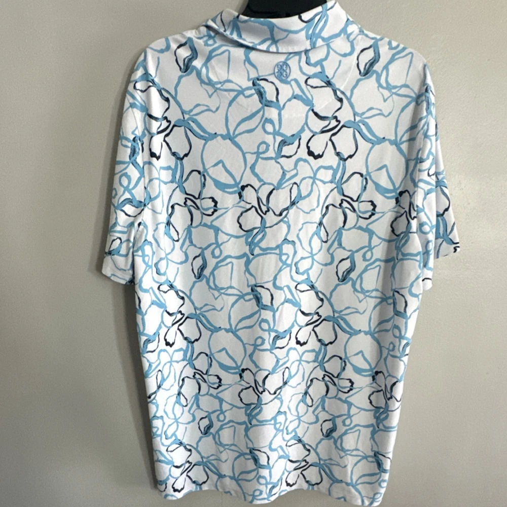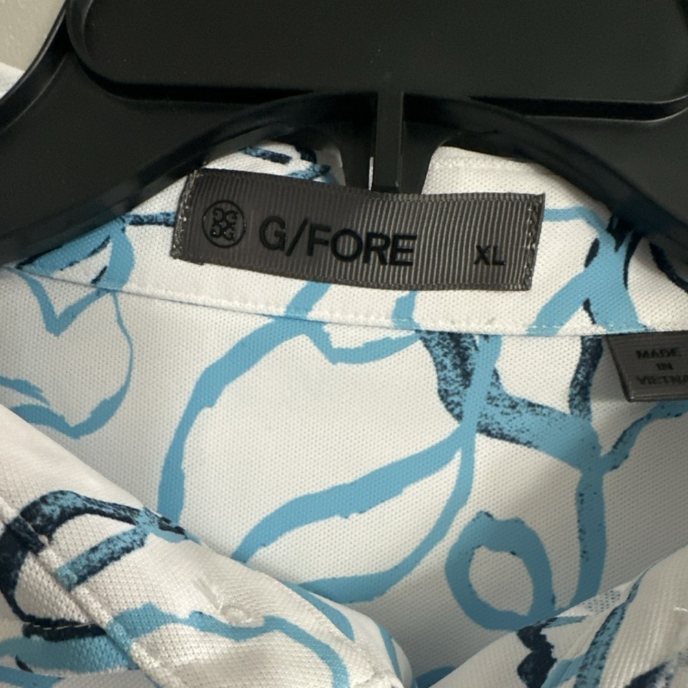 G/FORE XL Golf Polo Shirt Men's White Blue Black Floral Short Sleeve Logo