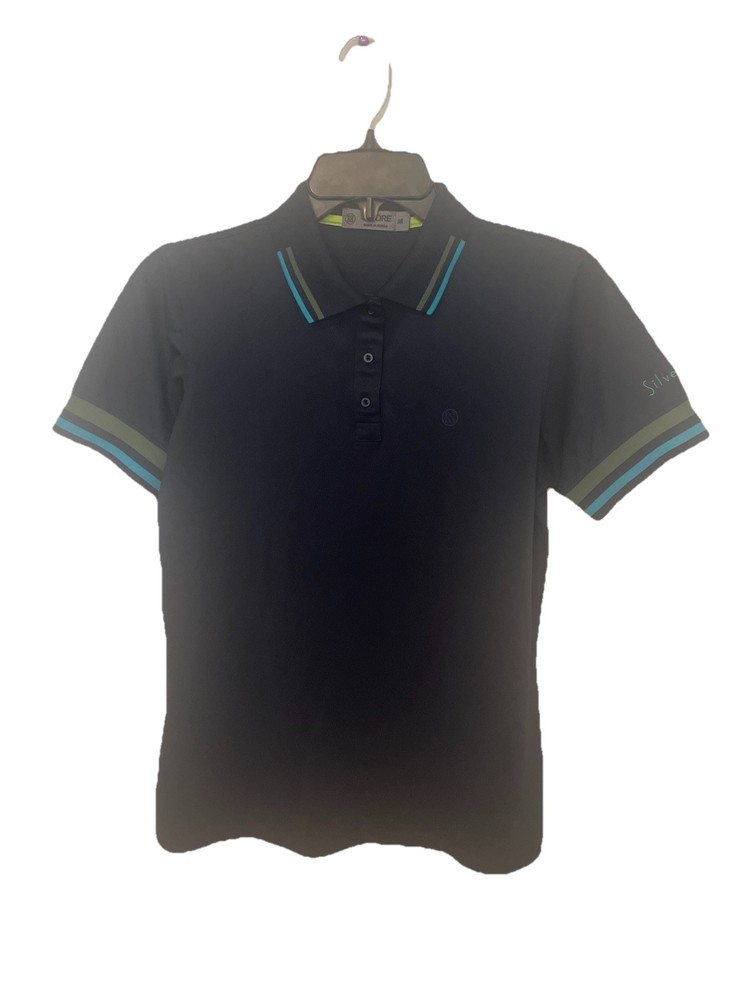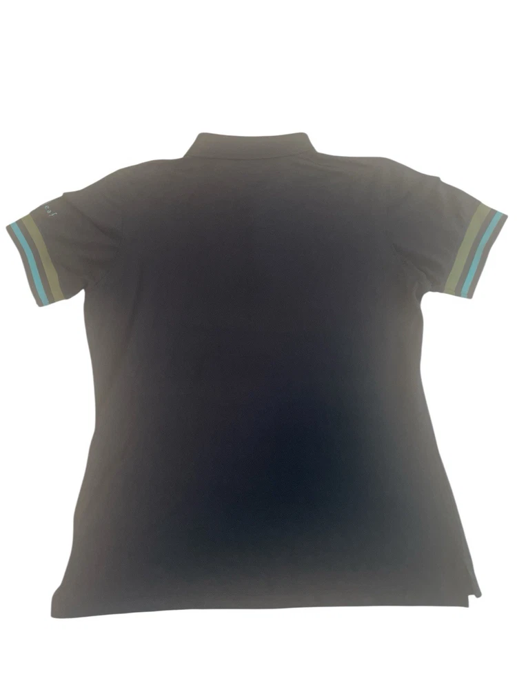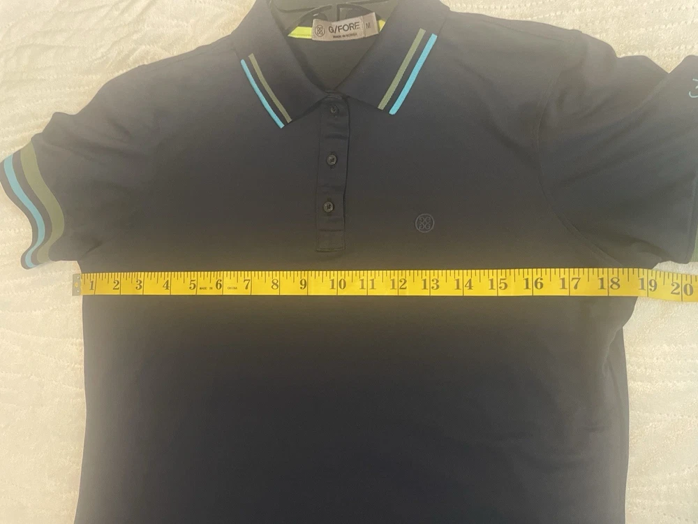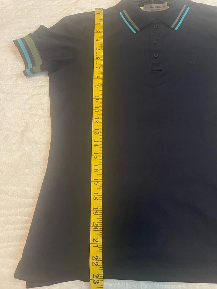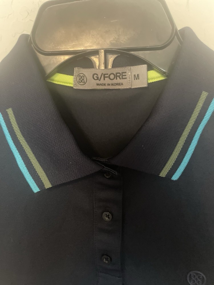 The G/Fore Polo Shirt for women in size medium is a stylish and comfortable activewear top perfect for golfing or casual outings. The blue color and collared neckline with button closure add a touch of sophistication to the polo, while the dark fabric wash gives it a modern look. Made by the brand G/Fore, this regular fit polo is machine washable and suitable for the summer, fall, and spring seasons. Whether hitting the golf course or running errands, this short sleeve polo shirt is a versatile addition to any wardrobe.