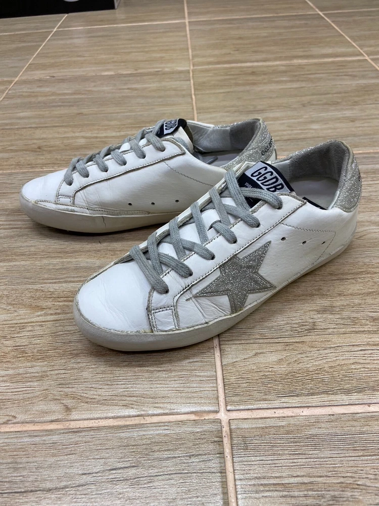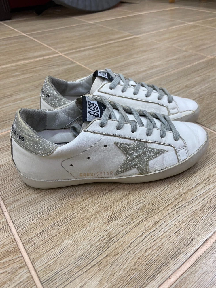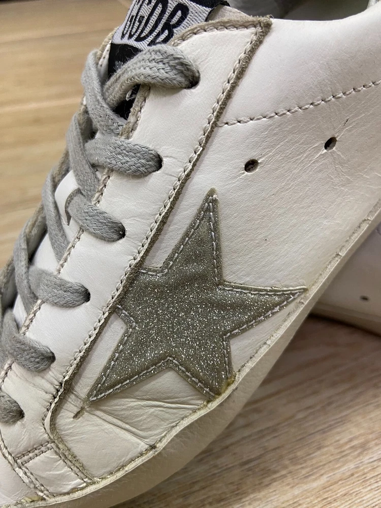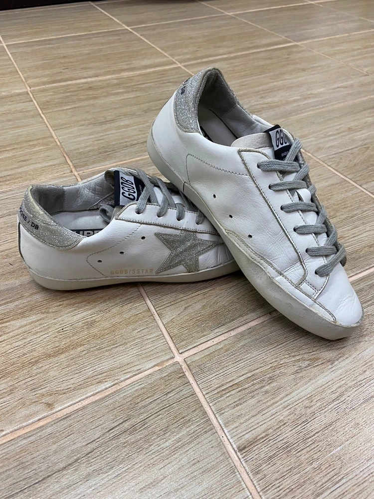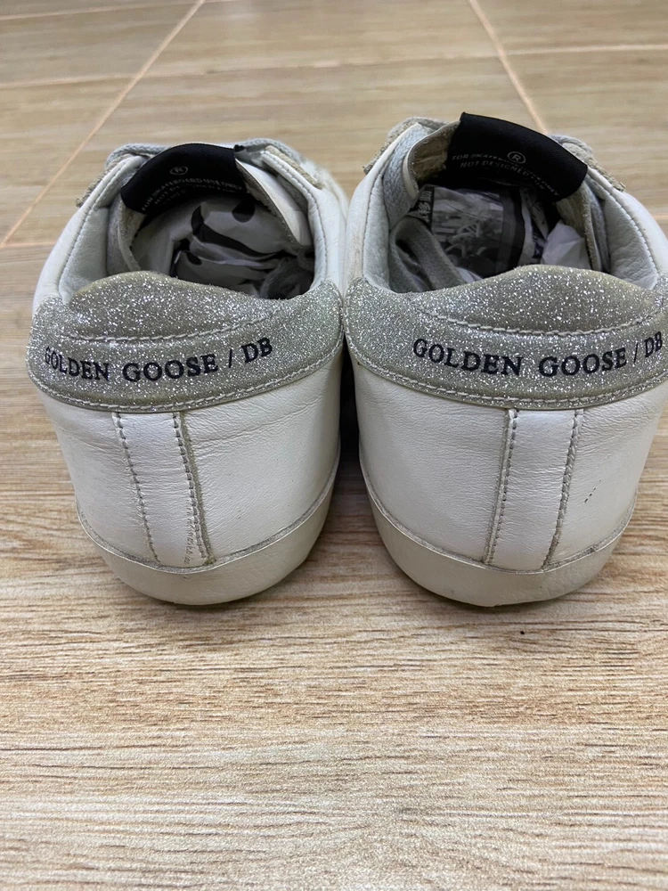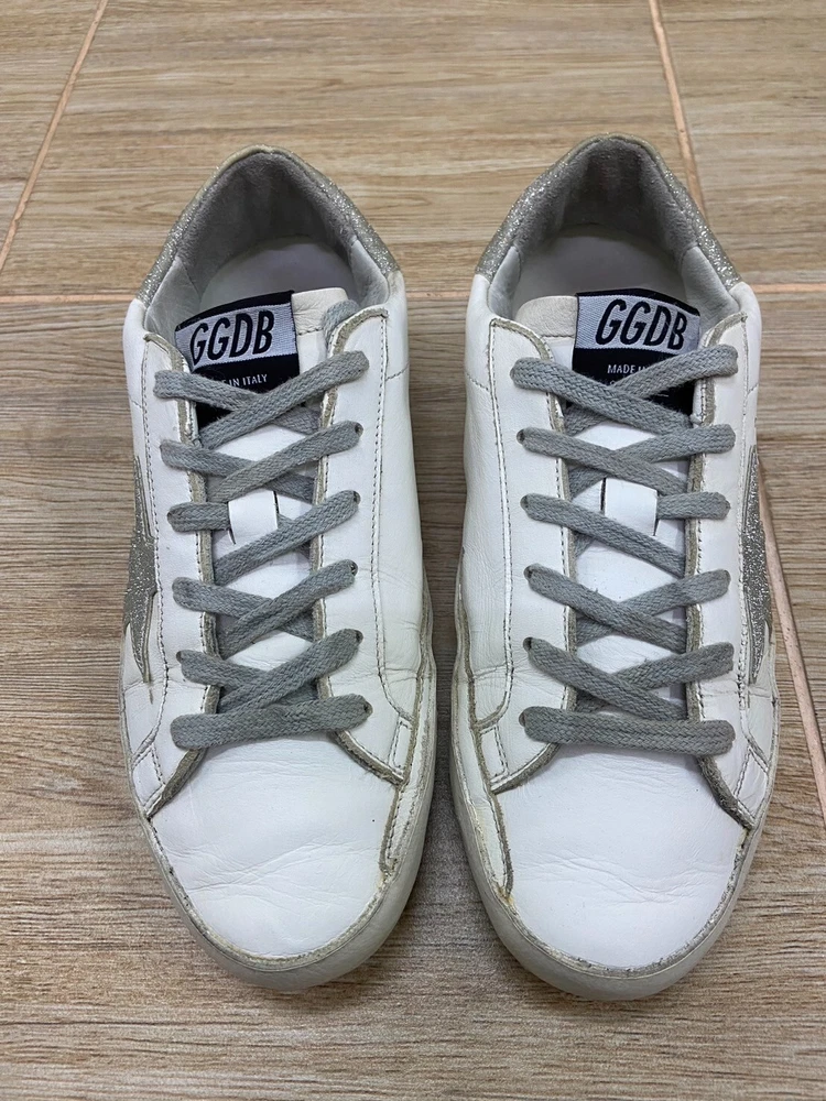 Elevate your sneaker game with these stylish Golden Goose GGDB sneakers. Crafted from high-quality leather, these white and gray sneakers feature a star-themed design that is perfect for any fashion-forward woman. The athletic style and comfortable fit make them ideal for daily wear, while the unique design allows you to stand out from the crowd. With a US shoe size of 5 and an EU shoe size of 35, these sneakers are perfect for women who value both style and comfort. The black color and sleek design of the Golden Goose brand make them a versatile addition to any wardrobe. Whether you're hitting the gym or running errands, these sneakers will keep you looking and feeling your best.