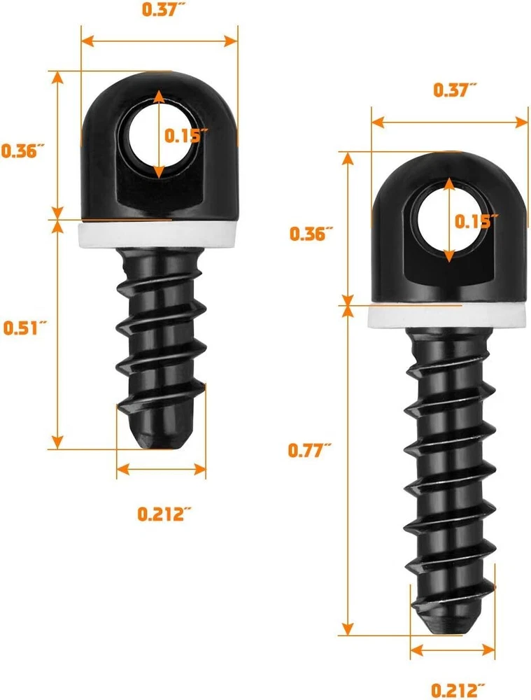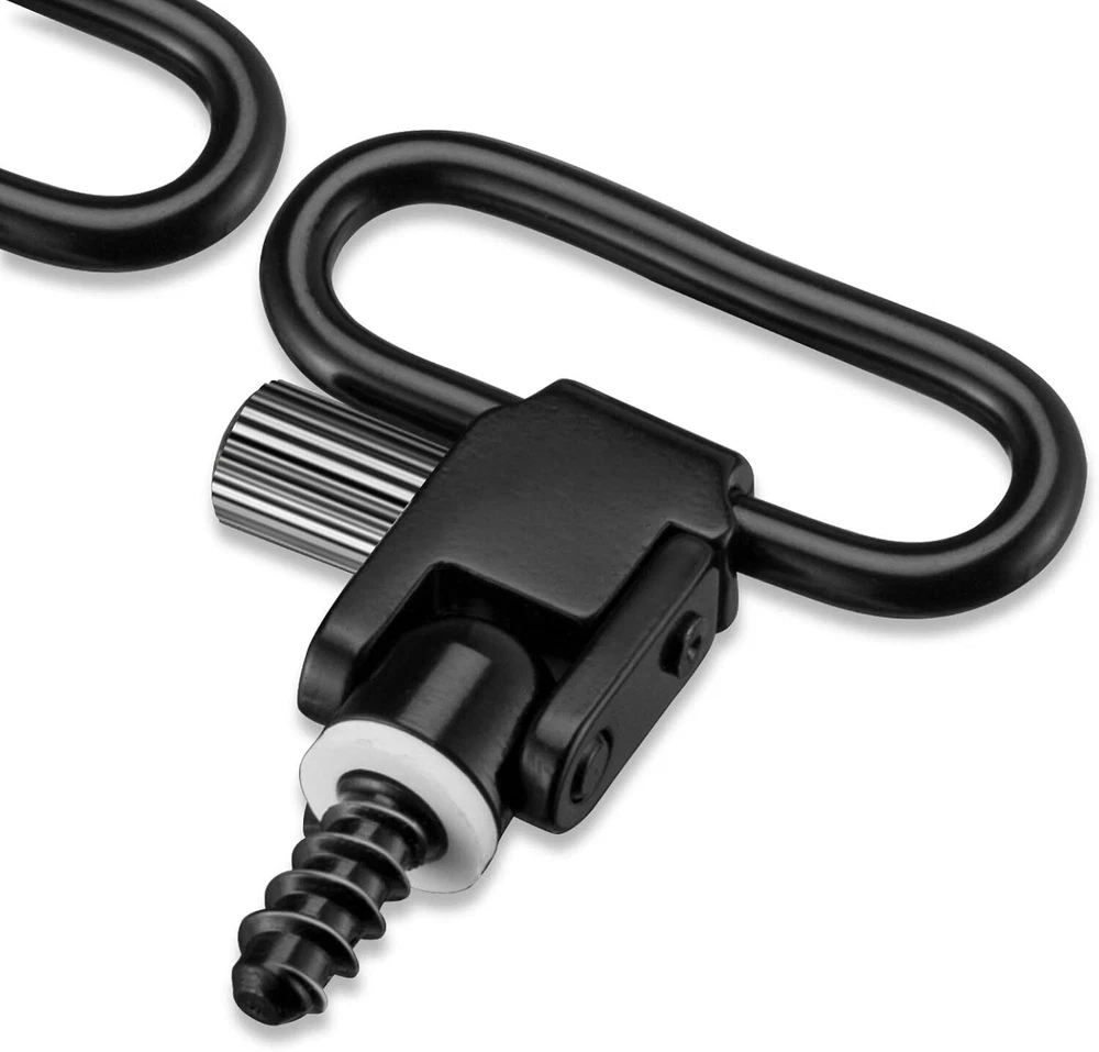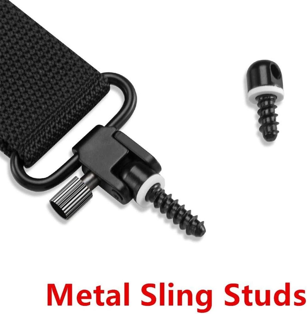 Black, 6-PCS sling swivel stud with 6pcs white spacers Made of metal, super durable. This sling screw for wooden stock or butt plate rifle and crossbow. Includes 3 pieces 1/2 inch sling swivel screws, 3 pieces 3/4 inch sling swivel screws. Recommended to use 1/8-inch drill bit to punch mounting screws. 6 PCS Metal sling swivel stud