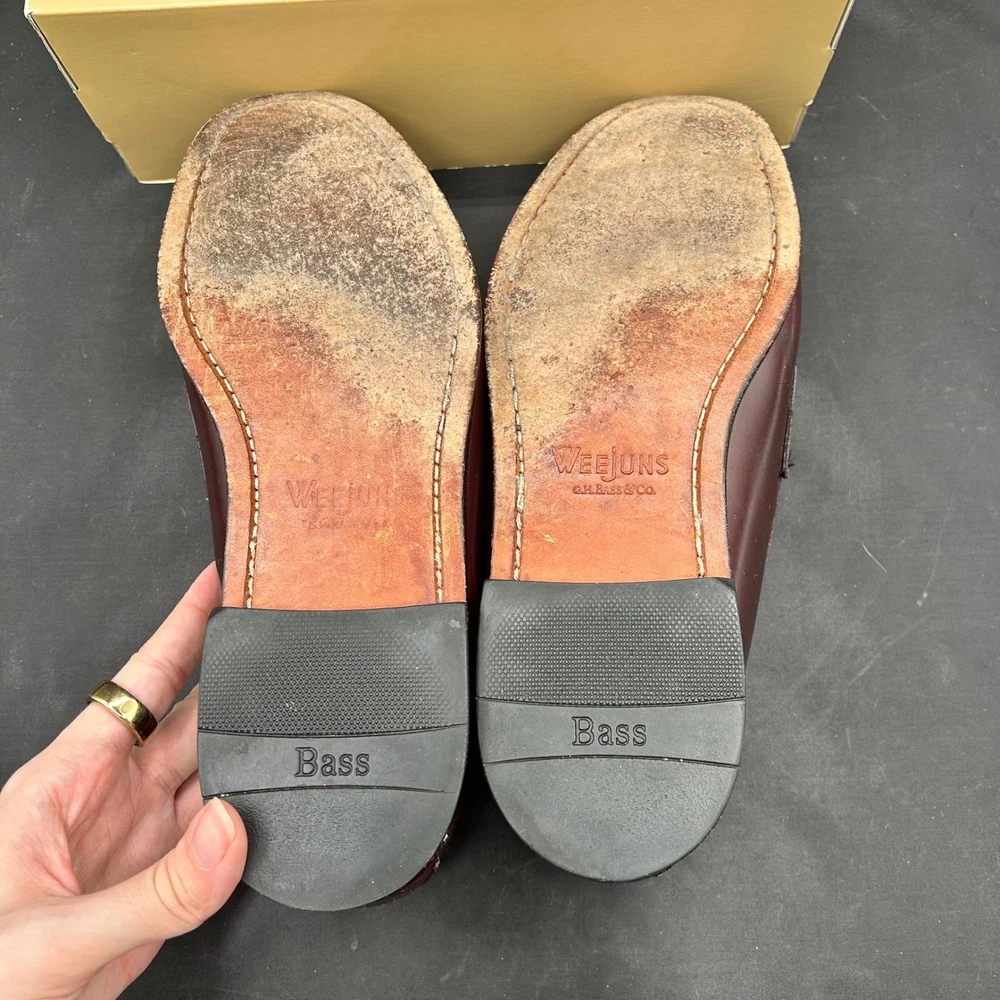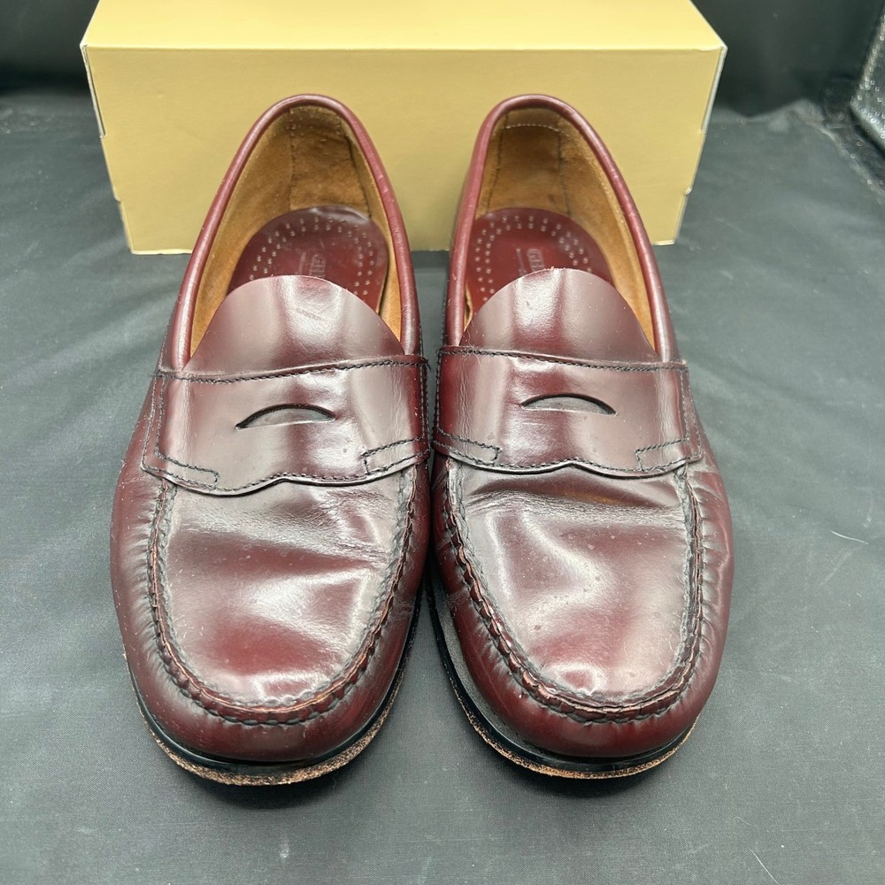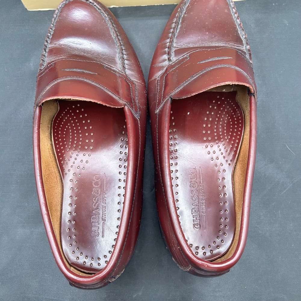 US Shoe Size: 9 Outsole Material: Leather Color: Red Features: Penny Keeper, Leather Lining, Comfort Insole, Slip On Brand: G.H. Bass & Co. Style: Loafer Vintage: No Model: G.H. Bass Logan Pattern: Solid Insole Material: Leather Upper Material: Leather Customized: No Department: Men Type: Dress