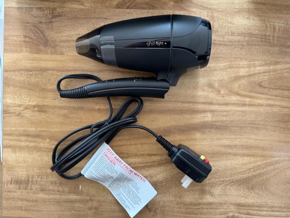 ghd Flight+ Travel Hair Dryer ― Dual Voltage 1300w Professional Portable Hair Volumizer, Suitcase Friendly, Lightweight, Powerful, and Compact Blow Dryer with Luxurious Travel Case ― Black. Never used. You’ll receive the item exactly as shown in the photos.
